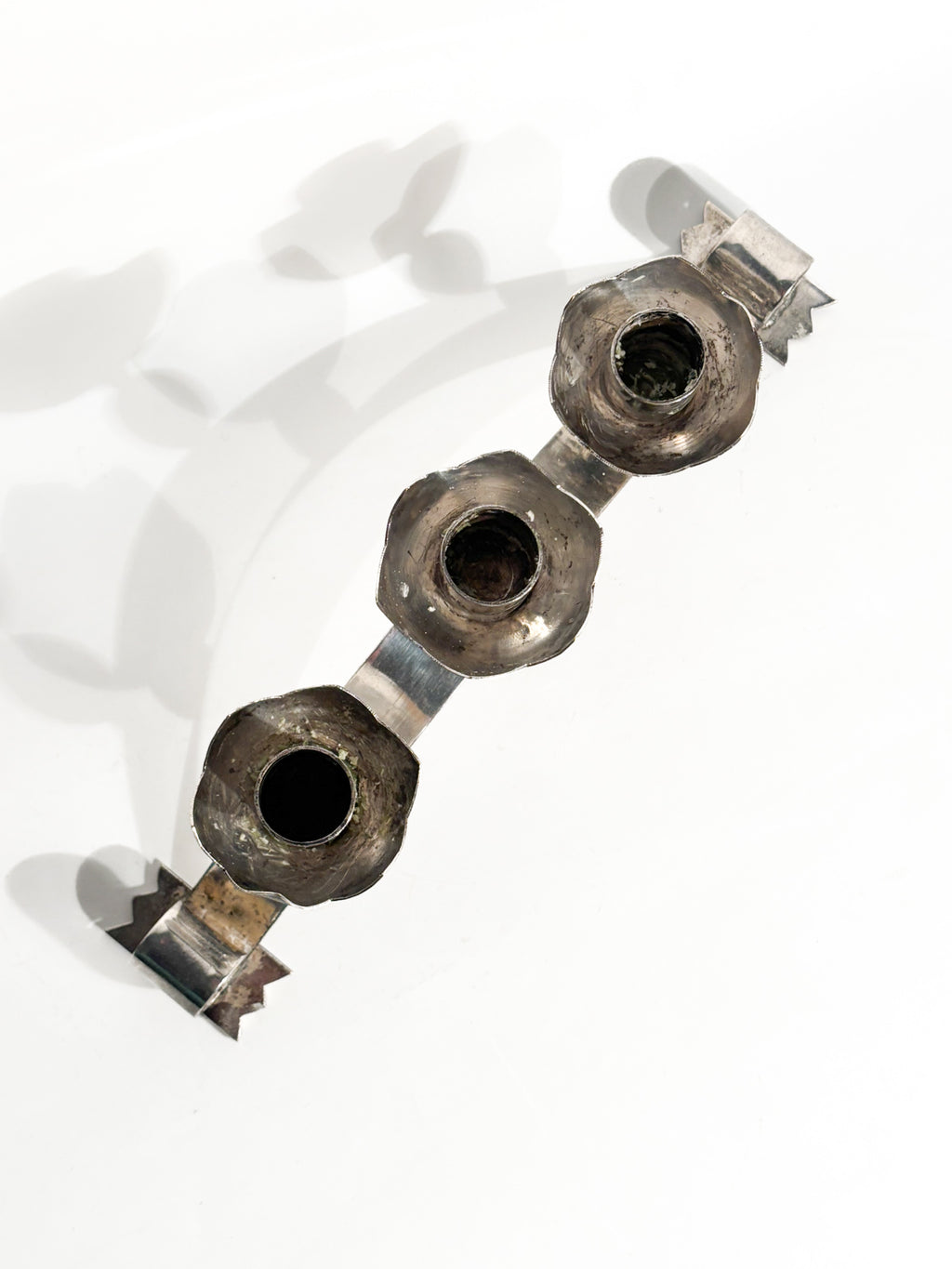 Portacandele Triplo in Metallo Argentato Manifattura Italiana Anni 50