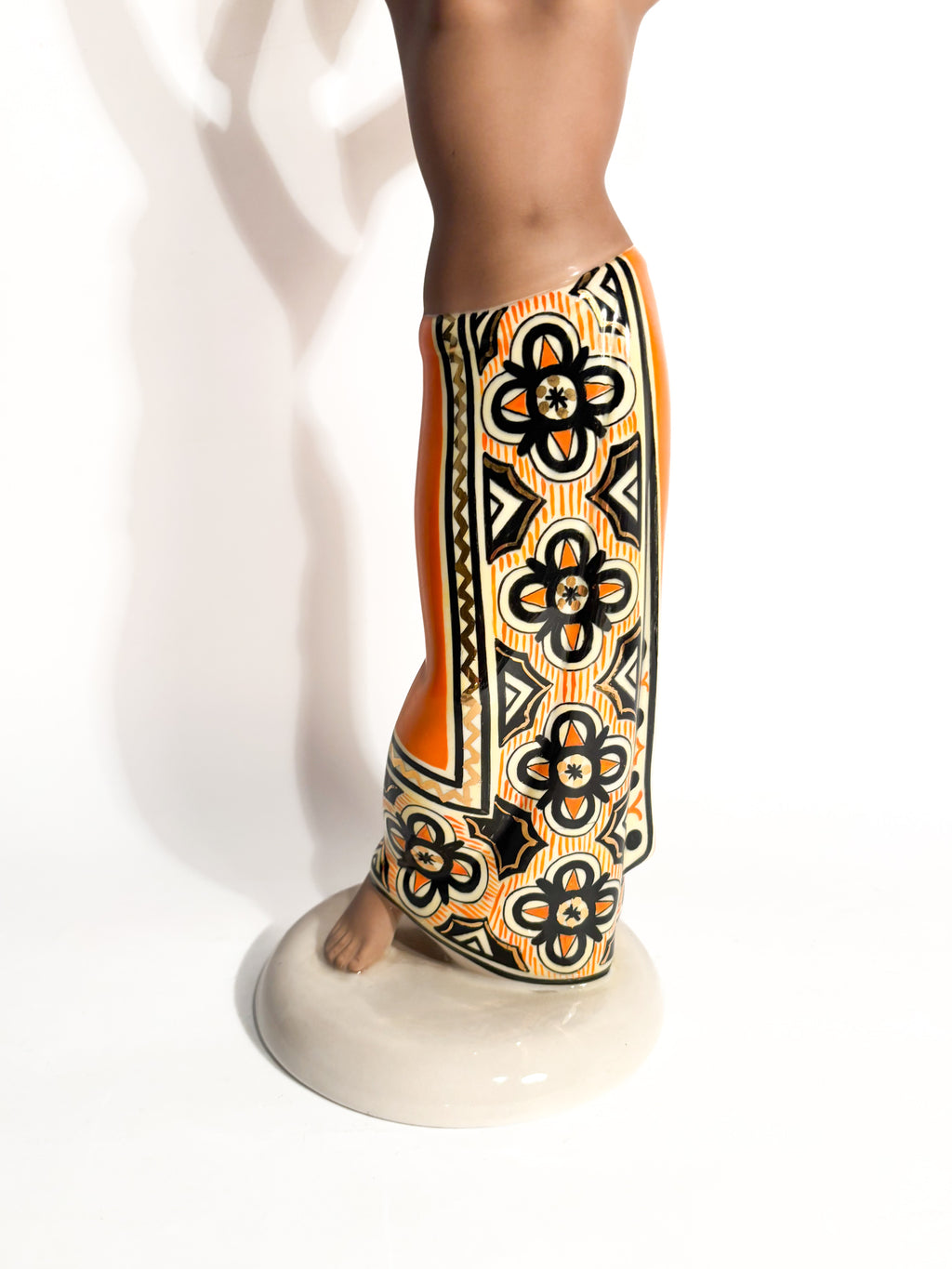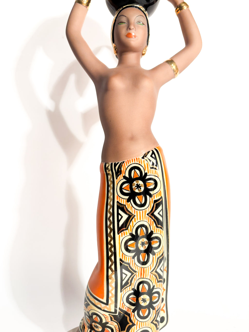 Scultura Art Dèco in ceramica e decorazioni policrome, "Dihula", realizzata da C.I.A. Manna negli anni '40