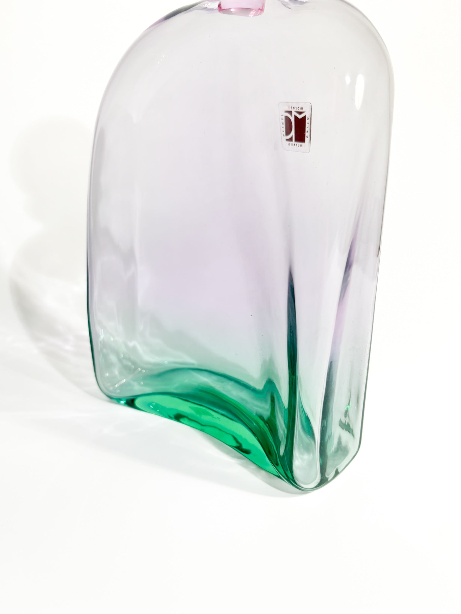 Pink and green Murano glass bottle, made by Carlo Moretti in the 1970s