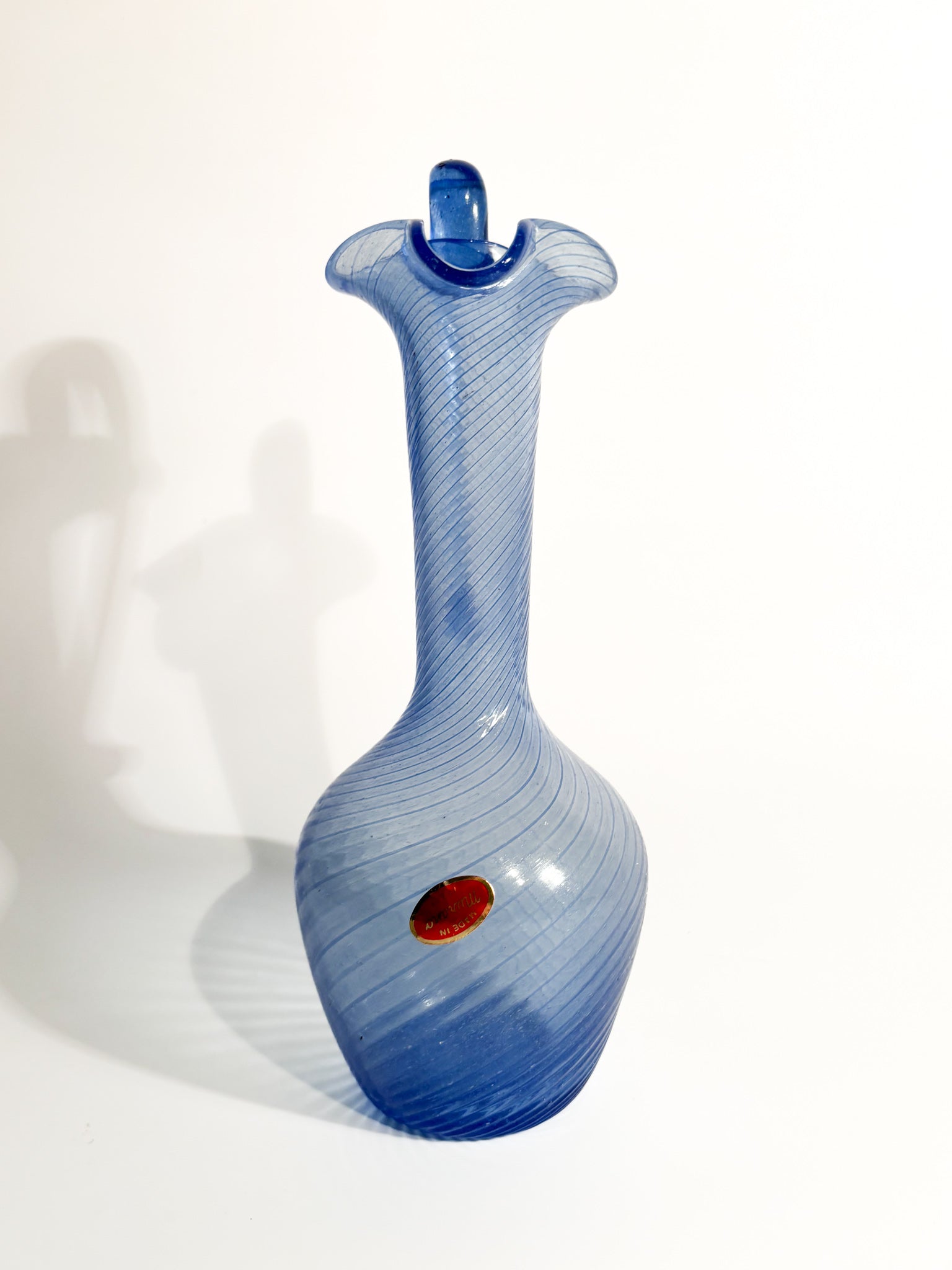 Blue Murano glass carafe, hand blown and made in the 1950s