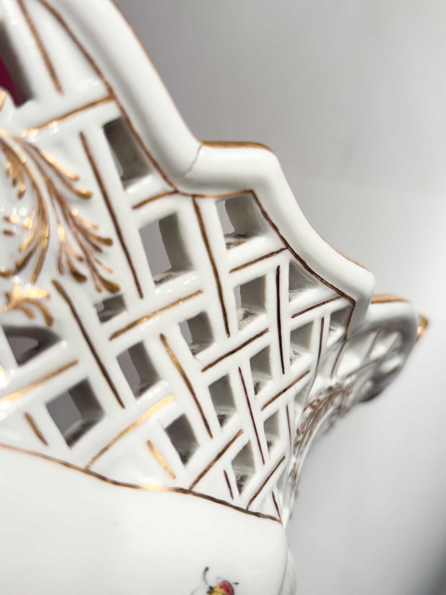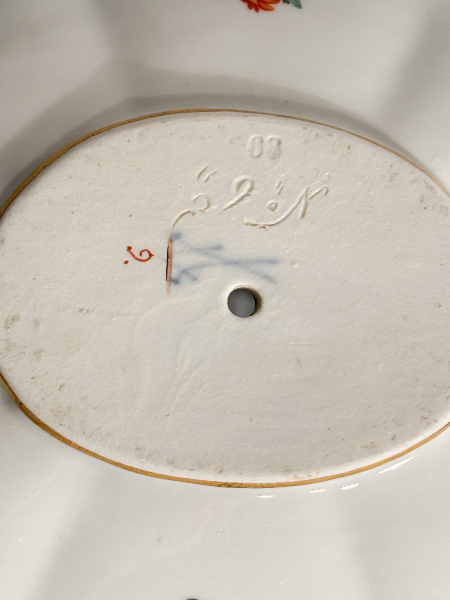 Meissen porcelain centerpiece hand-painted, period 1860 - 1924. There are two slight internal cracks as shown in the photos.