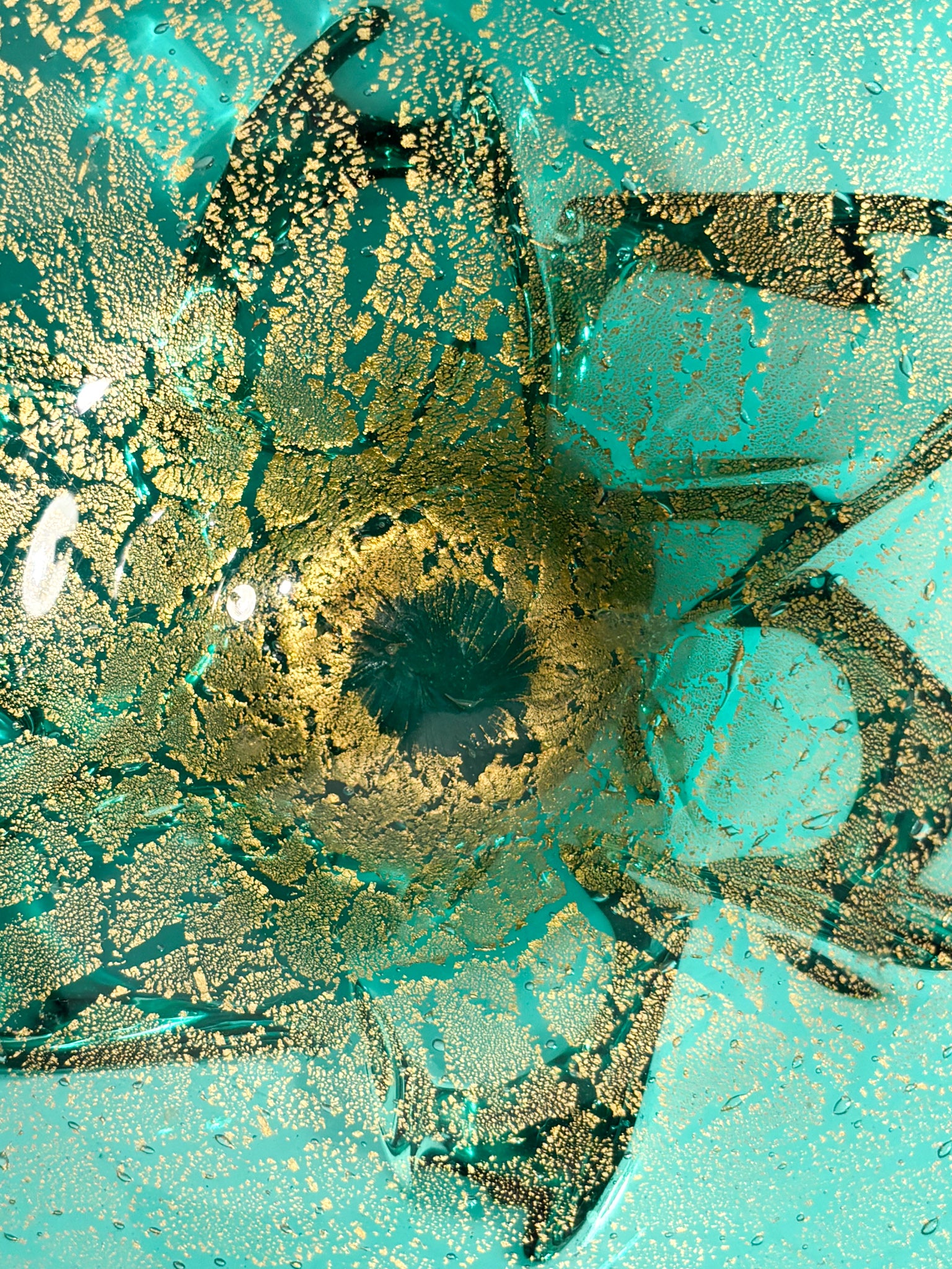 Decorative bowl in green Murano glass and gold leaf, made in the '70s