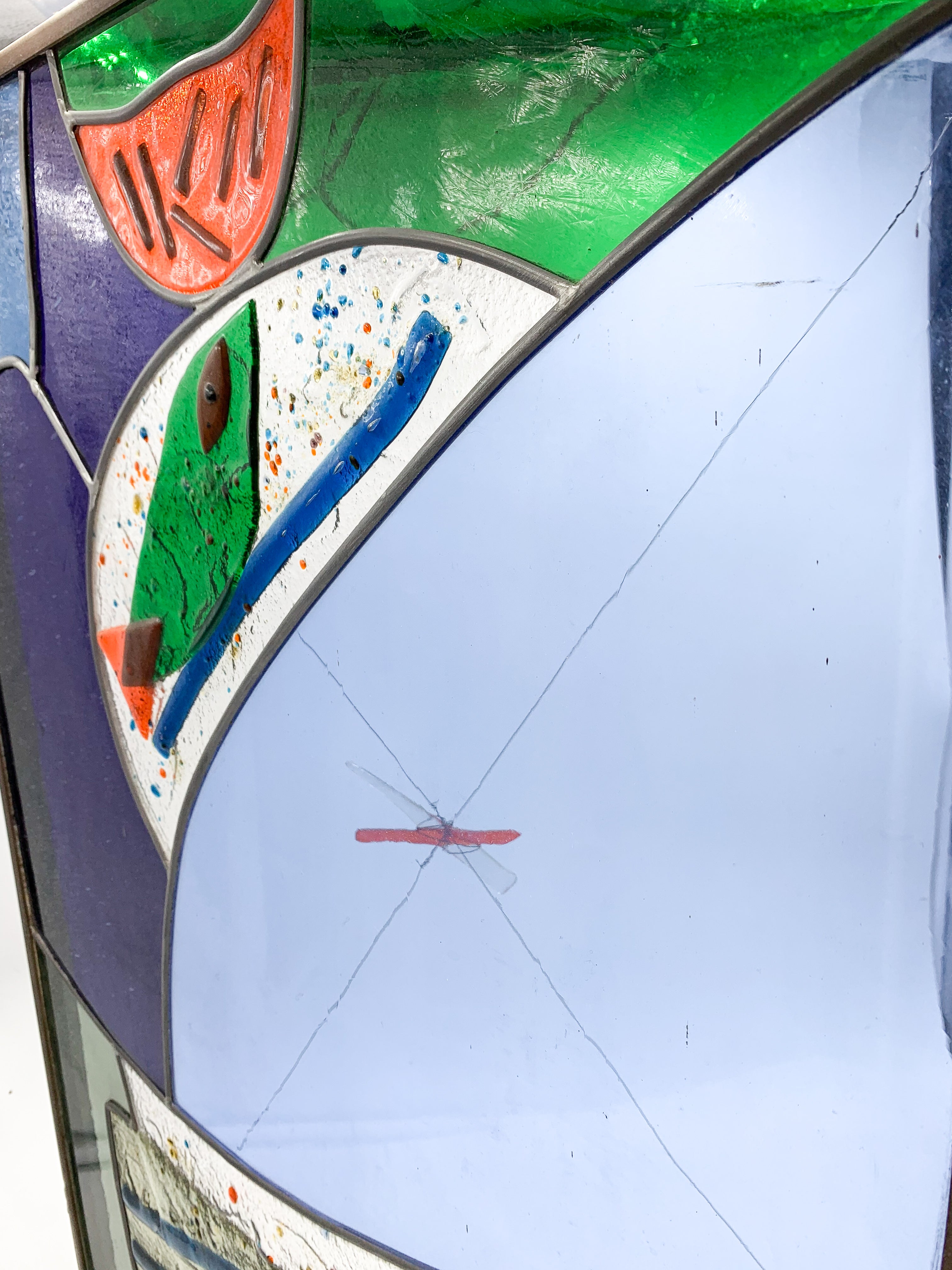 Colored lead glass window, created with Albisola's design in the 1970s