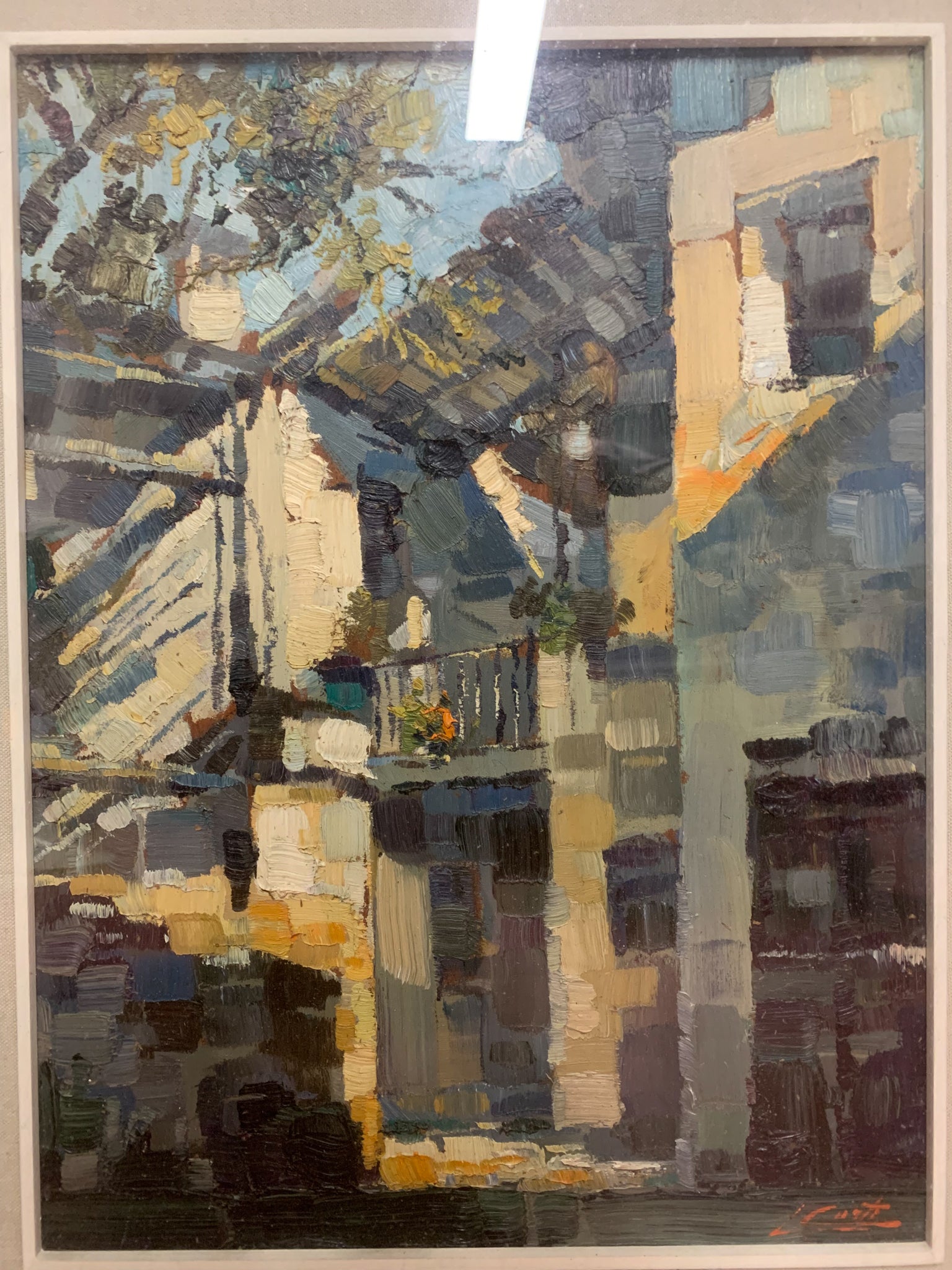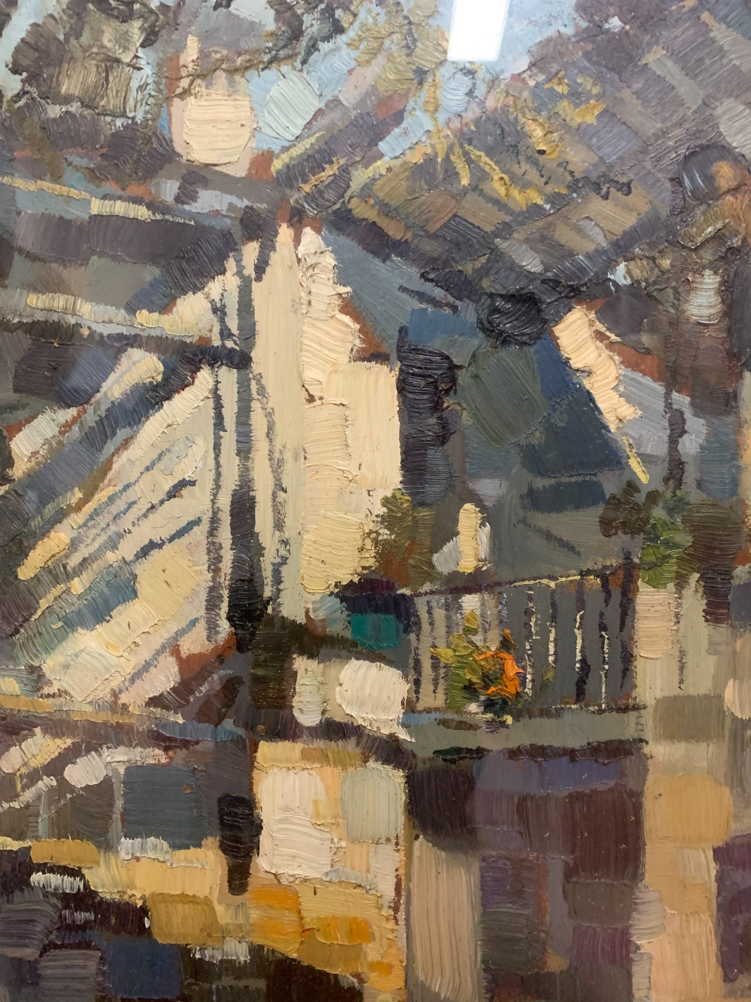 Pair of oil paintings on canvas with spatula technique and depicting two glimpses of Canobbio, made by Antonio Curti in the 1950s