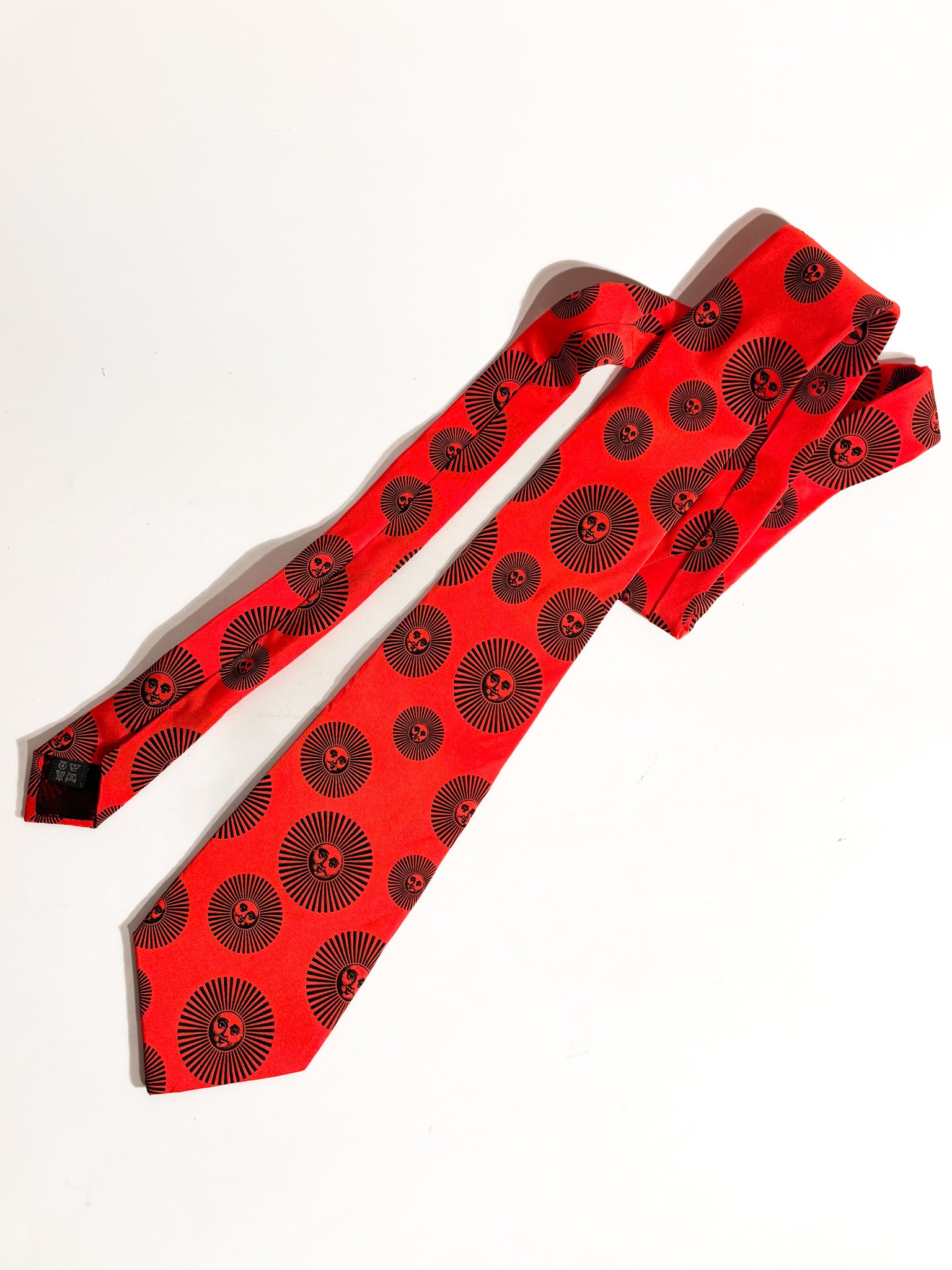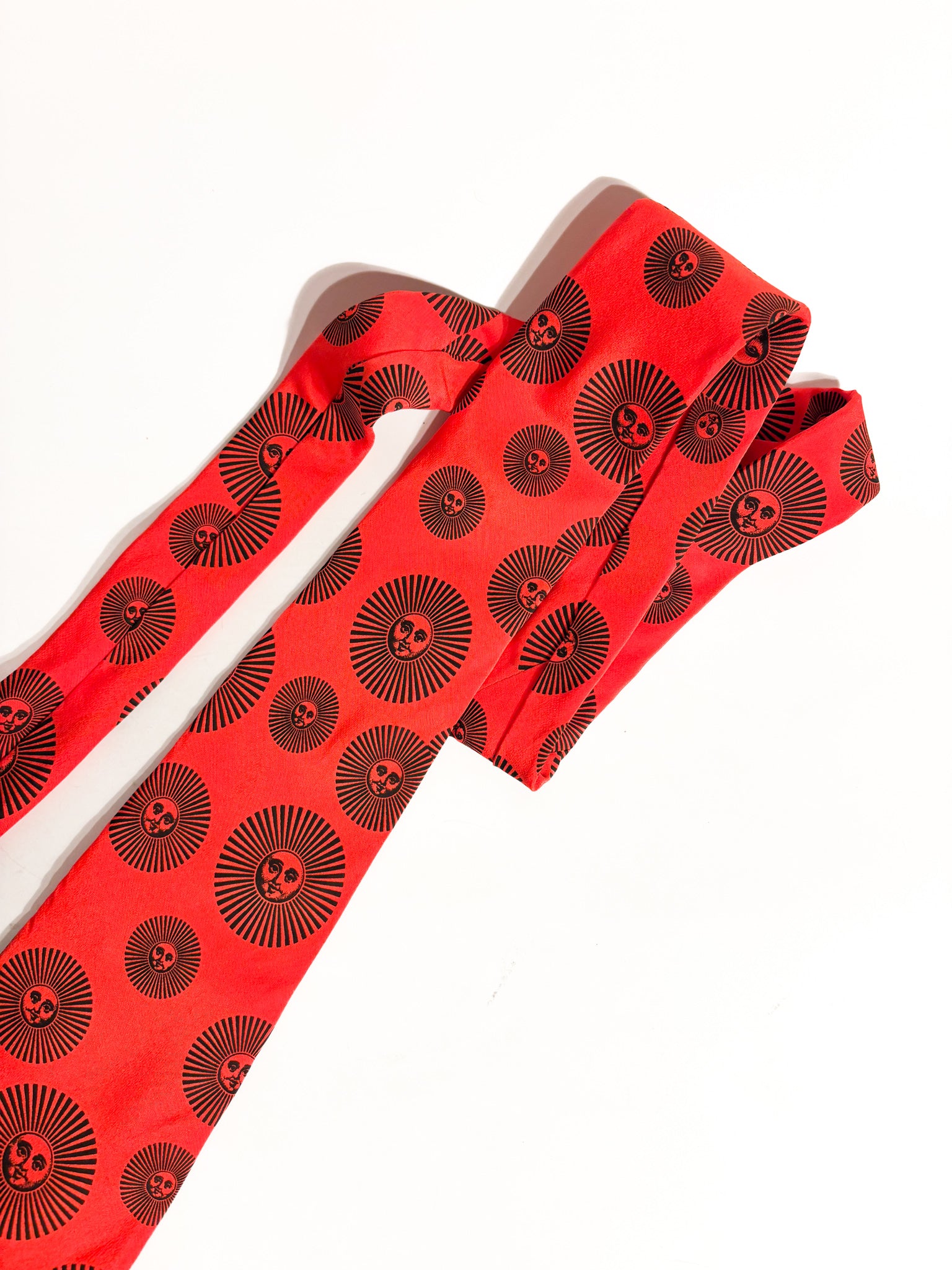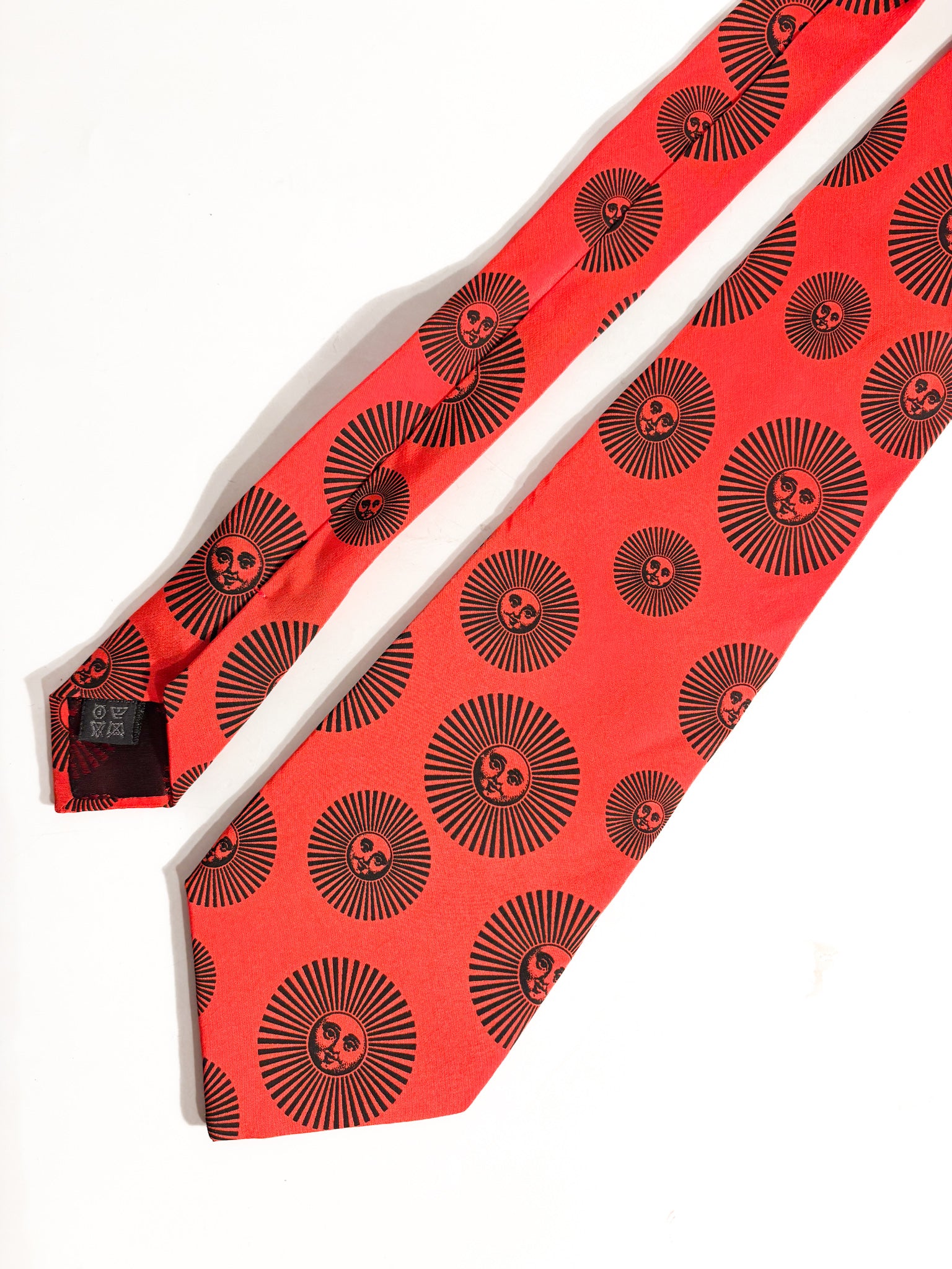 Cravatta in seta rossa "Sole" di Piero Fornasetti, realizzata negli anni '60