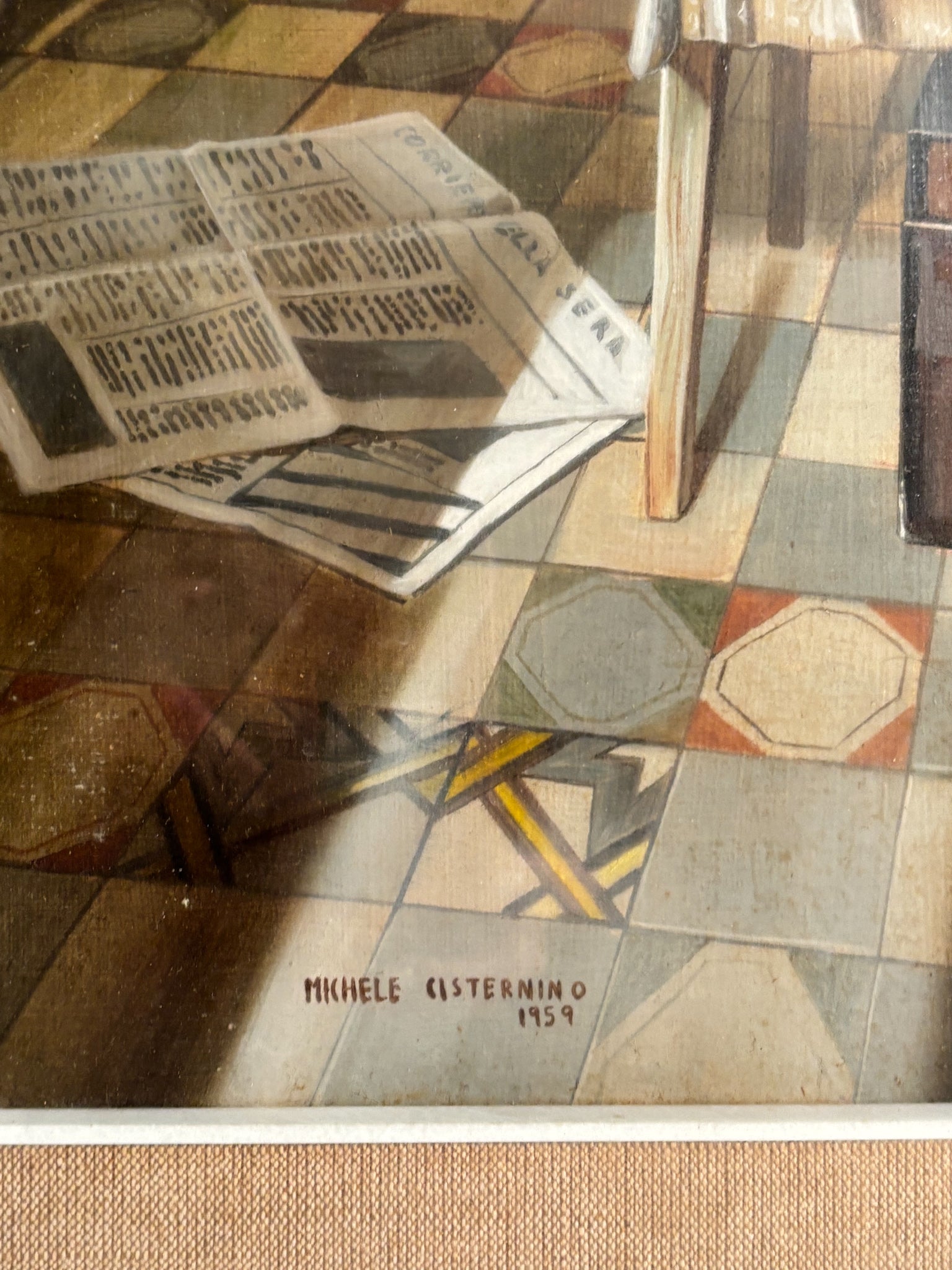 Oil Painting on Canvas of Domestic Scene by Michele Cisternino 1970s