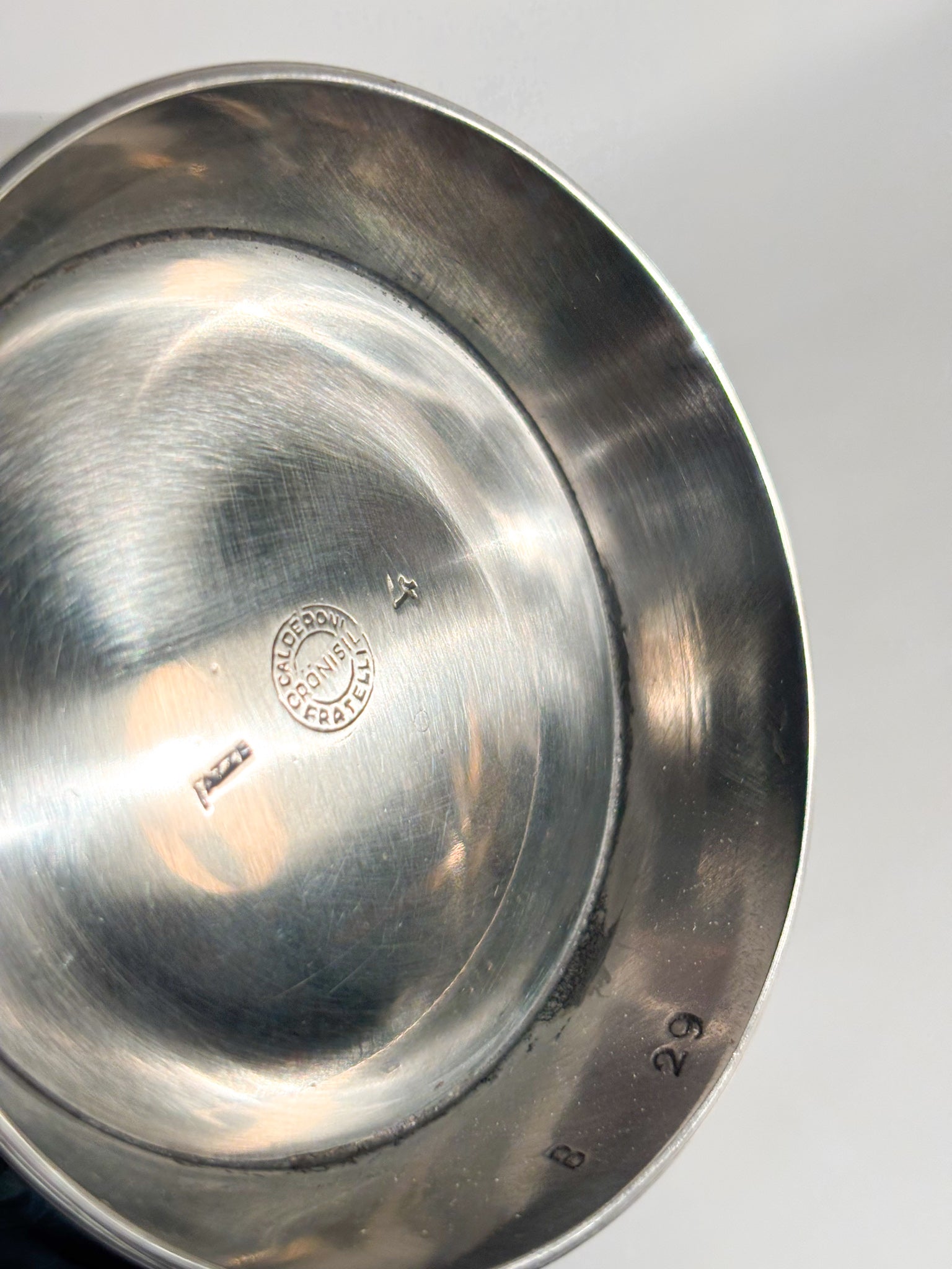 La collaborazione tra Gio Ponti e Fratelli Calderoni rappresenta un capitolo significativo nel design italiano del dopoguerra, in particolare nell'ambito dell'arte della tavola e dell'oggettistica in metallo argentato (alpacca argentata).
