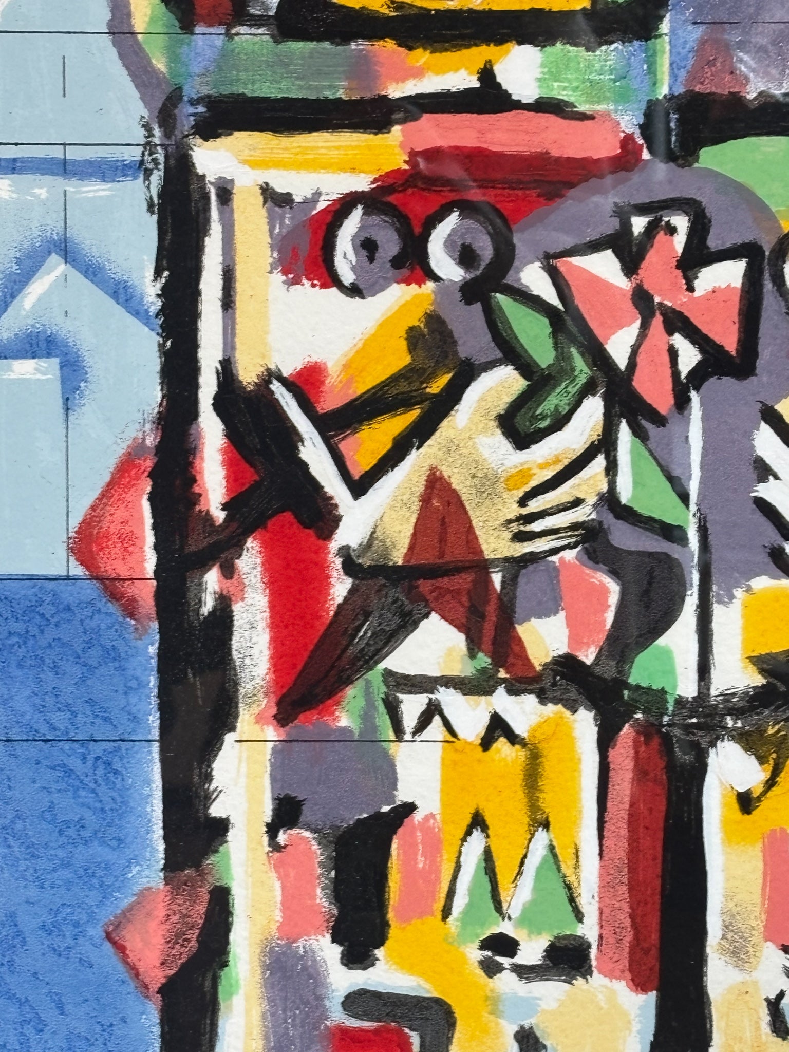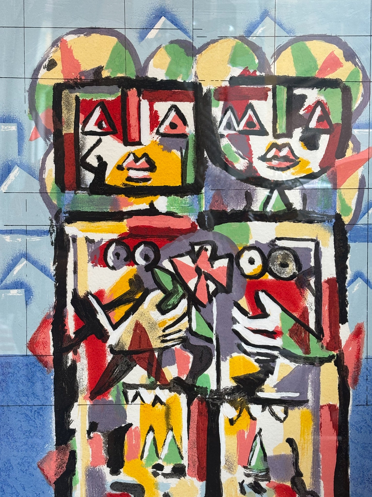 Litografia a colori 'Gli Sposi' o 'La Coppia', realizzata da Ibrahim Kodra negli anni '70