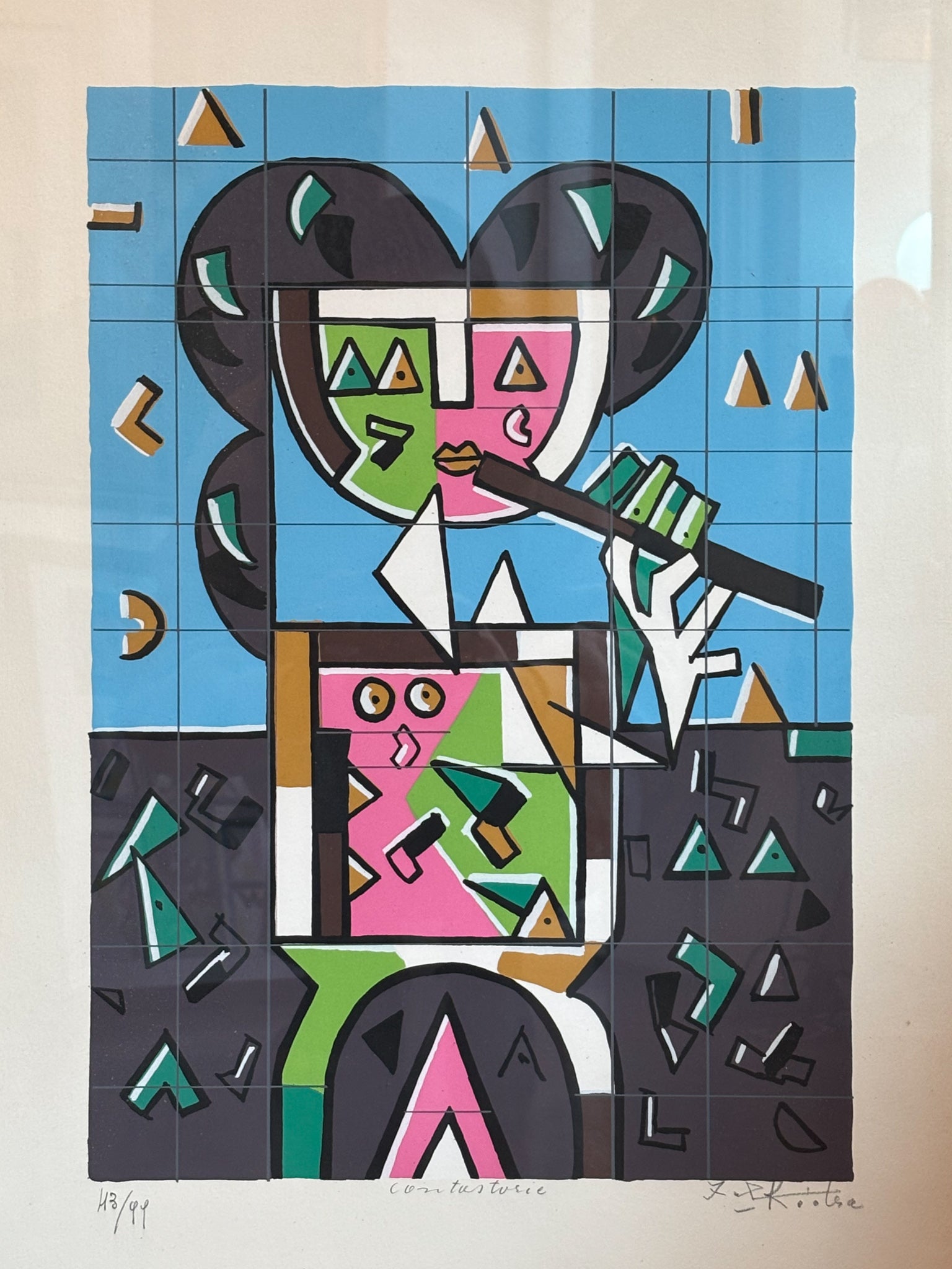 Litografia a colori 'Suonatore', realizzata da Ibrahim Kodra negli anni '70