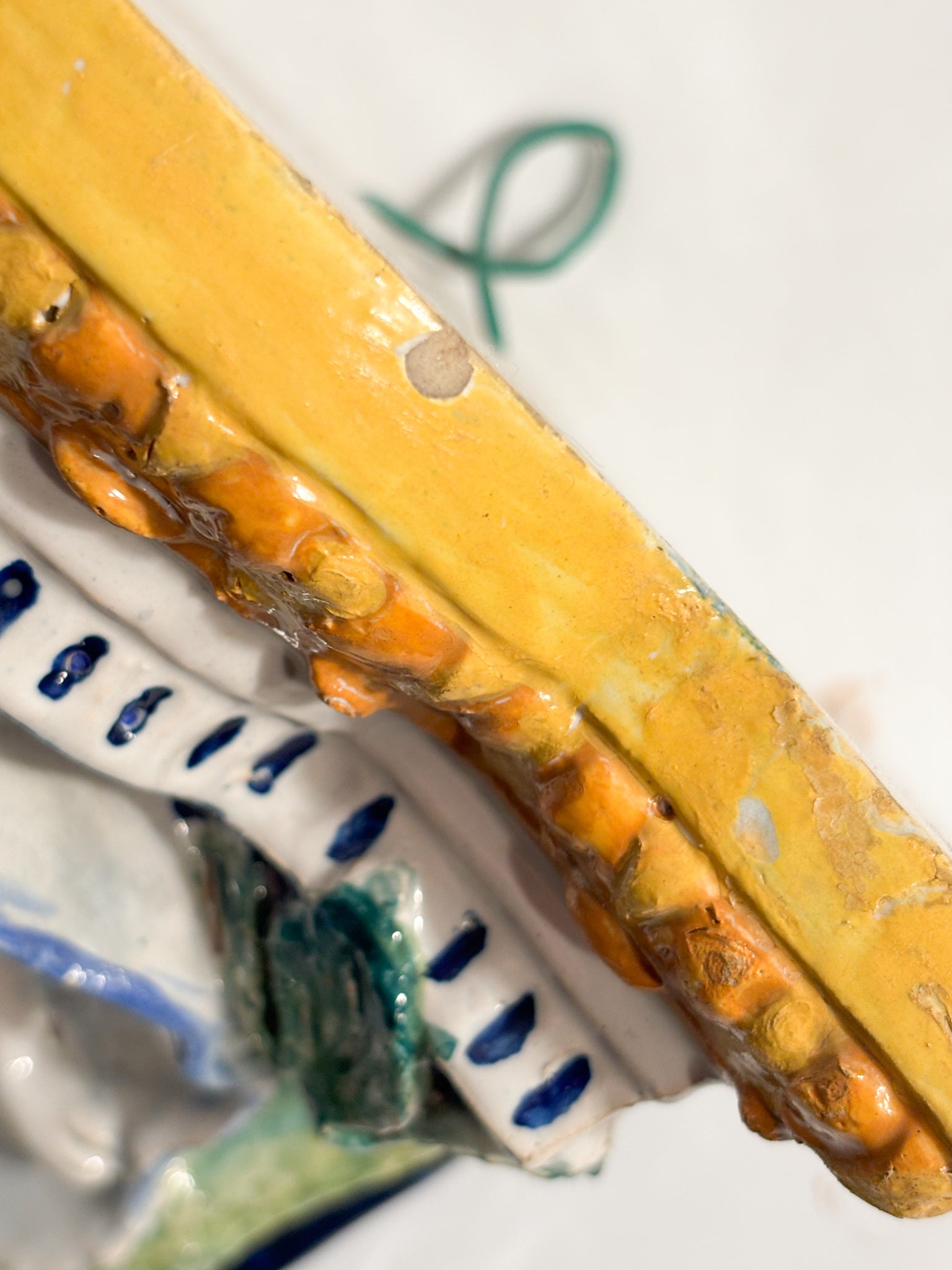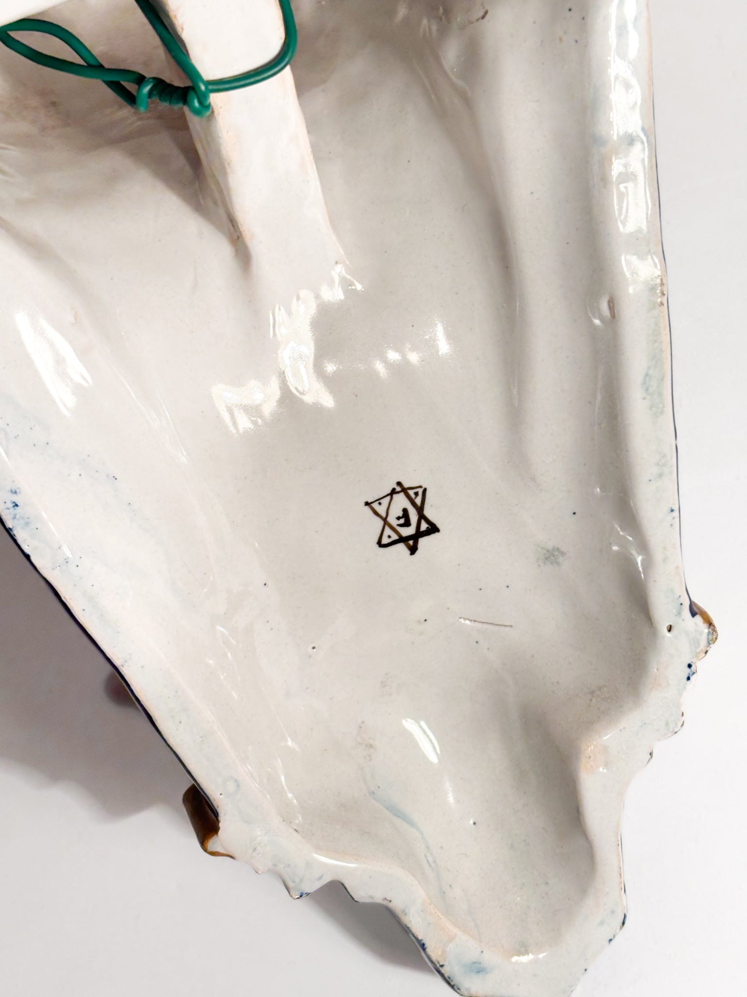 Wall Shelf in Faenza Ceramic with Shell and Checkered Pattern Early Twentieth Century
