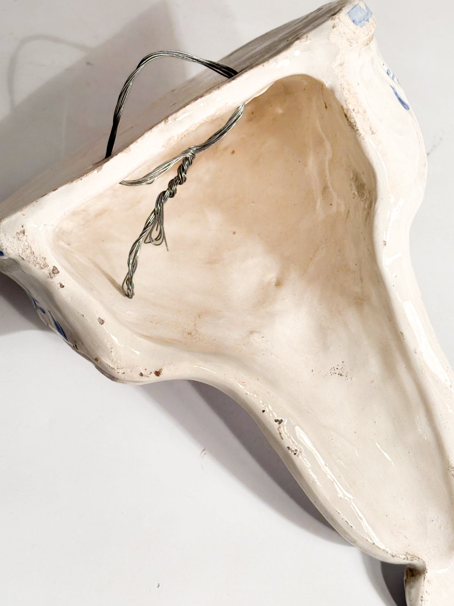 Wall shelf in white and blue ceramic, made in Italy in the early 20th century