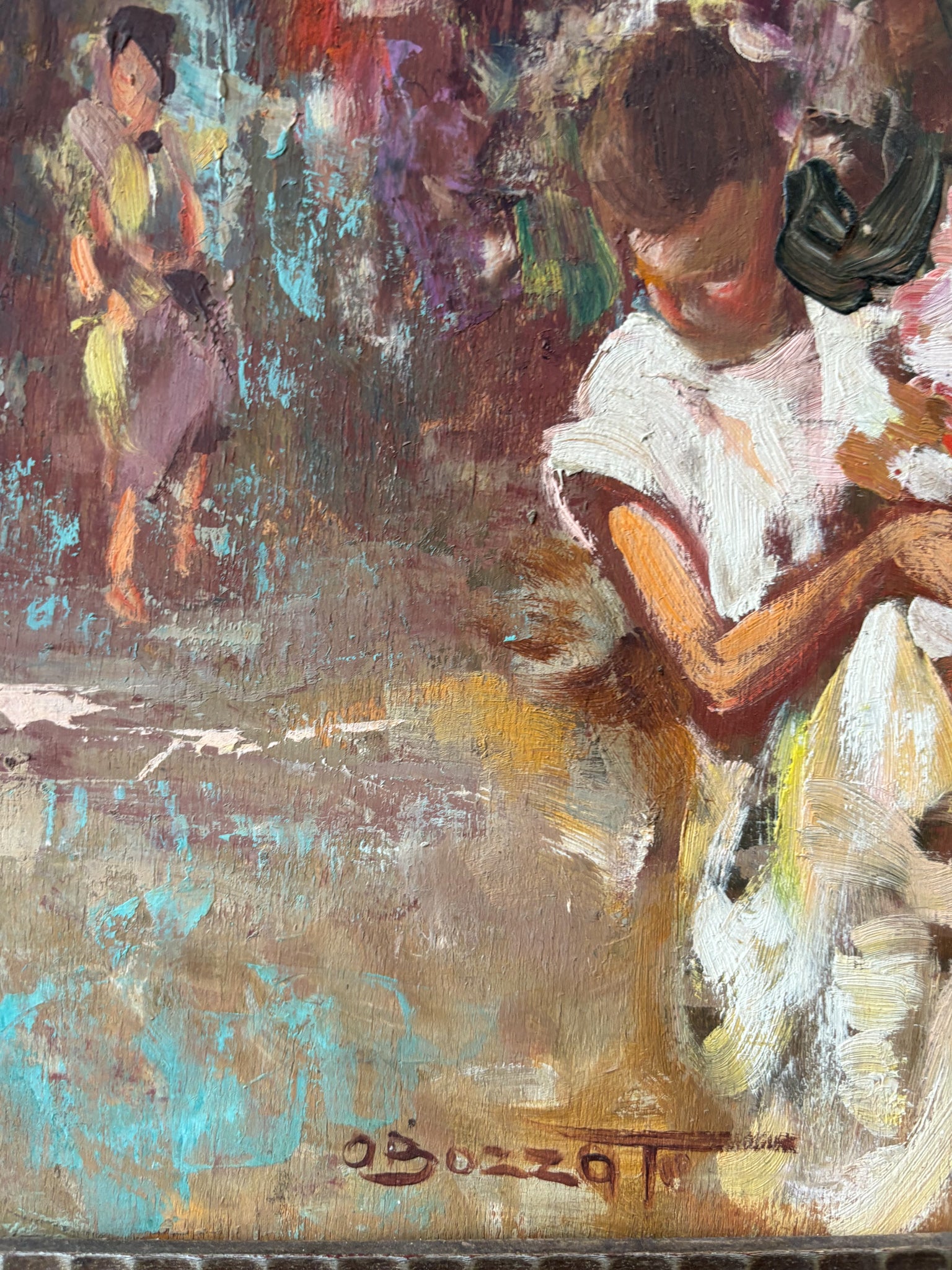Oil on Panel Painting of an Urban Landscape by Attilio Achille Bozzato, 1920s