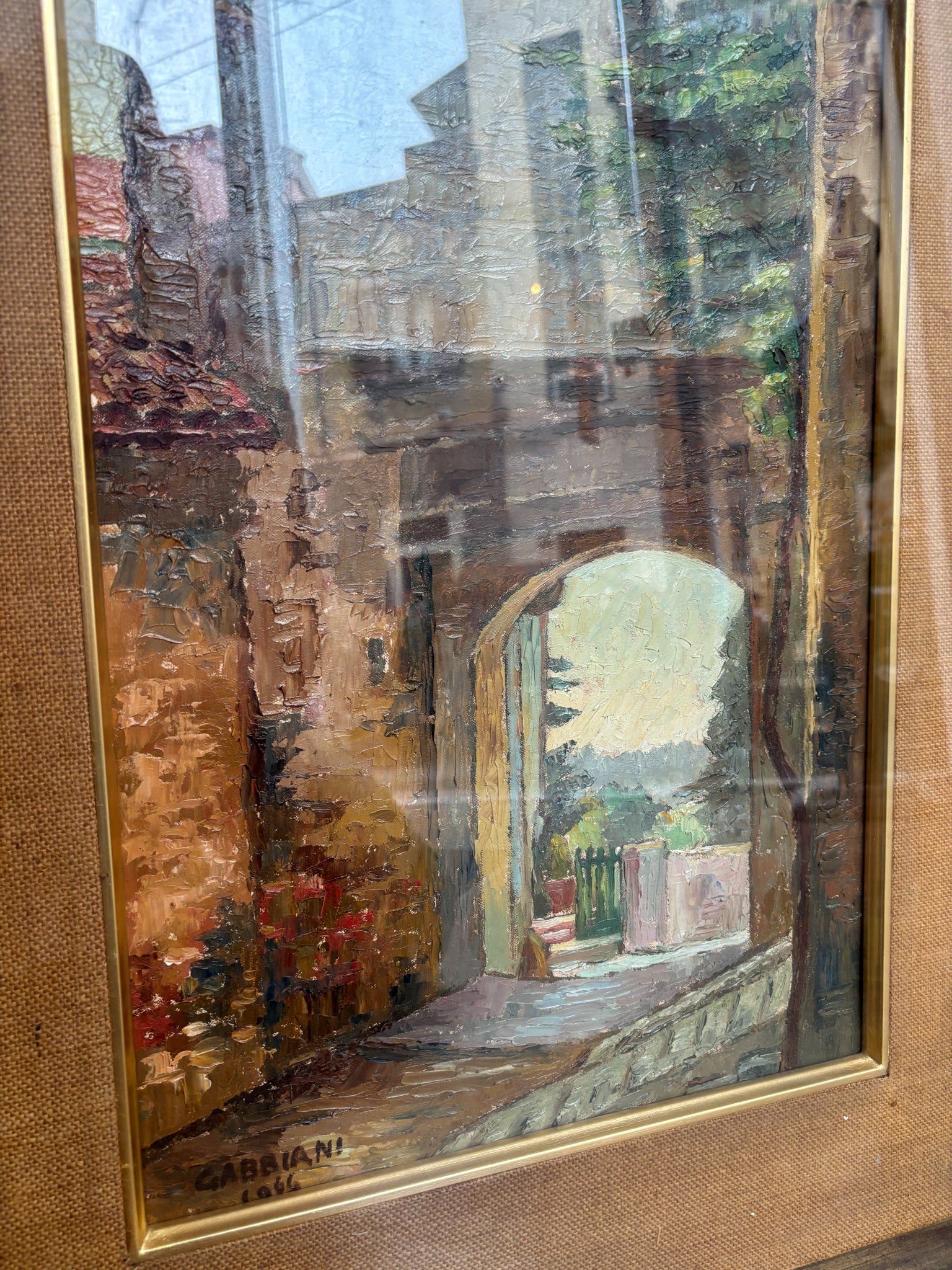 Oil painting depicting an urban landscape, created by Giacomo Gabbiani in the 1950s