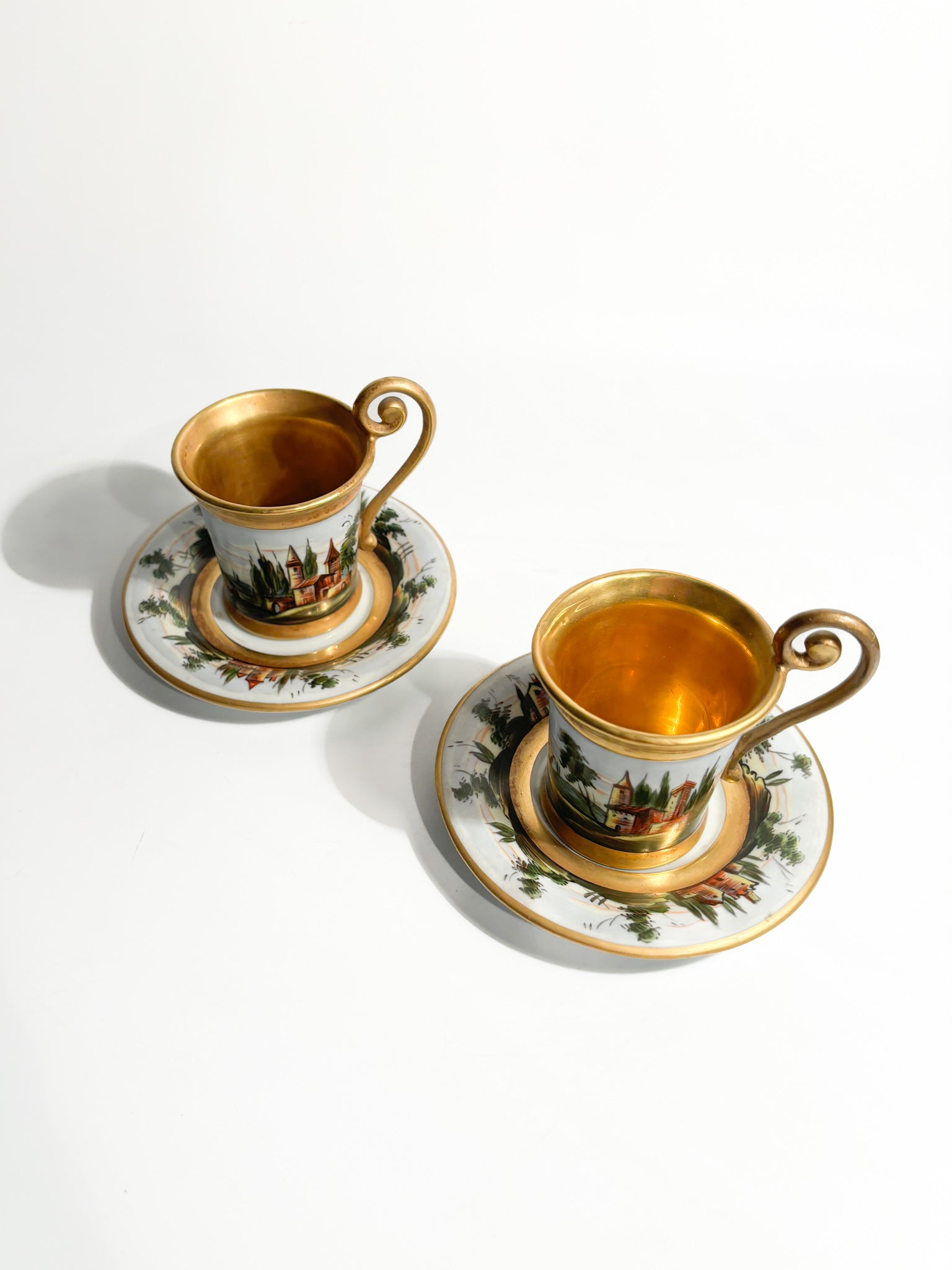 Pair of hand-painted coffee cups in Capodimonte porcelain made in the 1940s