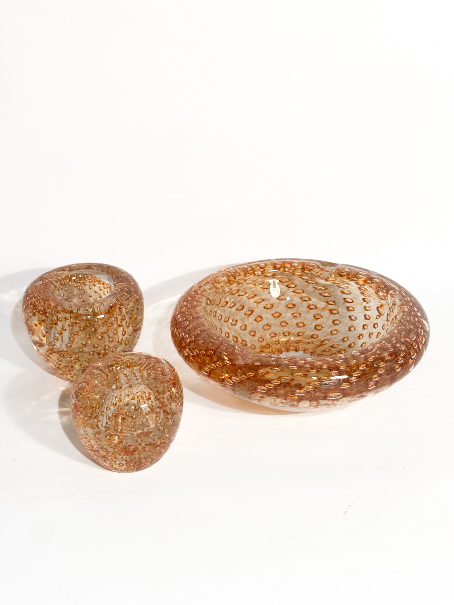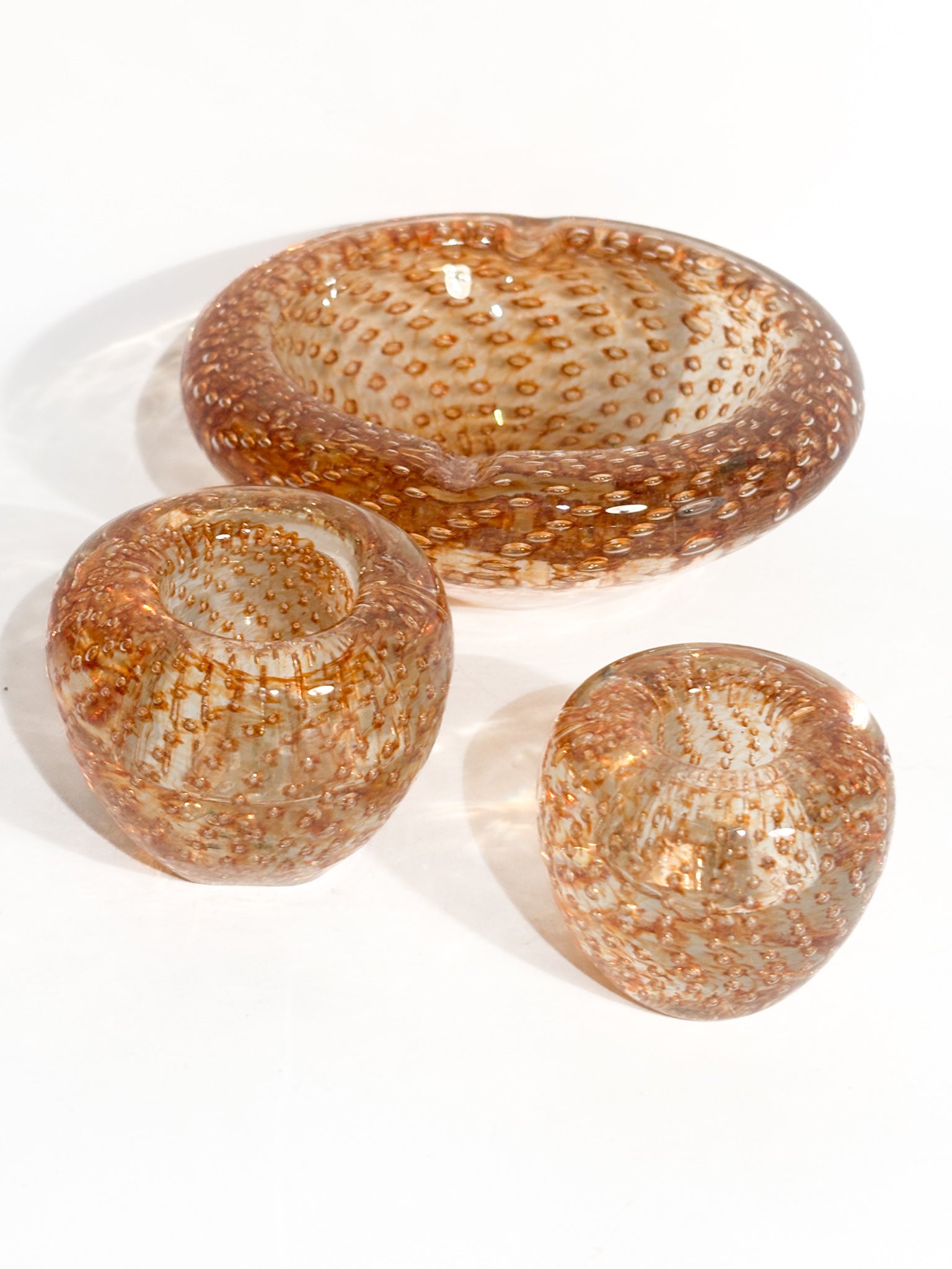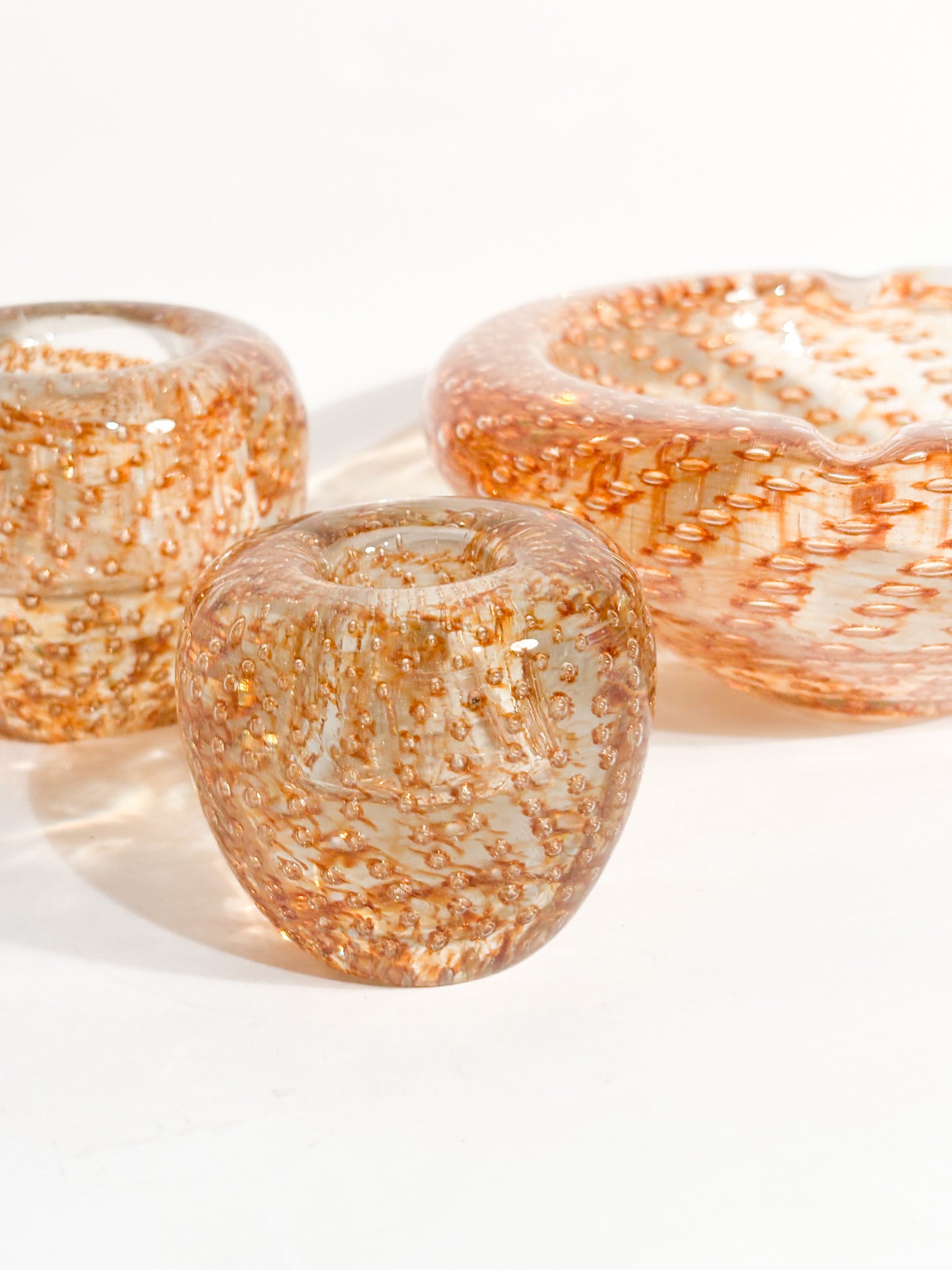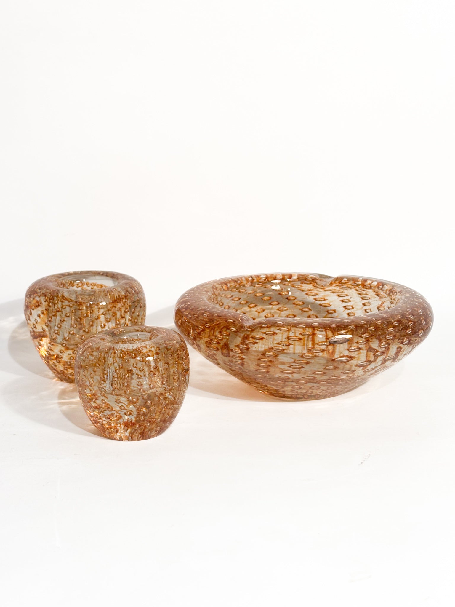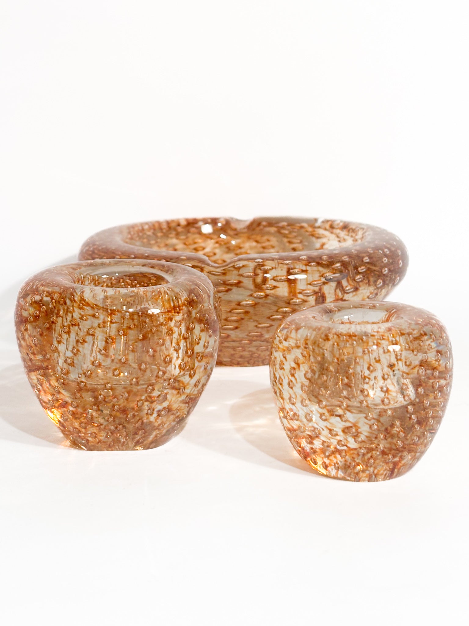 Posacenere e Portacandele in Vetro di Murano Dorato Anni 60