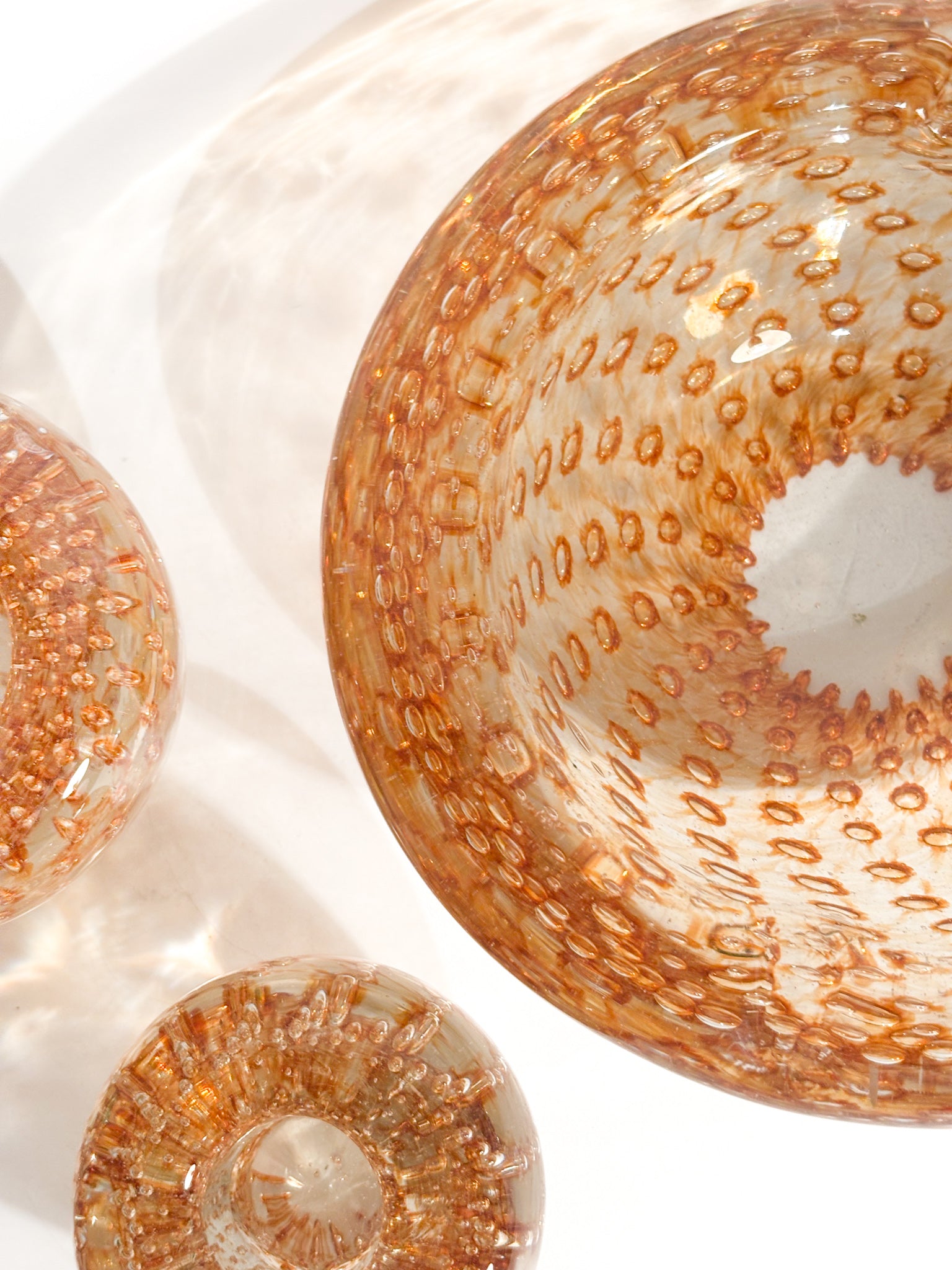 Posacenere e portacandele in Vetro di Murano dorato, realizzati negli anni '60