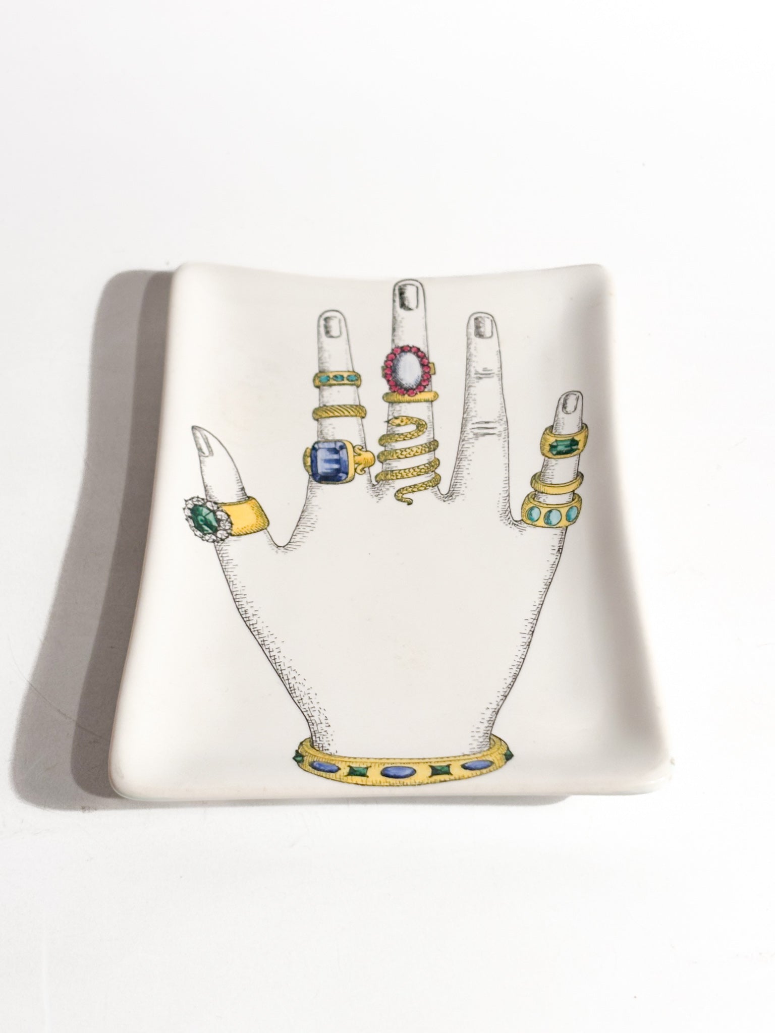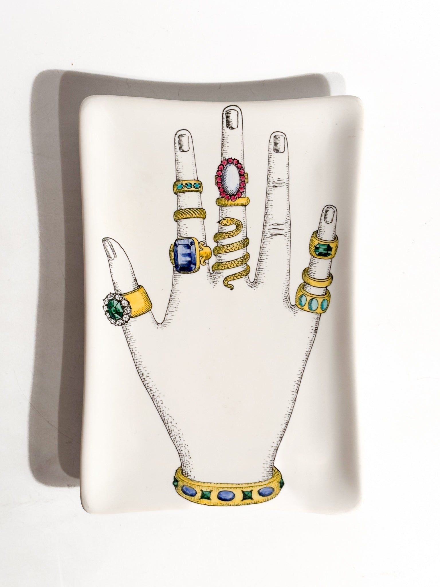 Posacenere in Ceramica "Mano con Anelli" di Fornasetti Anni 60