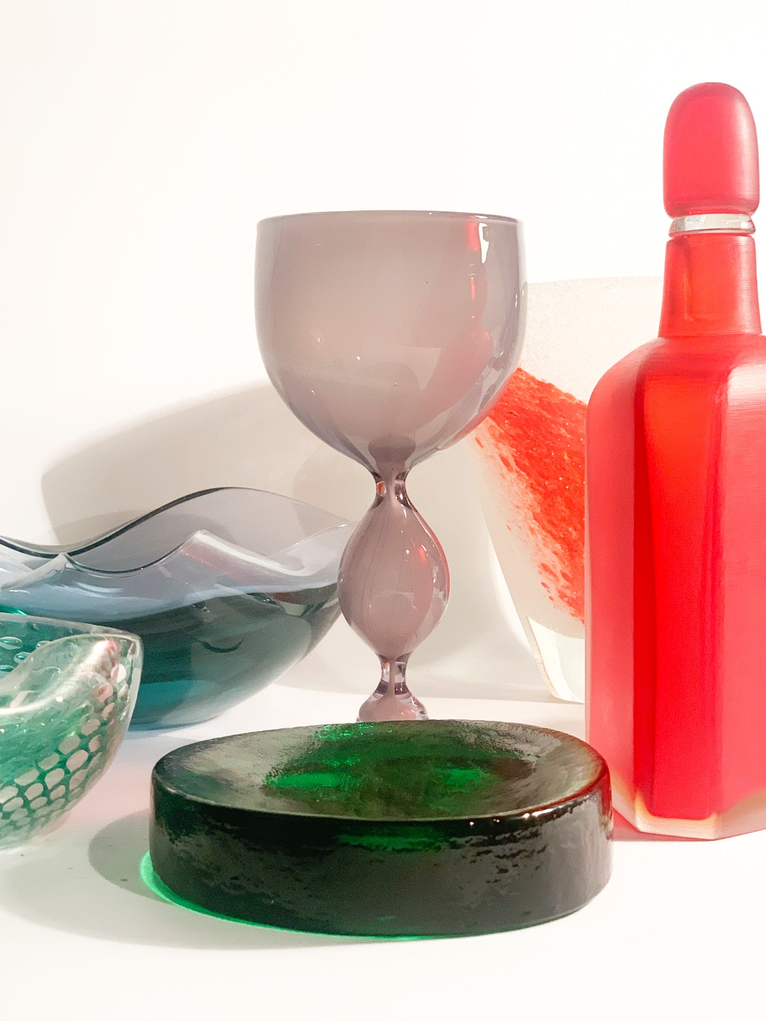 Hand-blown glass goblet, with an hourglass shape, made by Kosta Edenfalk in the 1990s