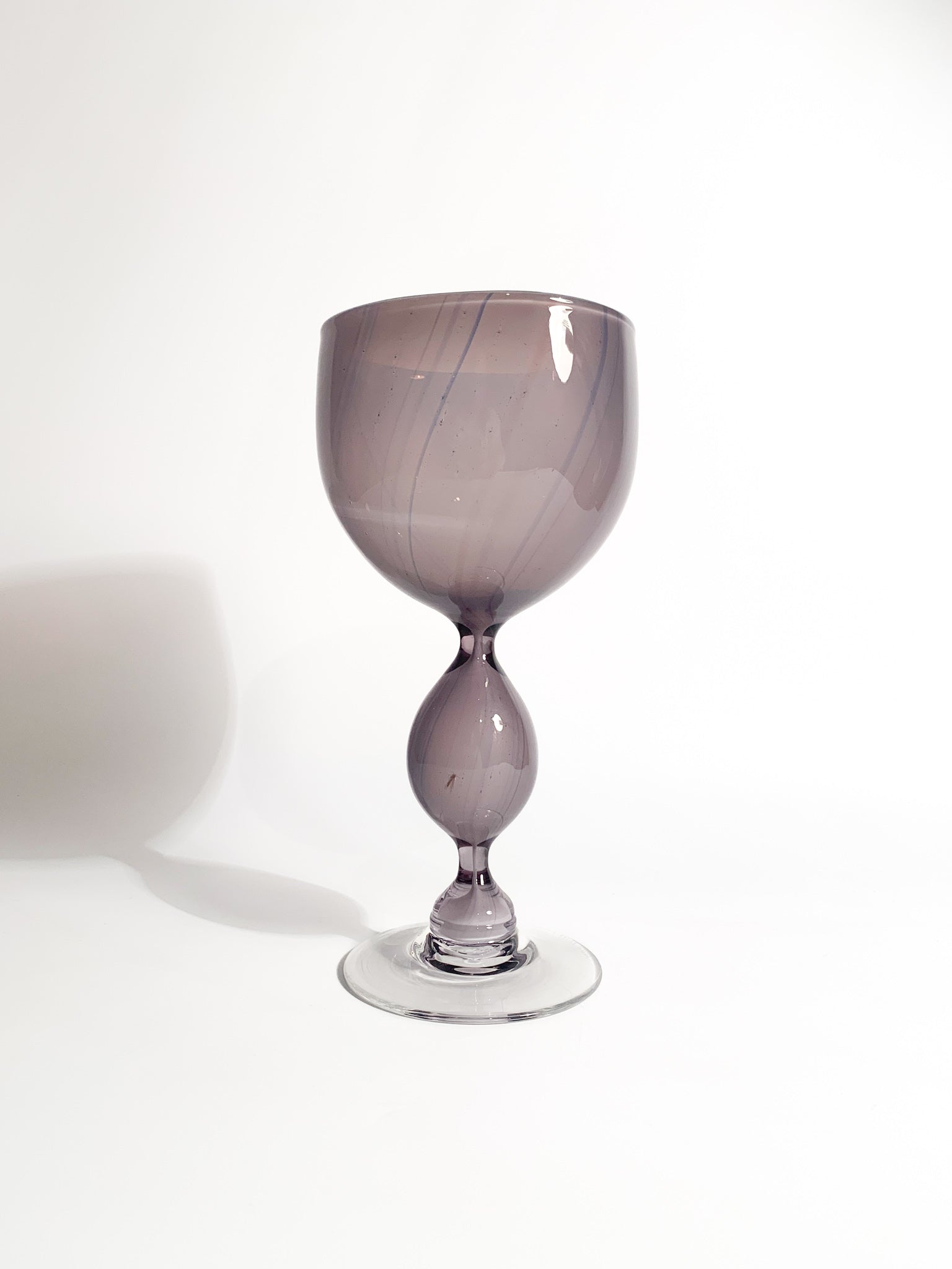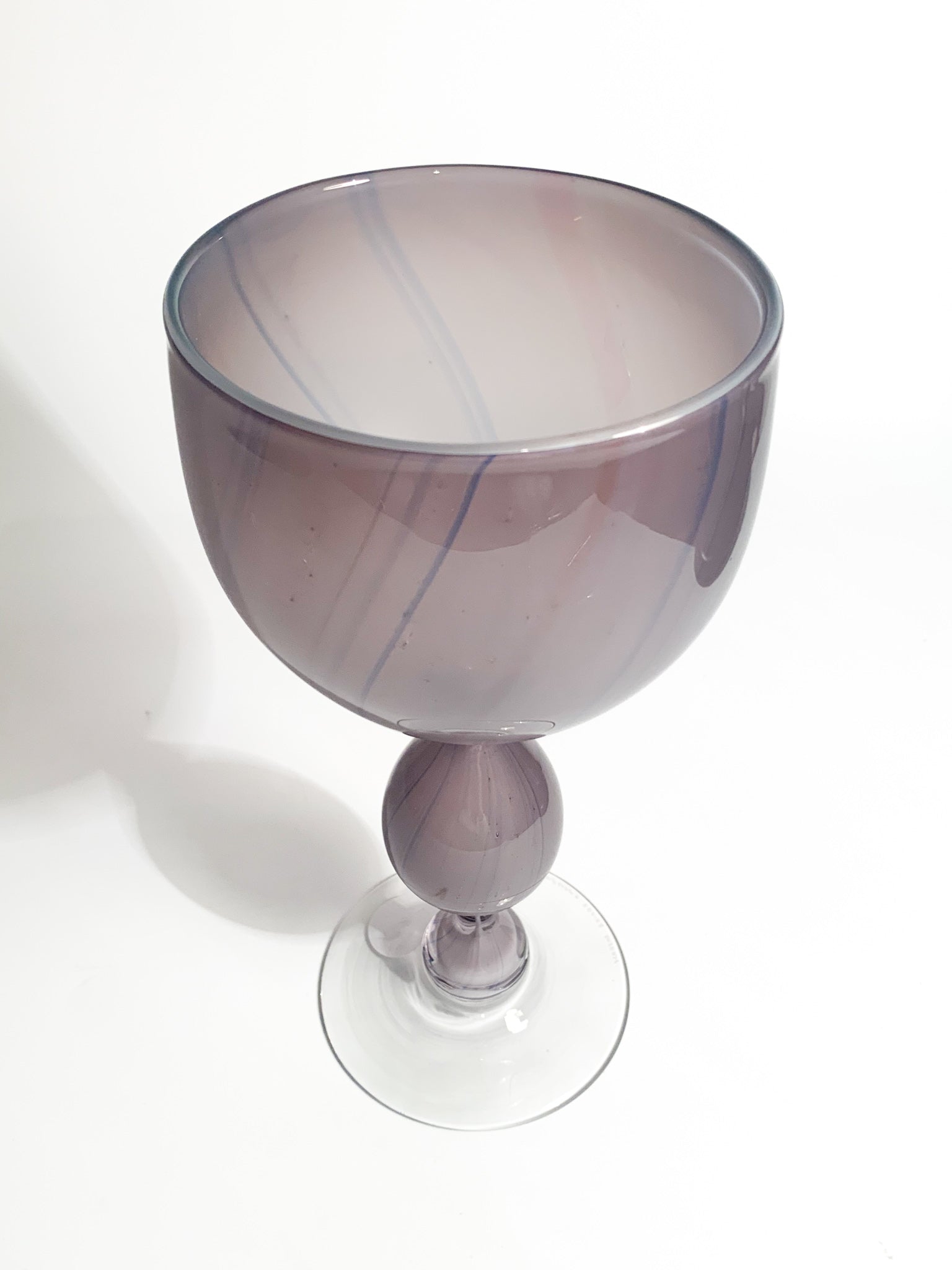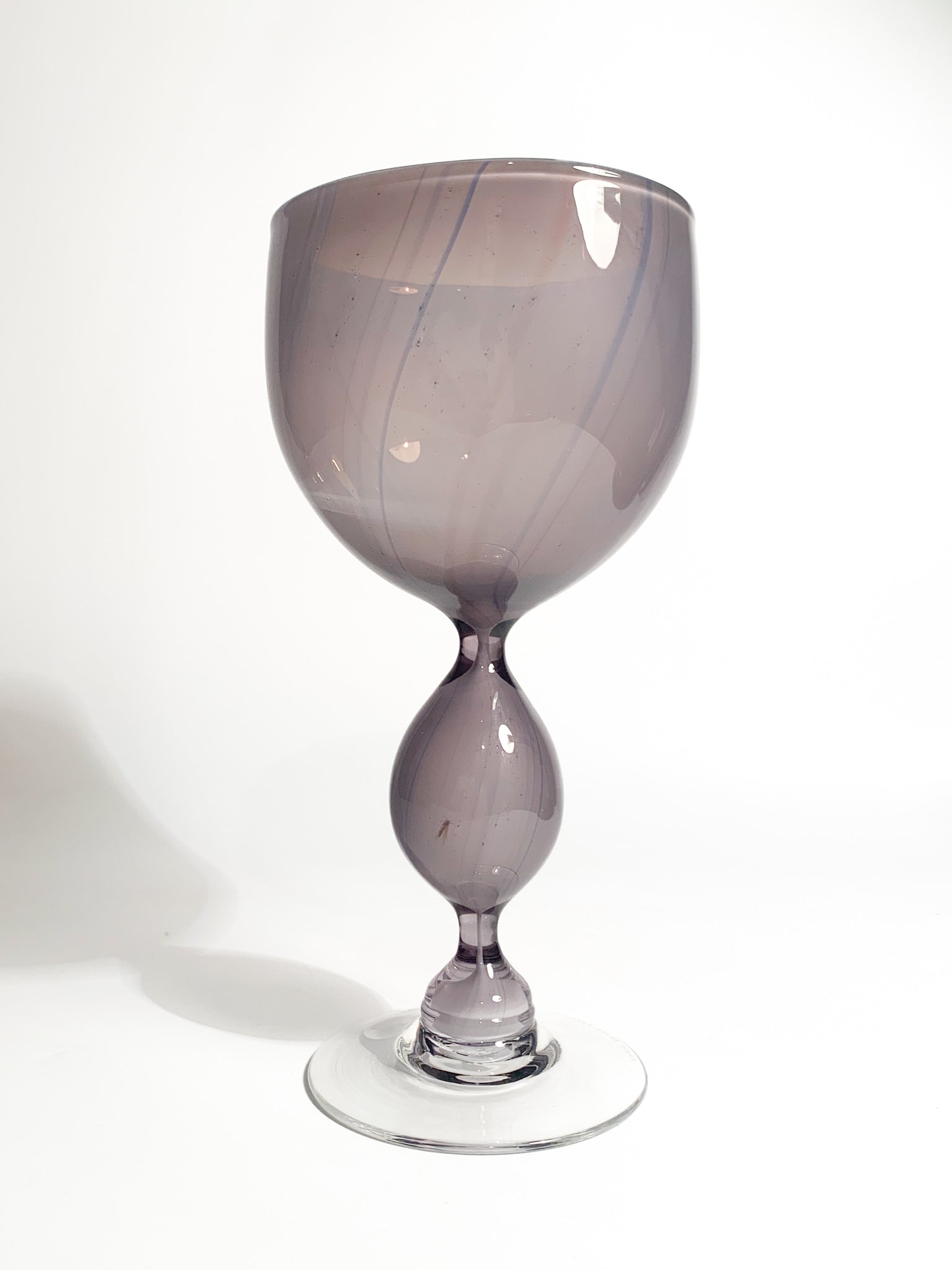 Purple Hourglass-Shaped Blown Glass Goblet by Kosta Edenfalk from the 1990s