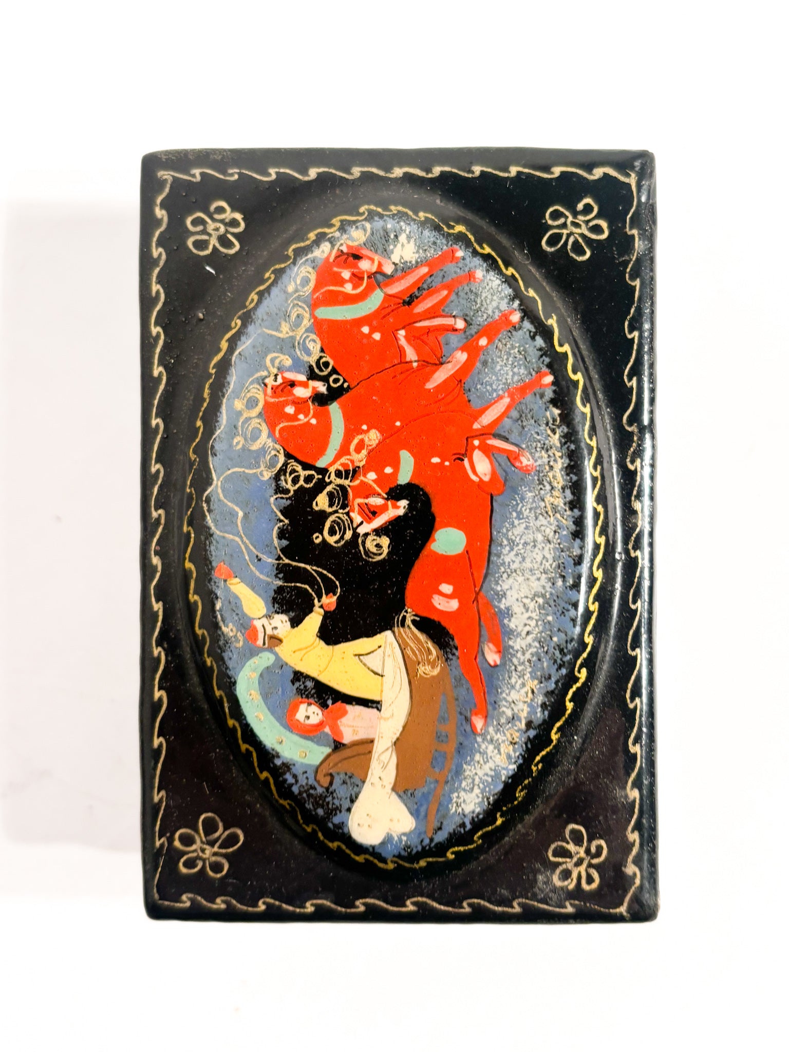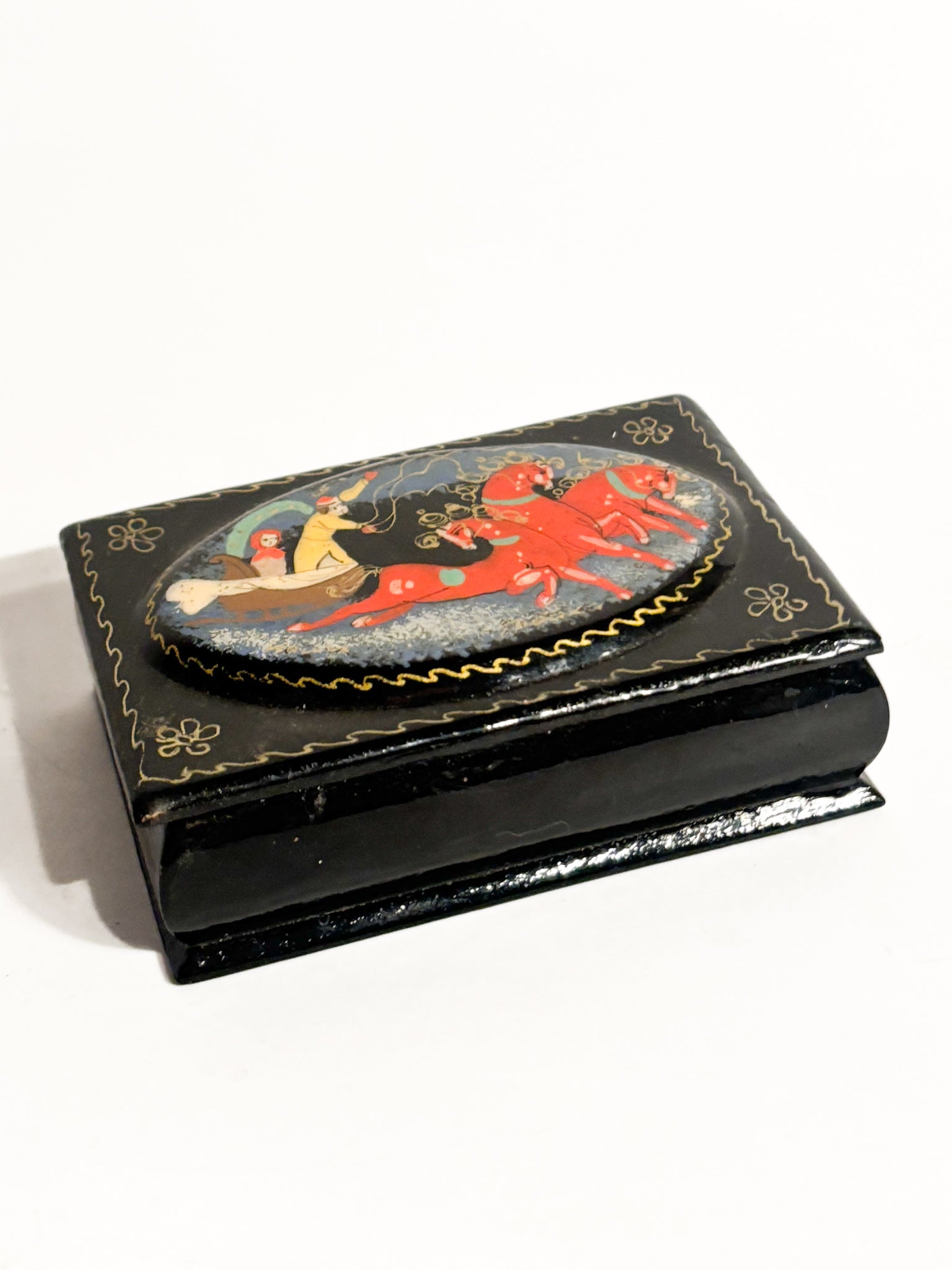 Scatola Russa Palekh in Cartapesta Laccata con Troika XX Secolo