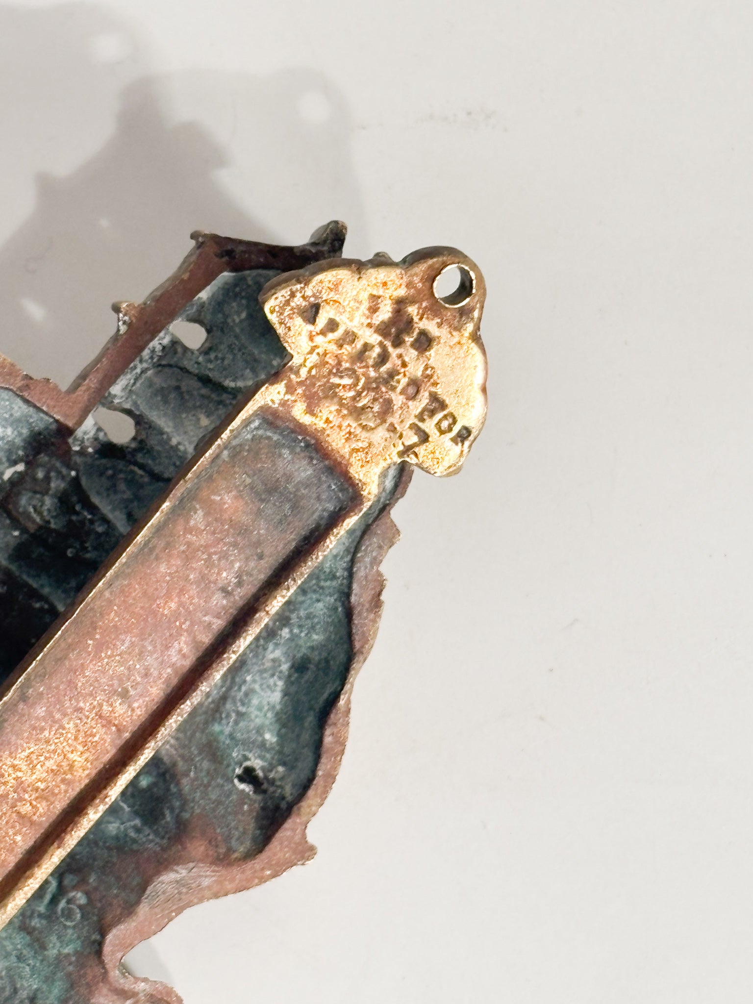 Wall sculpture in gilded bronze depicting a sailing ship, made in the 1950s