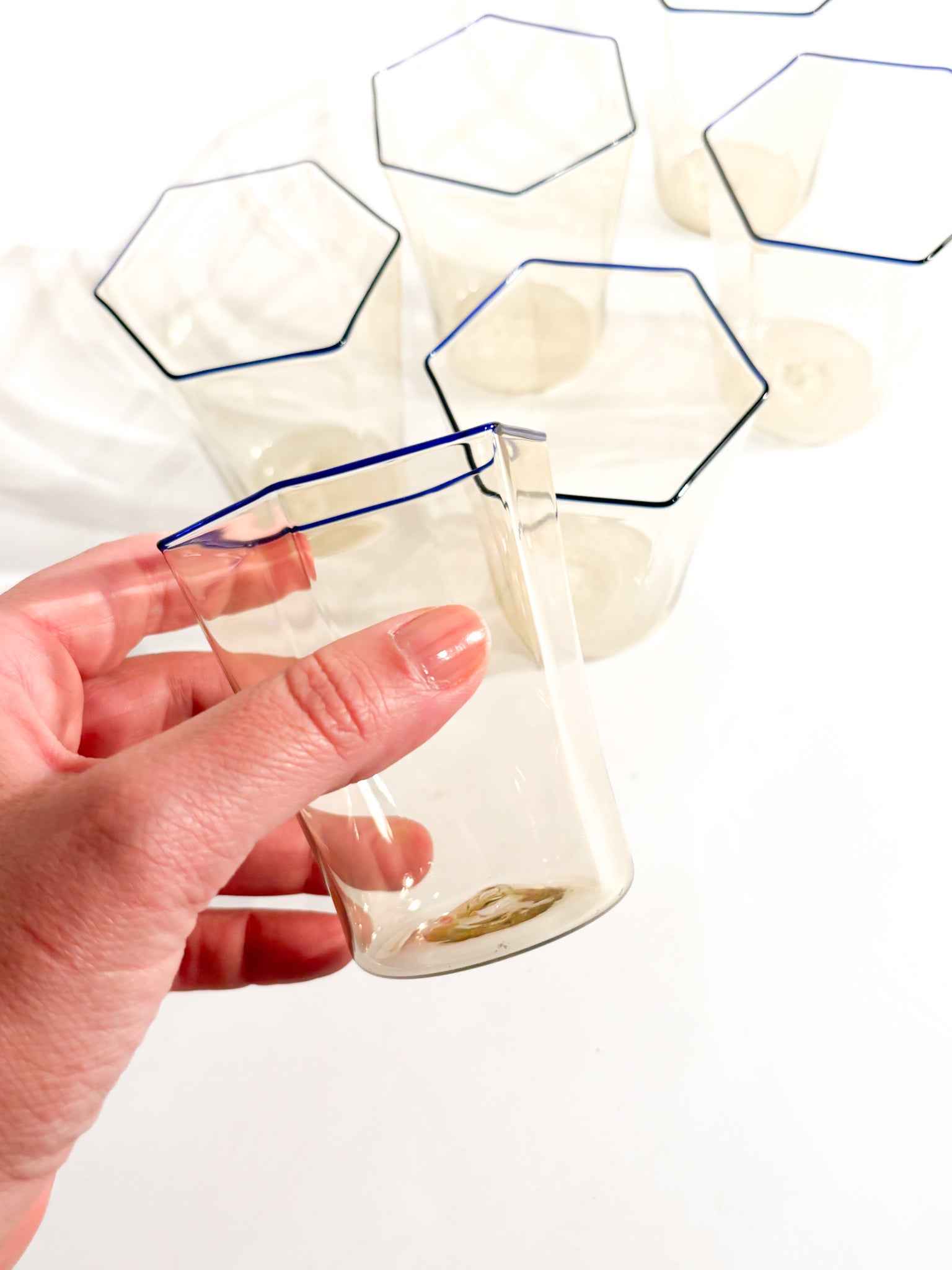 Set of six cylindrical glasses in hand-blown Murano glass, made by Carlo Scarpa for Venini in the 1930s