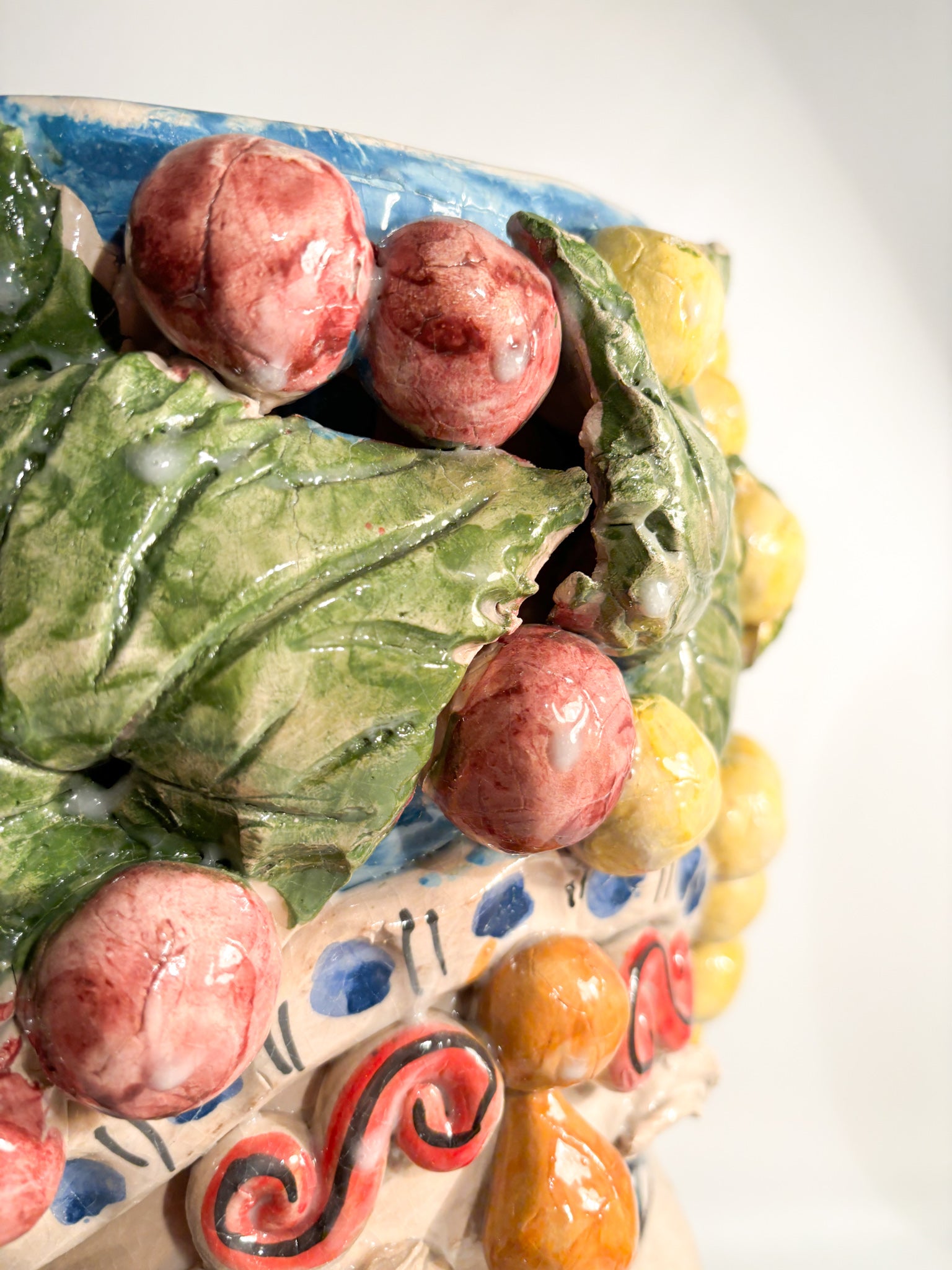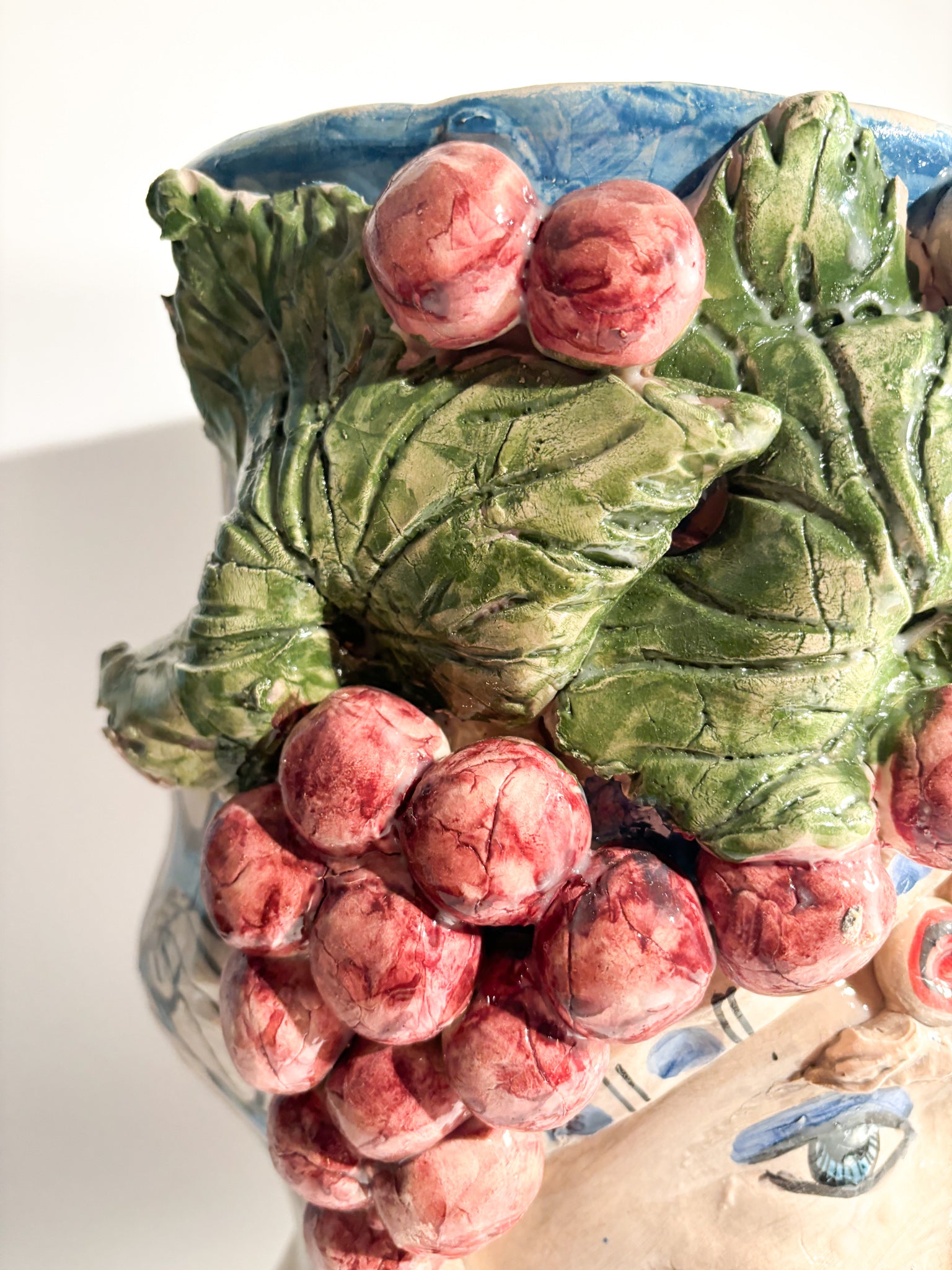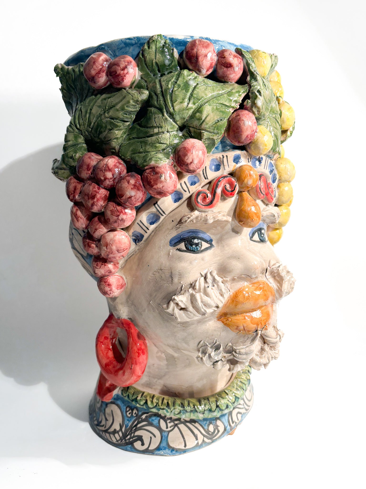 Caltagirone Moor's head of a male figure with vine, made by Ceramiche Germano in the 1990s