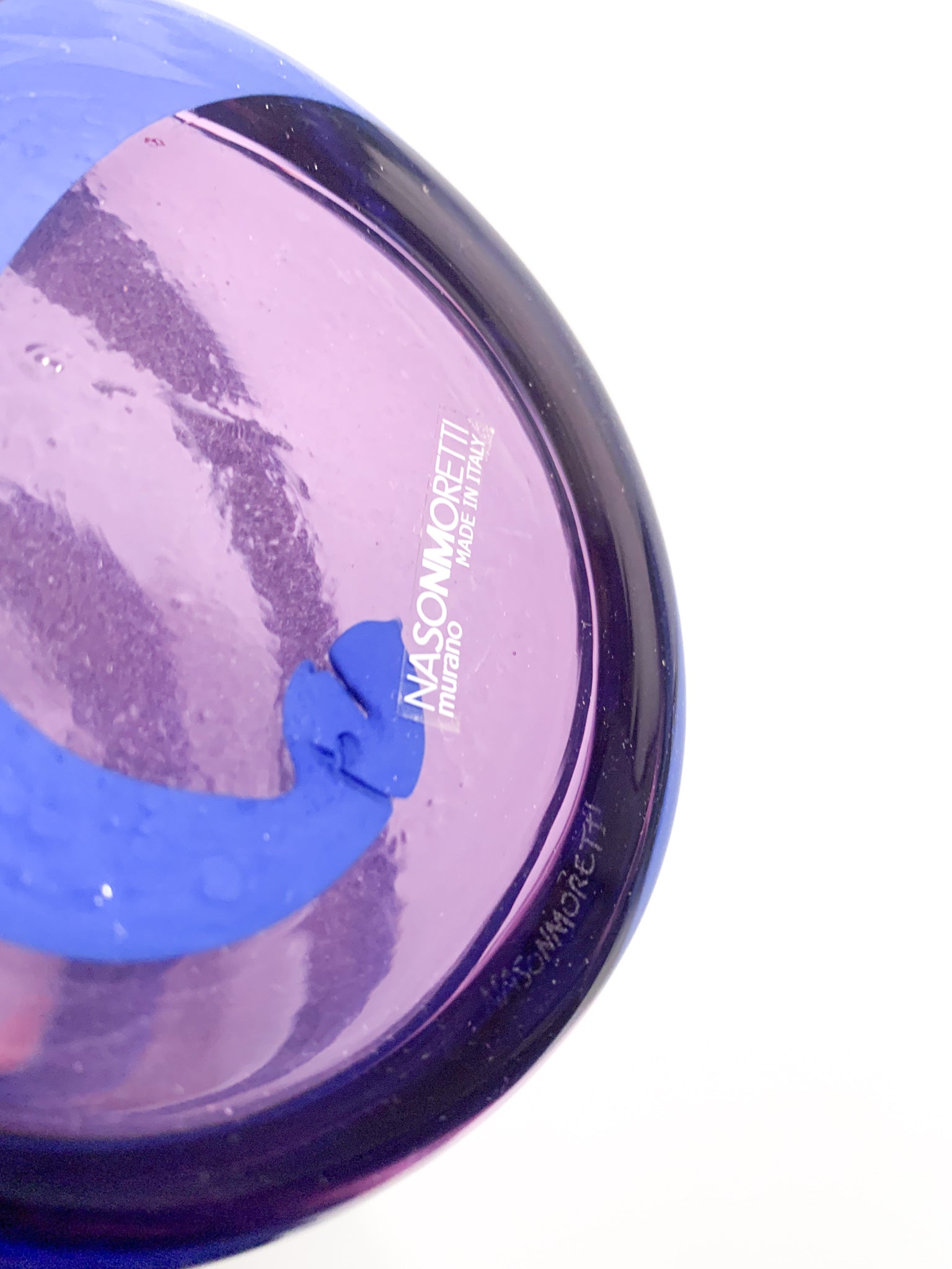 Purple and blue hand-blown Murano glass vase, 'Snake' collection, made in the 1990s by Nason Moretti