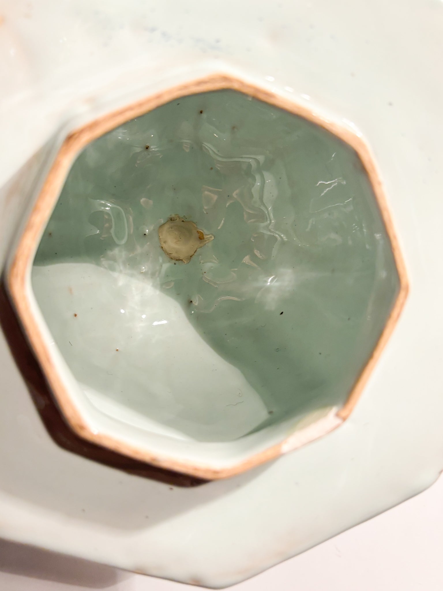 The glazing with tin oxide gives the ceramic its characteristic opaque white color.