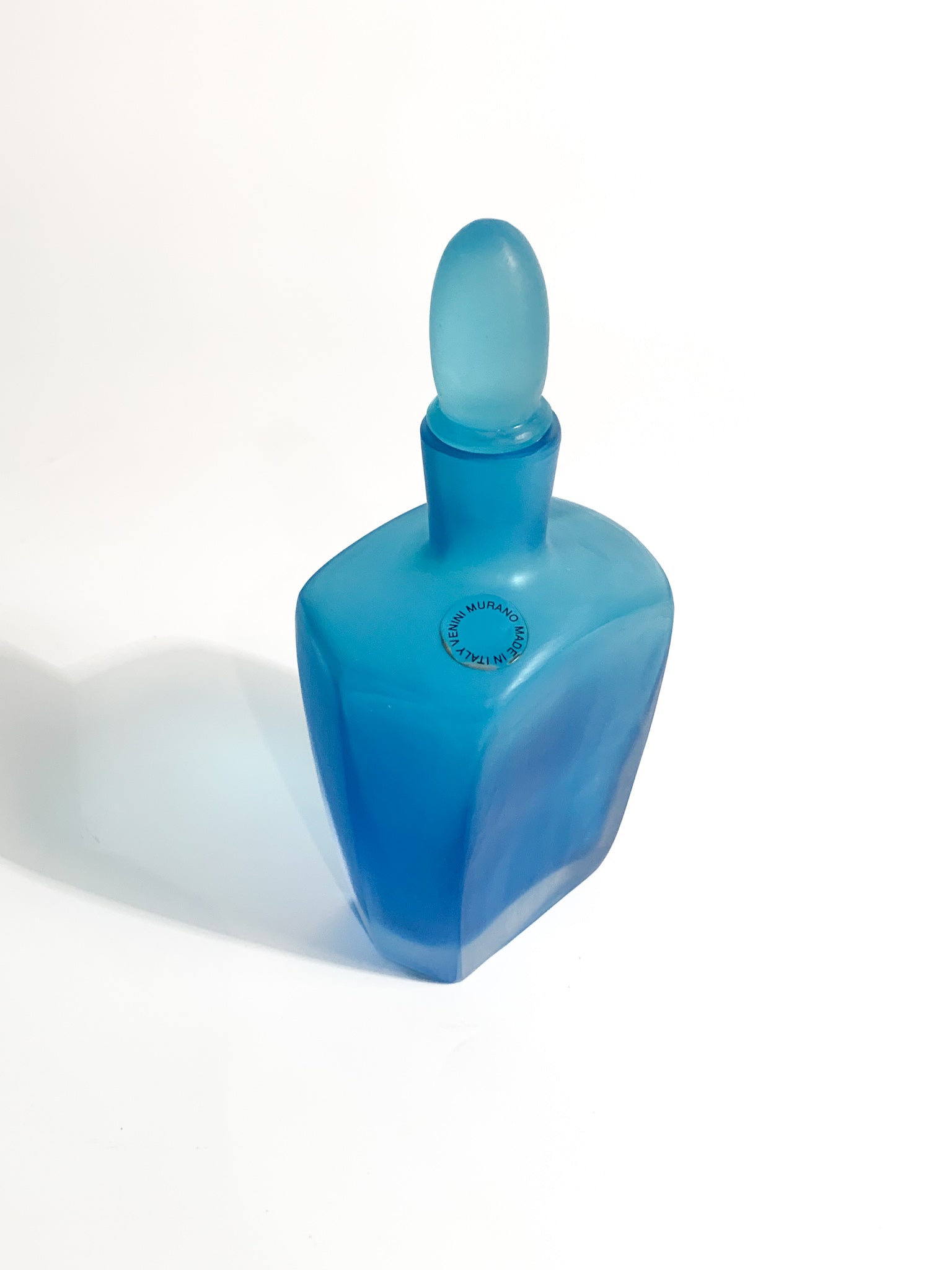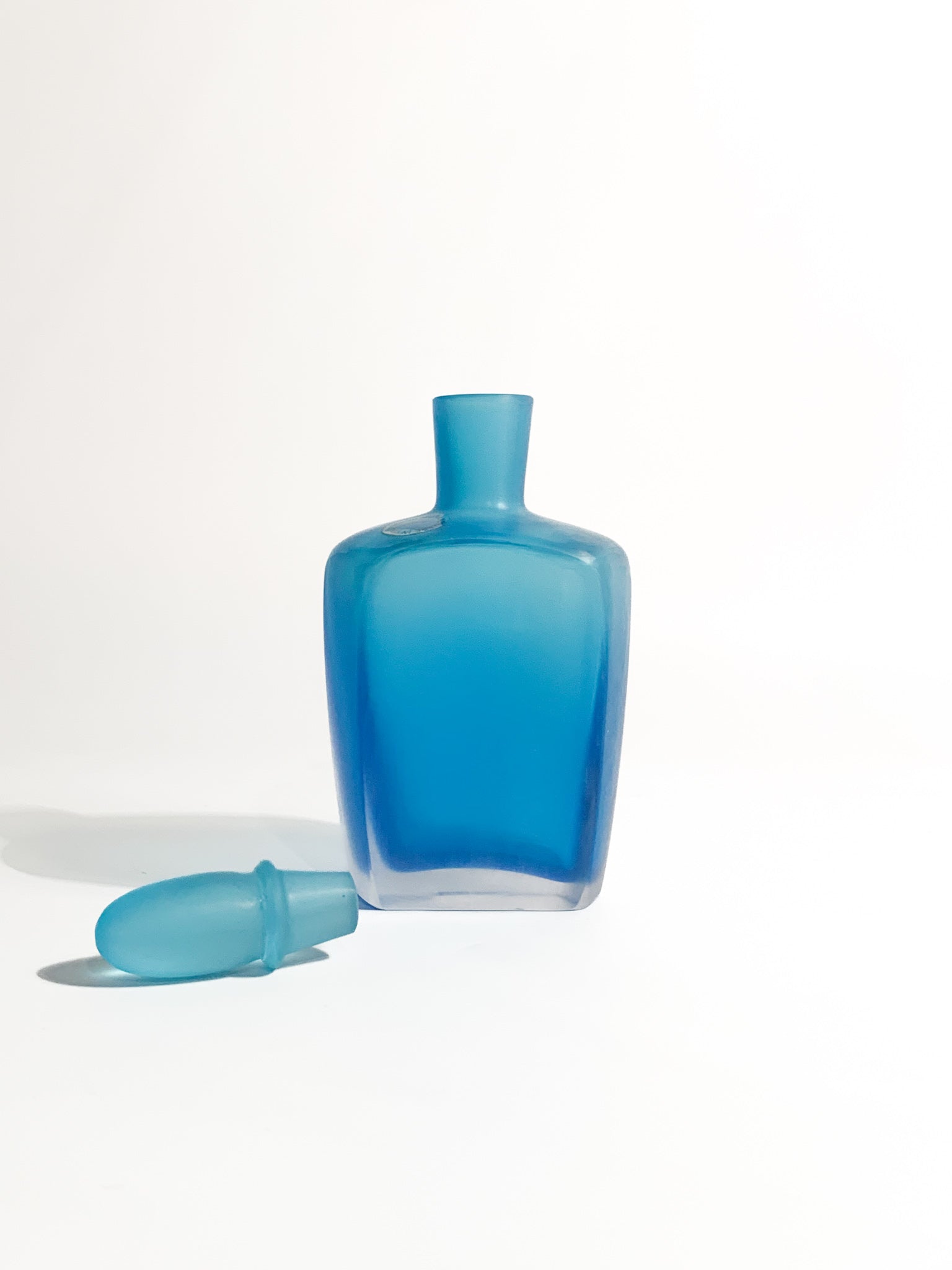 Light blue Murano glass bottle from the 'Veiled' Collection, designed by Paolo Venini in 1995