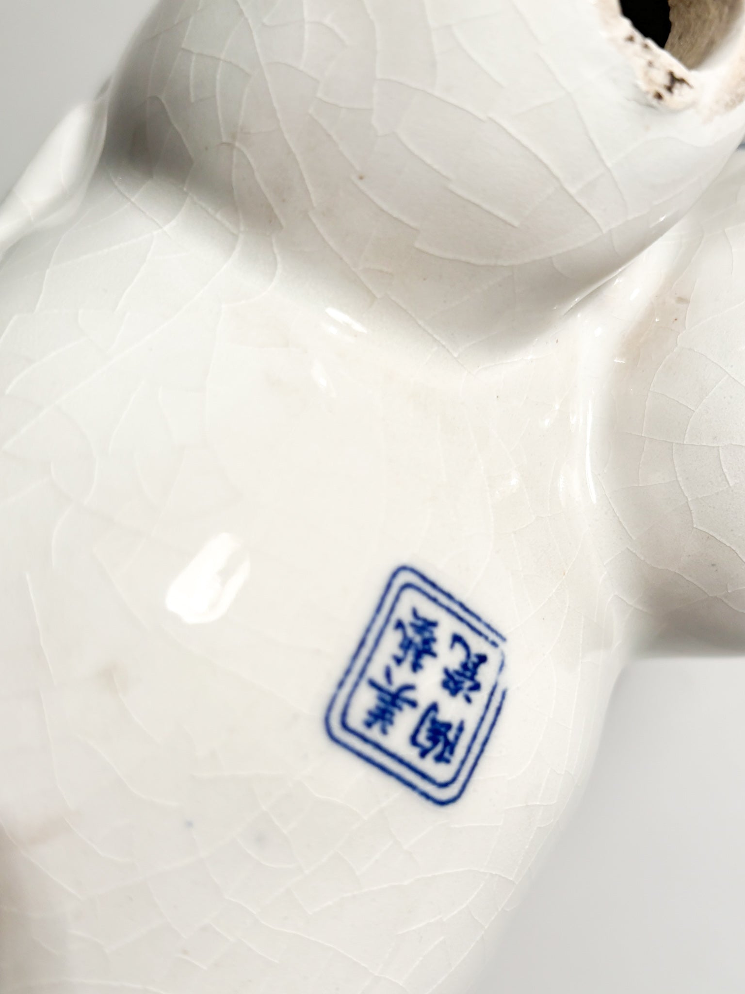 White Chinese Ceramic Cushion with 1930s China Blue Decorations