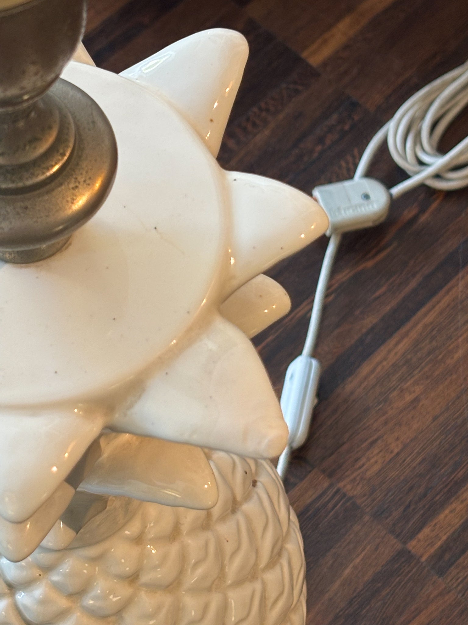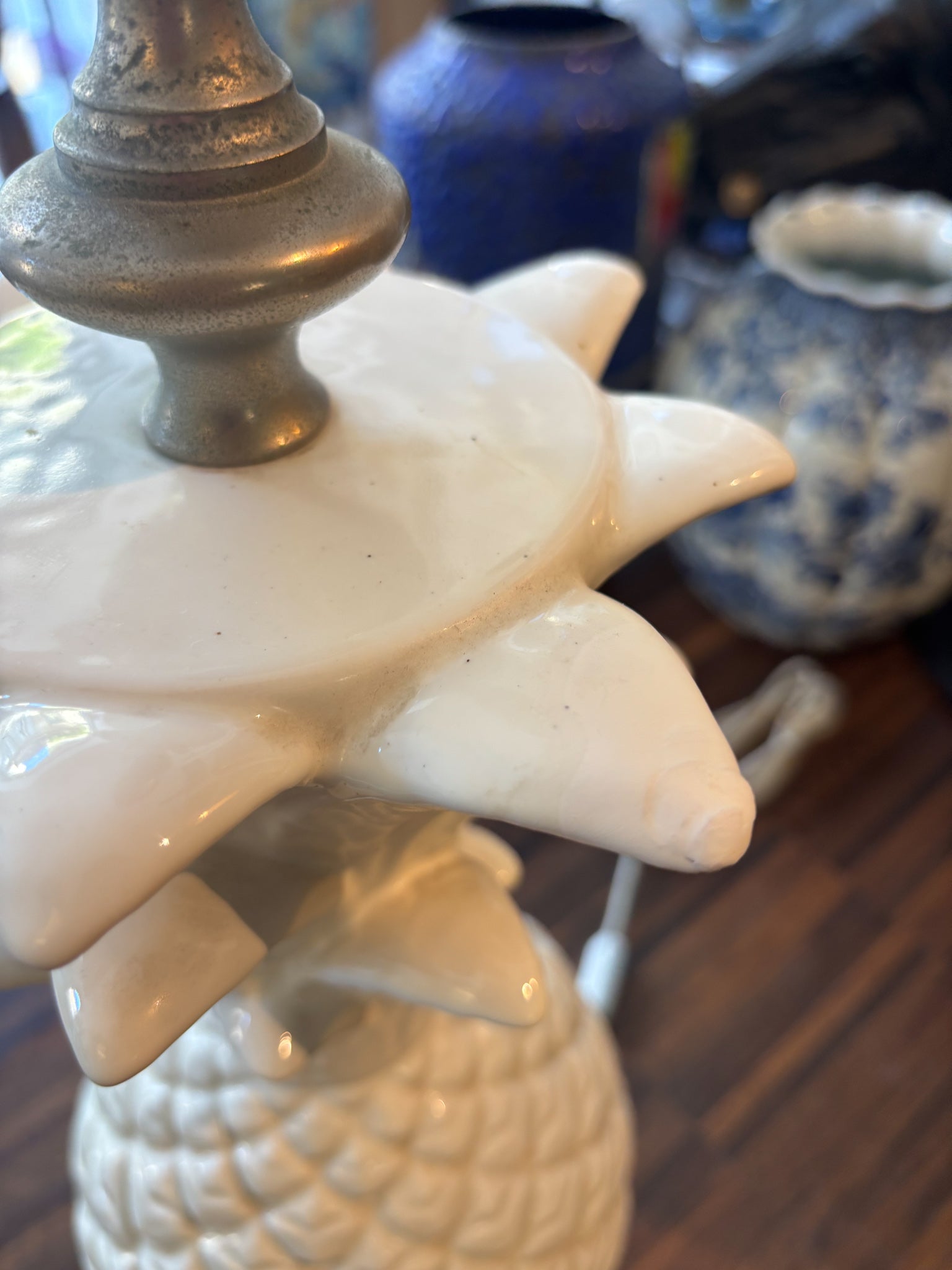 Pair of white ceramic table/floor lamps shaped like pineapples, made by Zaccagnini Ceramiche in the 1960s. One of the two lamps has two slight restorations, as shown in the photos. Additional information and images are available upon request.