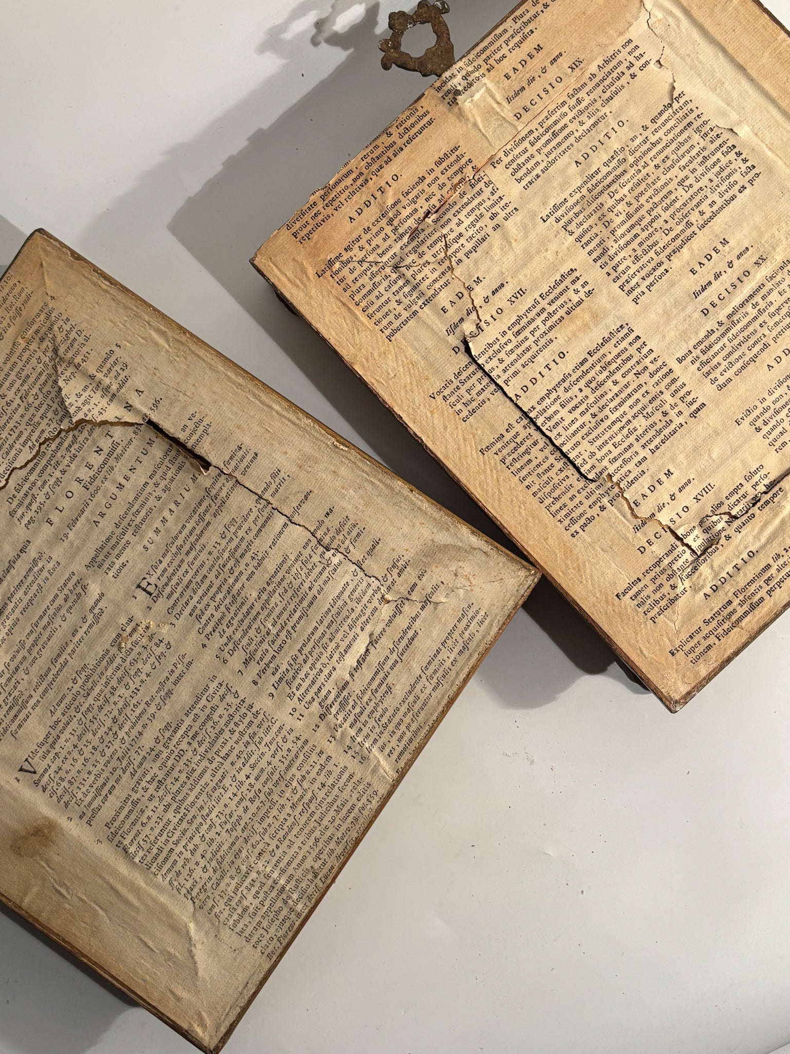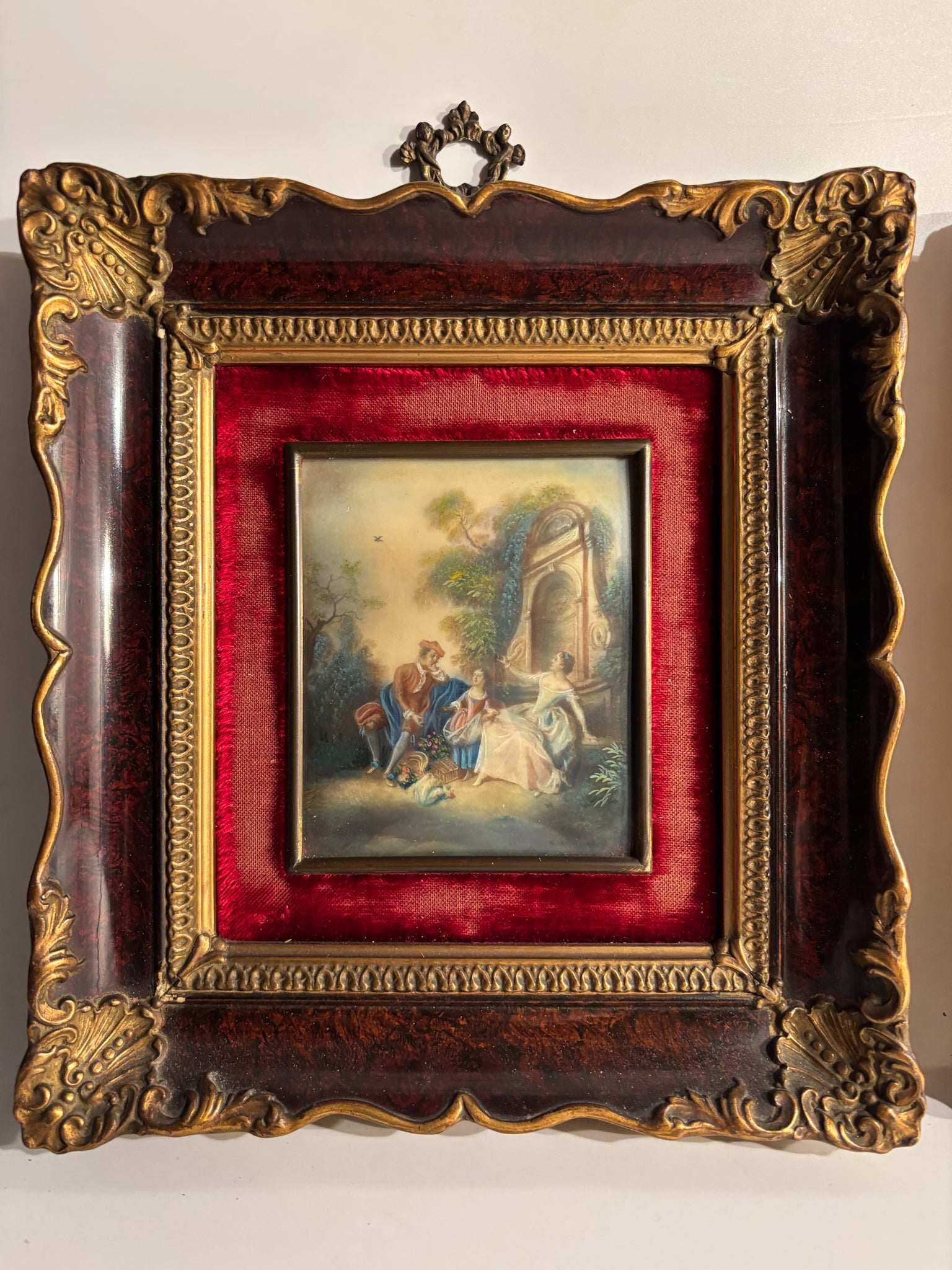 Pair of miniature paintings with classical scenes, made in oil on cardboard in the 20th Century