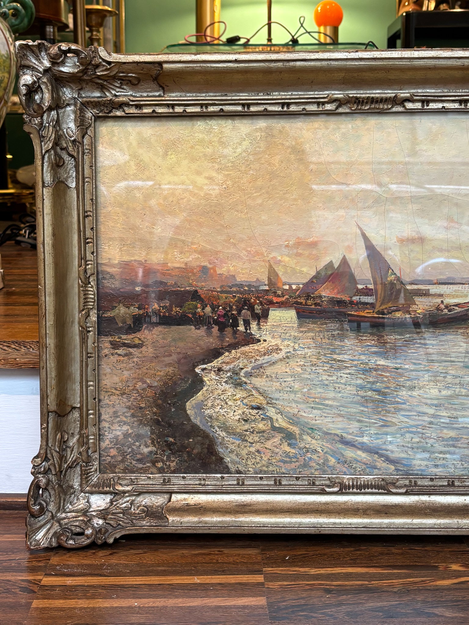 Dipinto Olio su Tavola di Marina di Fausto Pratella Anni 50