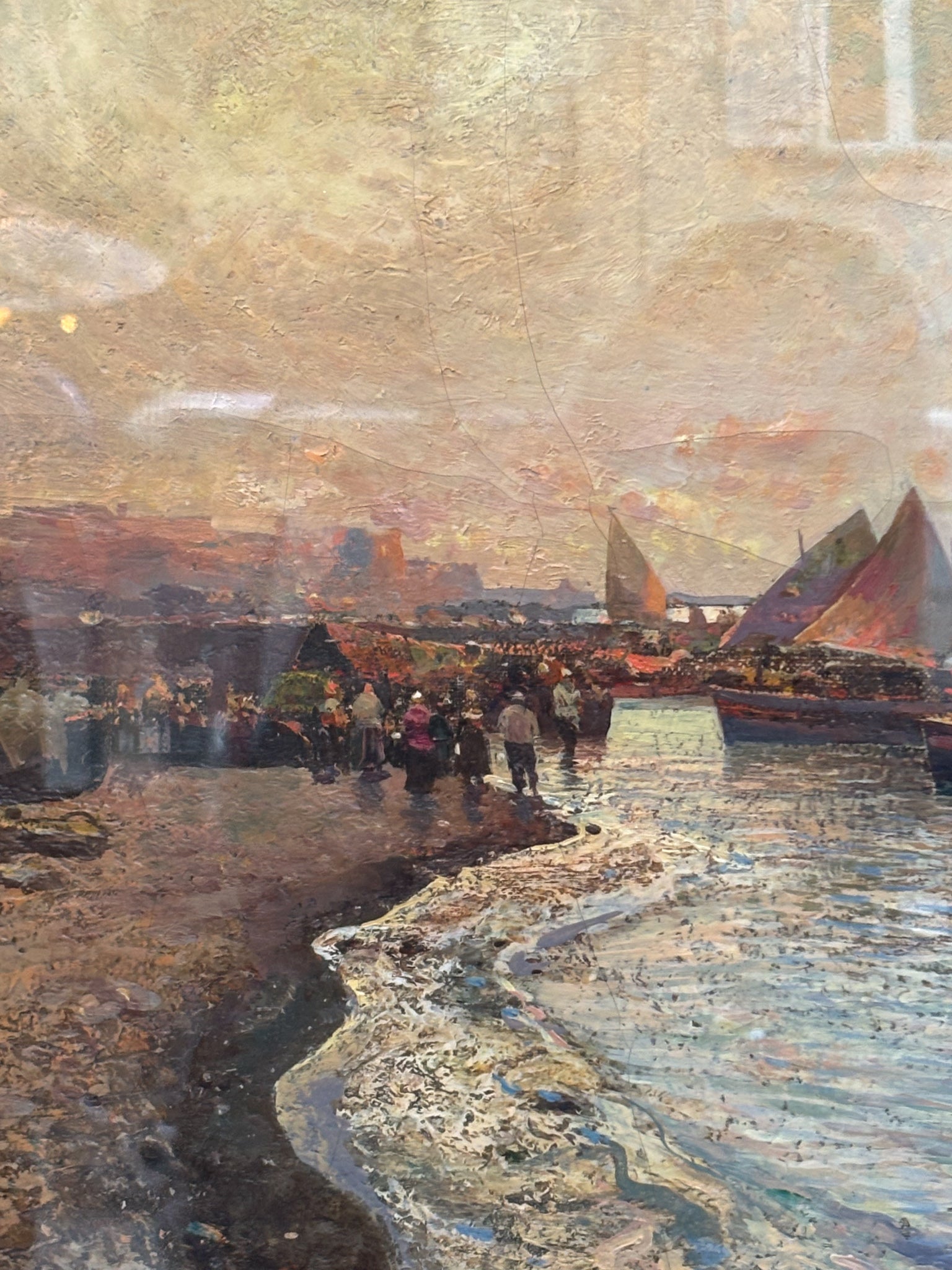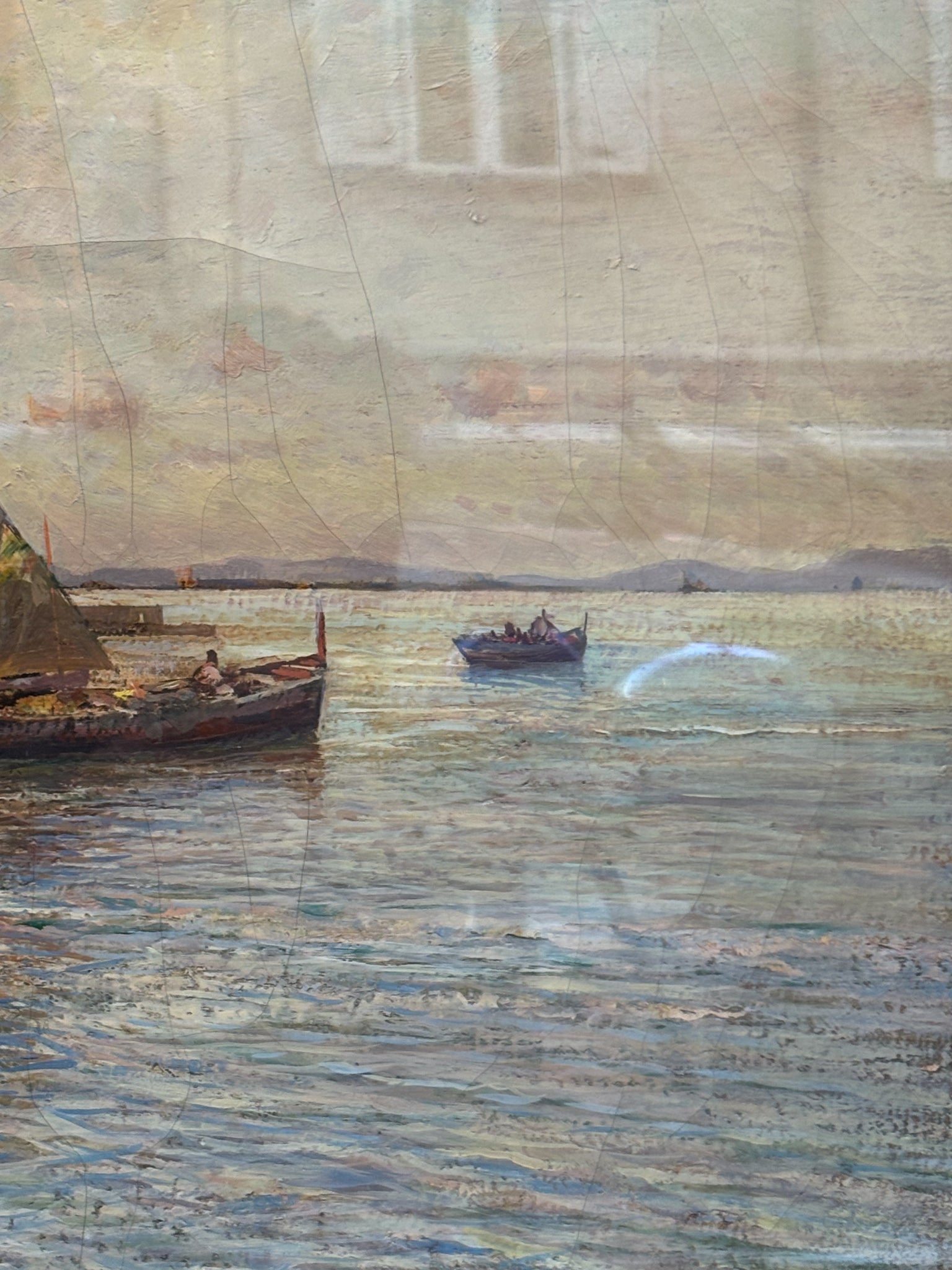 Dipinto olio su tavola raffigurante una marina, realizzata da Fausto Pratella negli anni '50