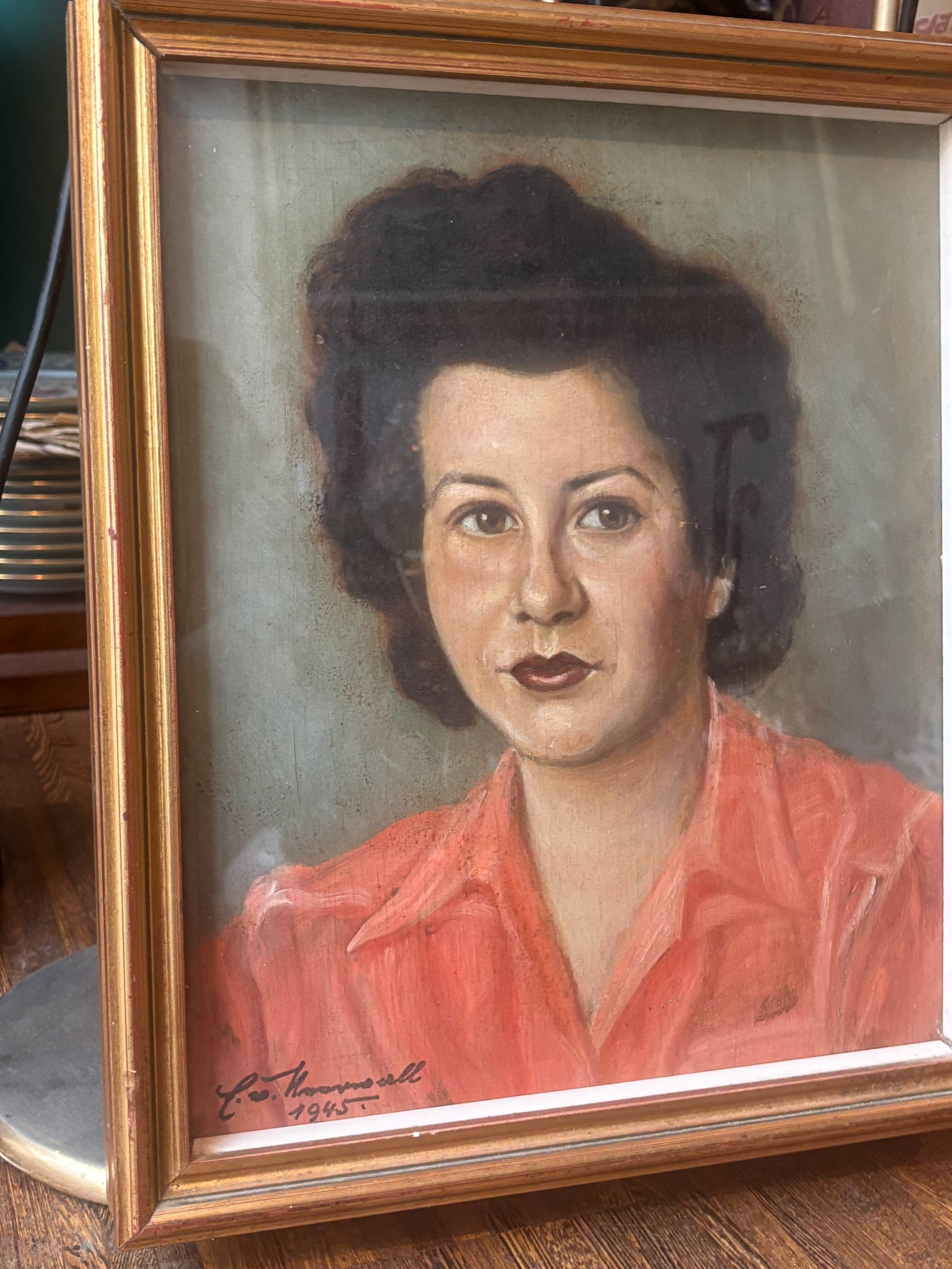 Oil painting on panel depicting a female portrait, created in 1945.