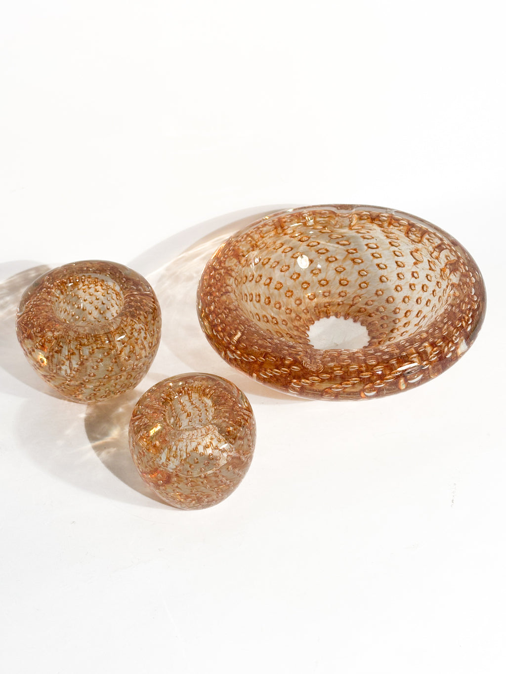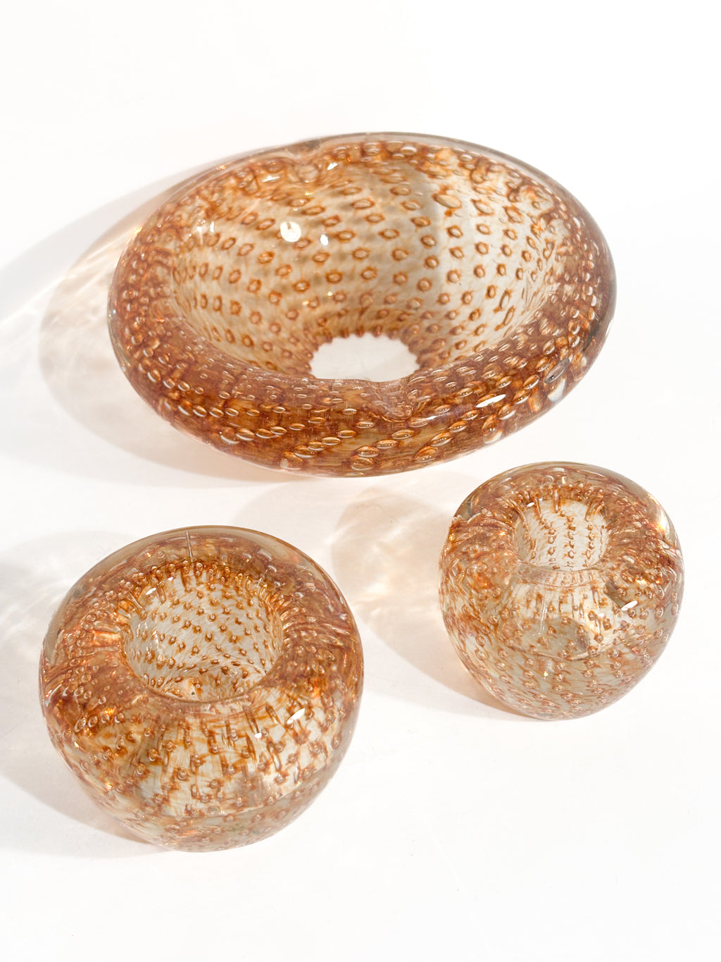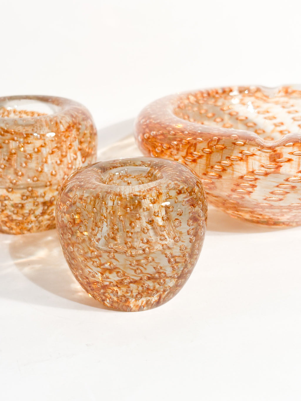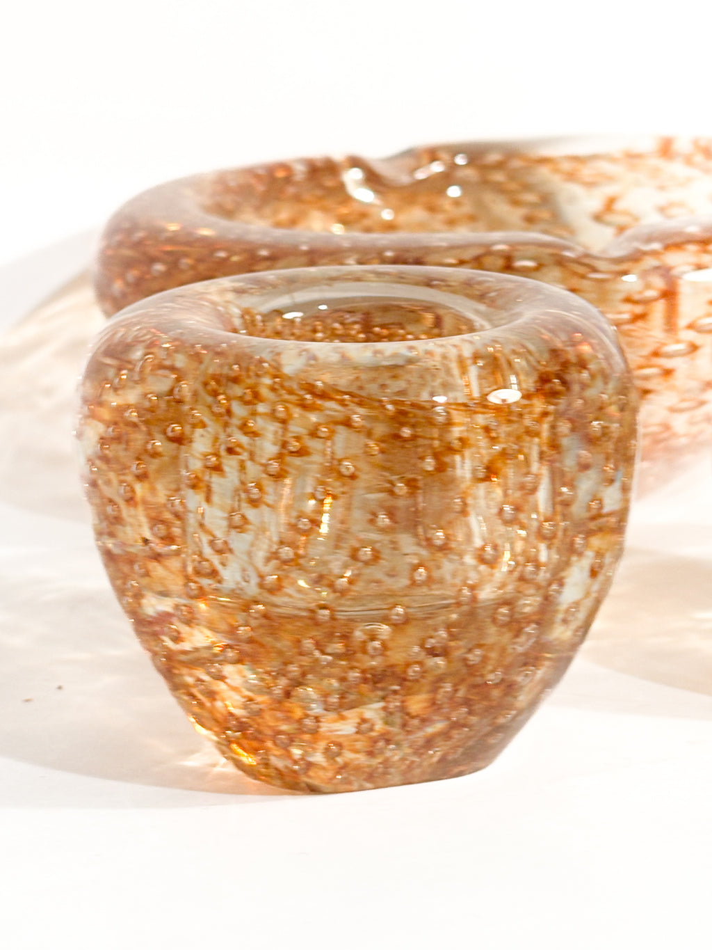 Posacenere e portacandele in Vetro di Murano dorato, realizzati negli anni '60
