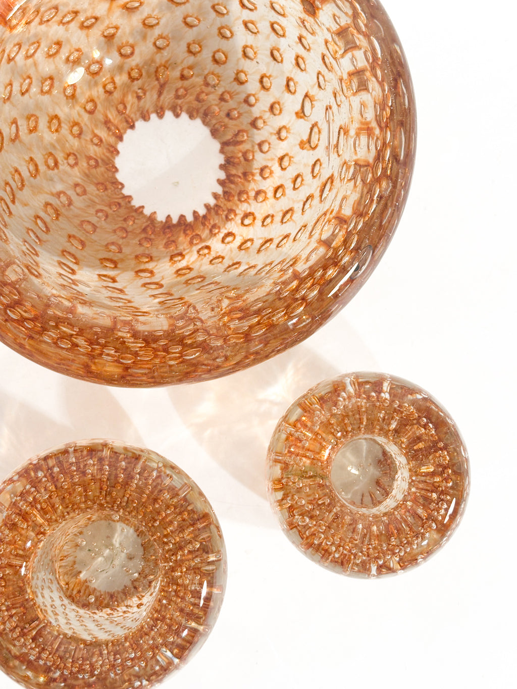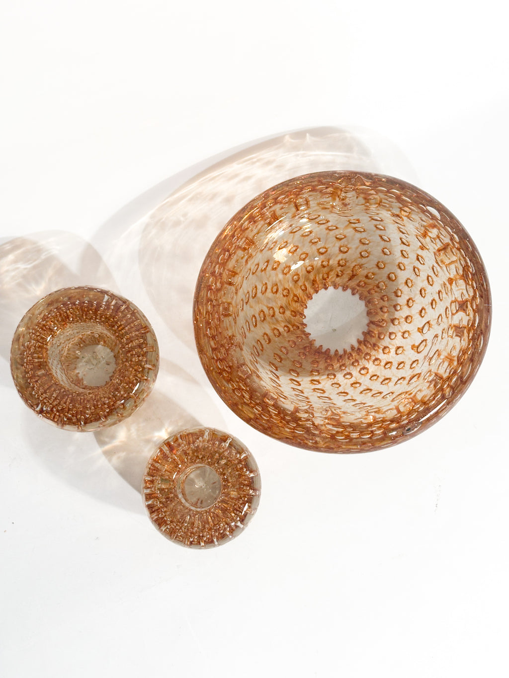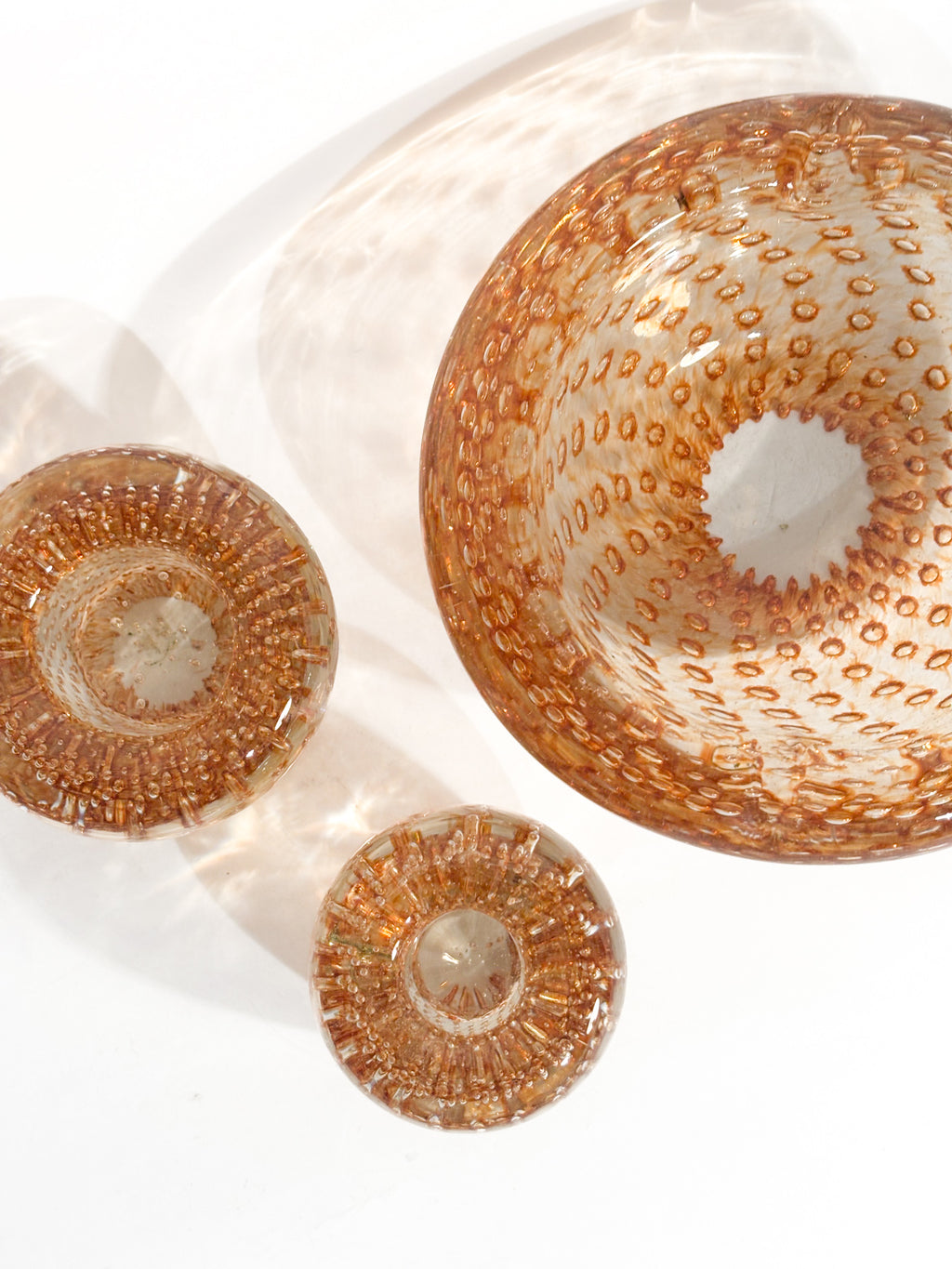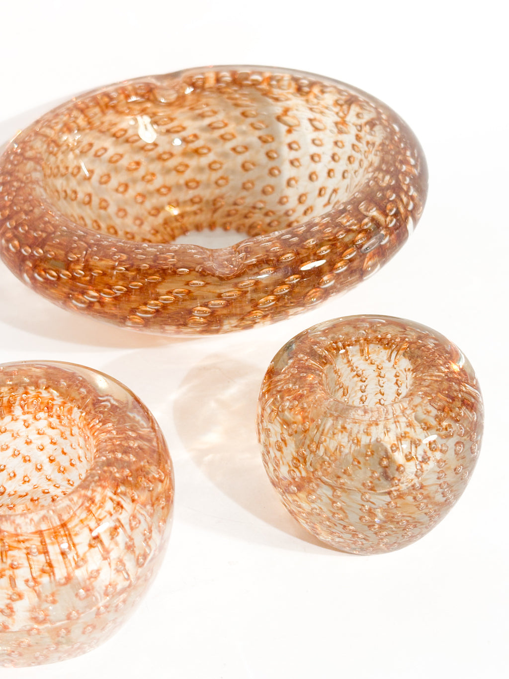 Posacenere e portacandele in Vetro di Murano dorato, realizzati negli anni '60