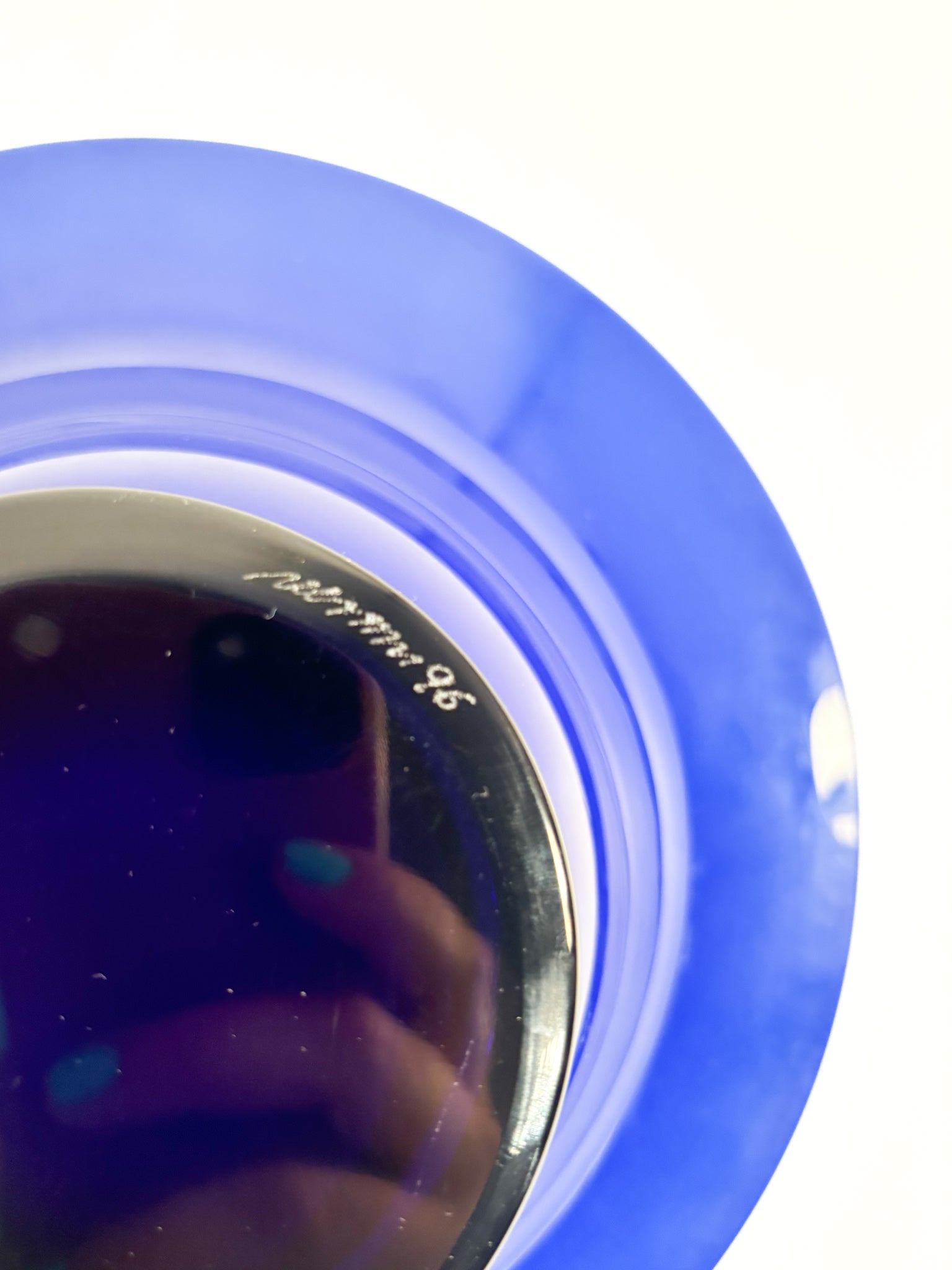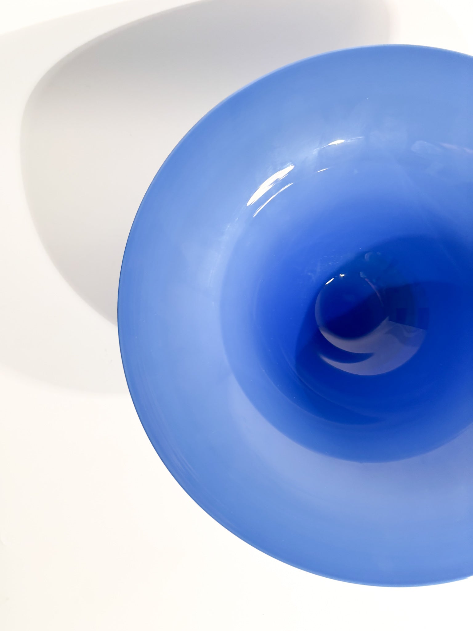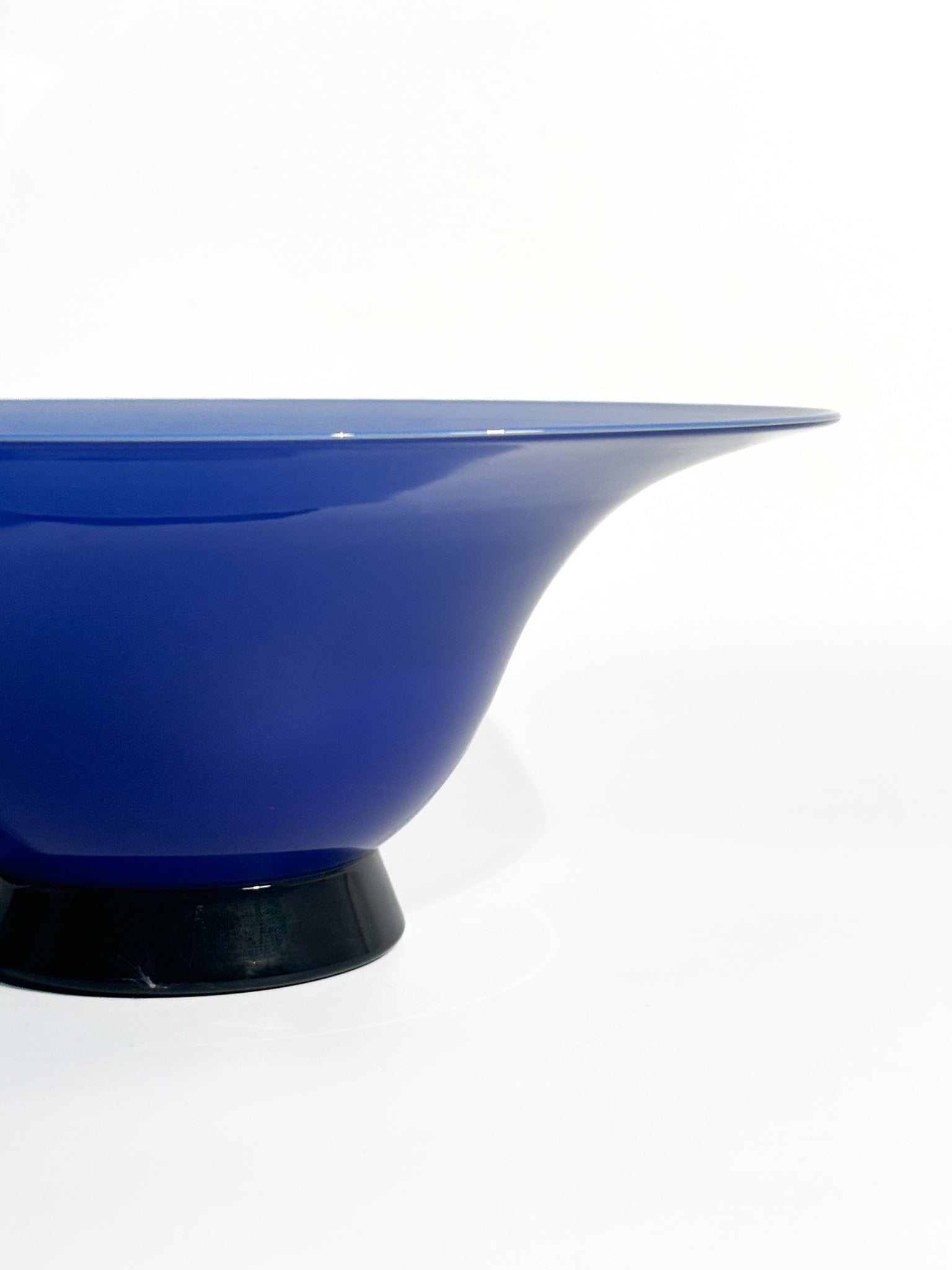 Centrotavola in vetro di Murano blu soffiato a mano, realizzato da Venini nel 1996