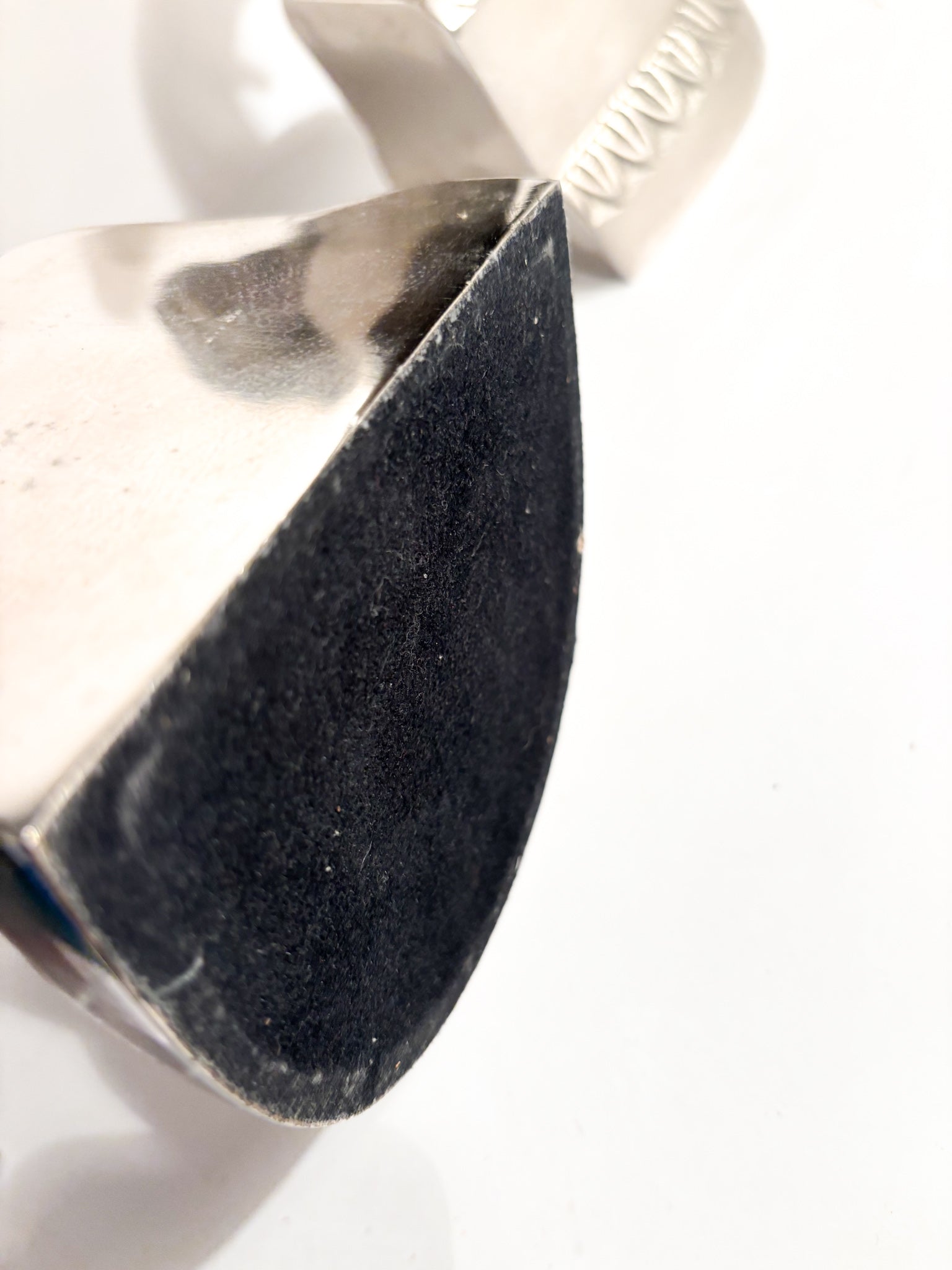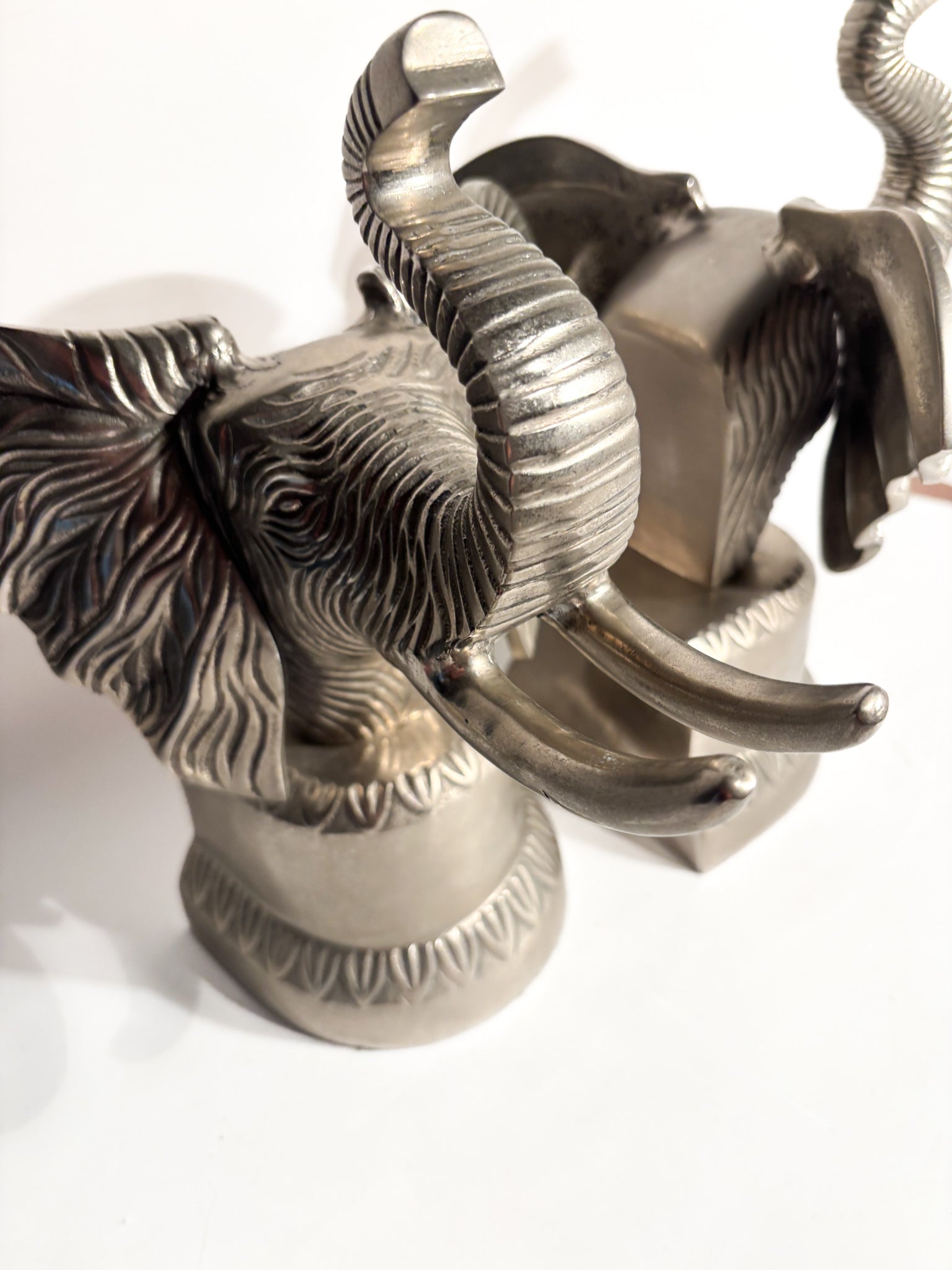 Coppia di fermalibri a forma di elefante con proboscide alzata, realizzati in metalli negli anni '80