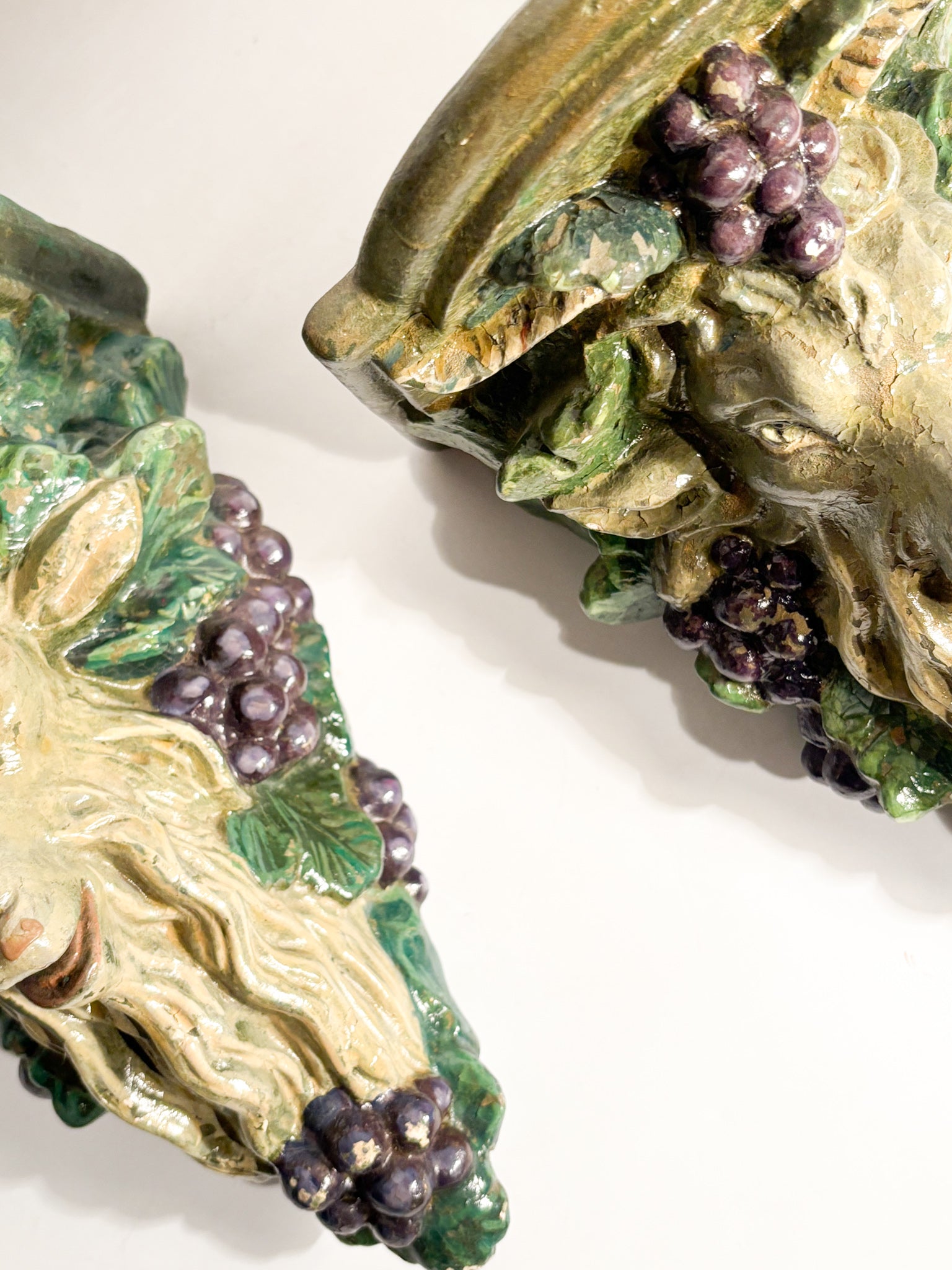 Coppia di mensole da parete in gesso raffiguranti una capra o montone, realizzati nei primi anni del XX Secolo