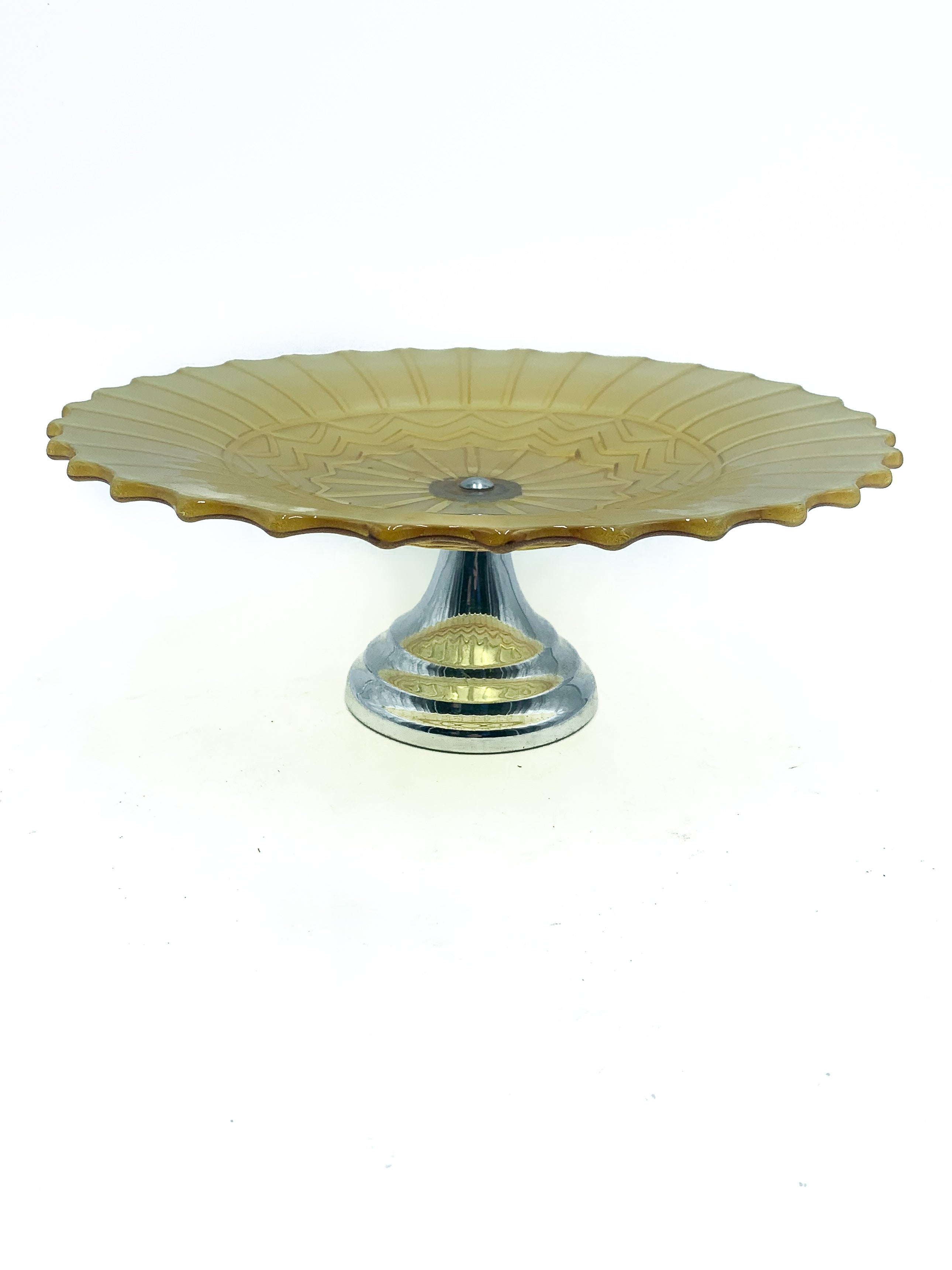 Alzatina in vetro di boemia giallo, creata negli anni '50