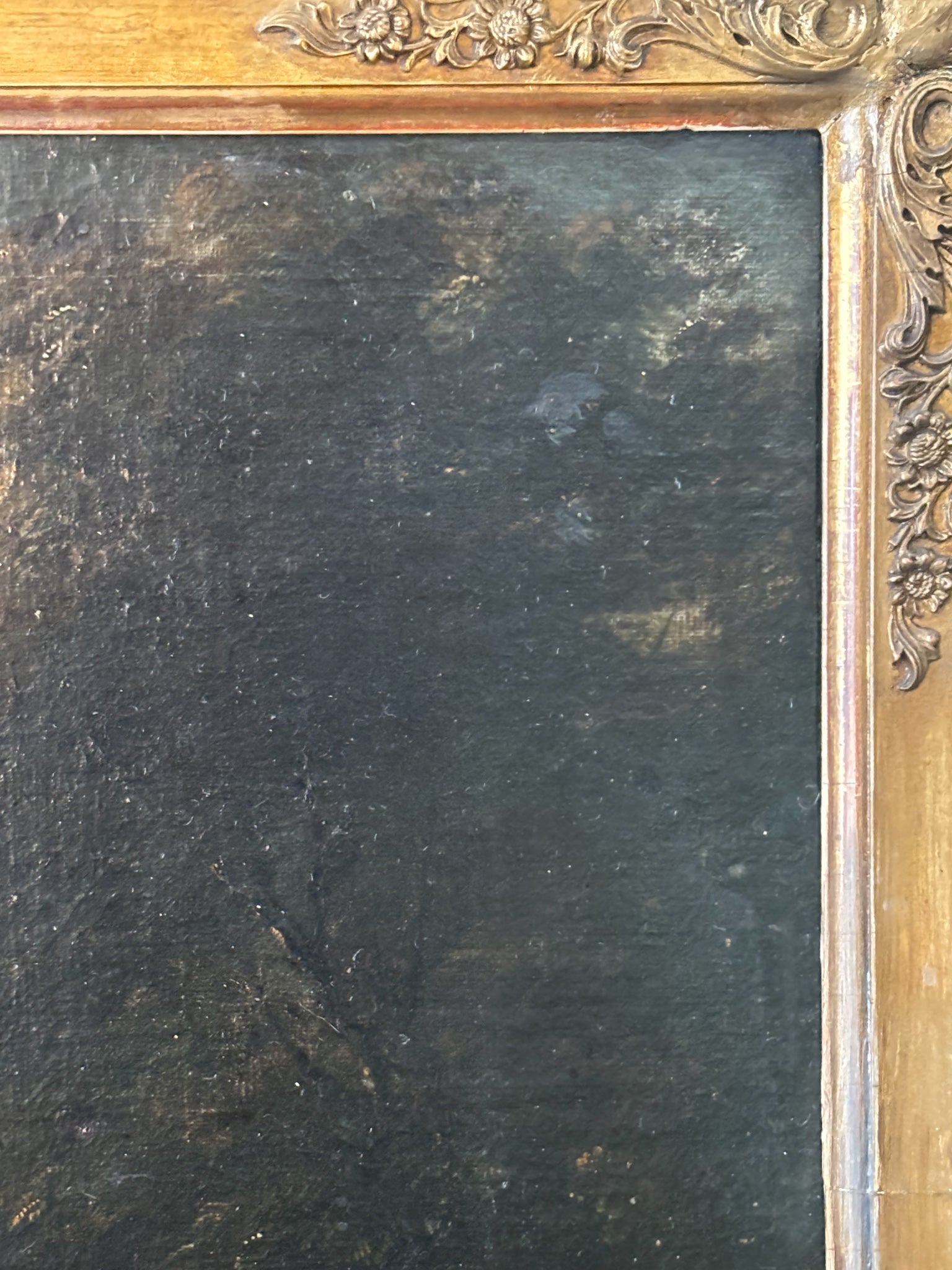 Dipinto fiammingo olio su tela di paesaggio con figure del 1700