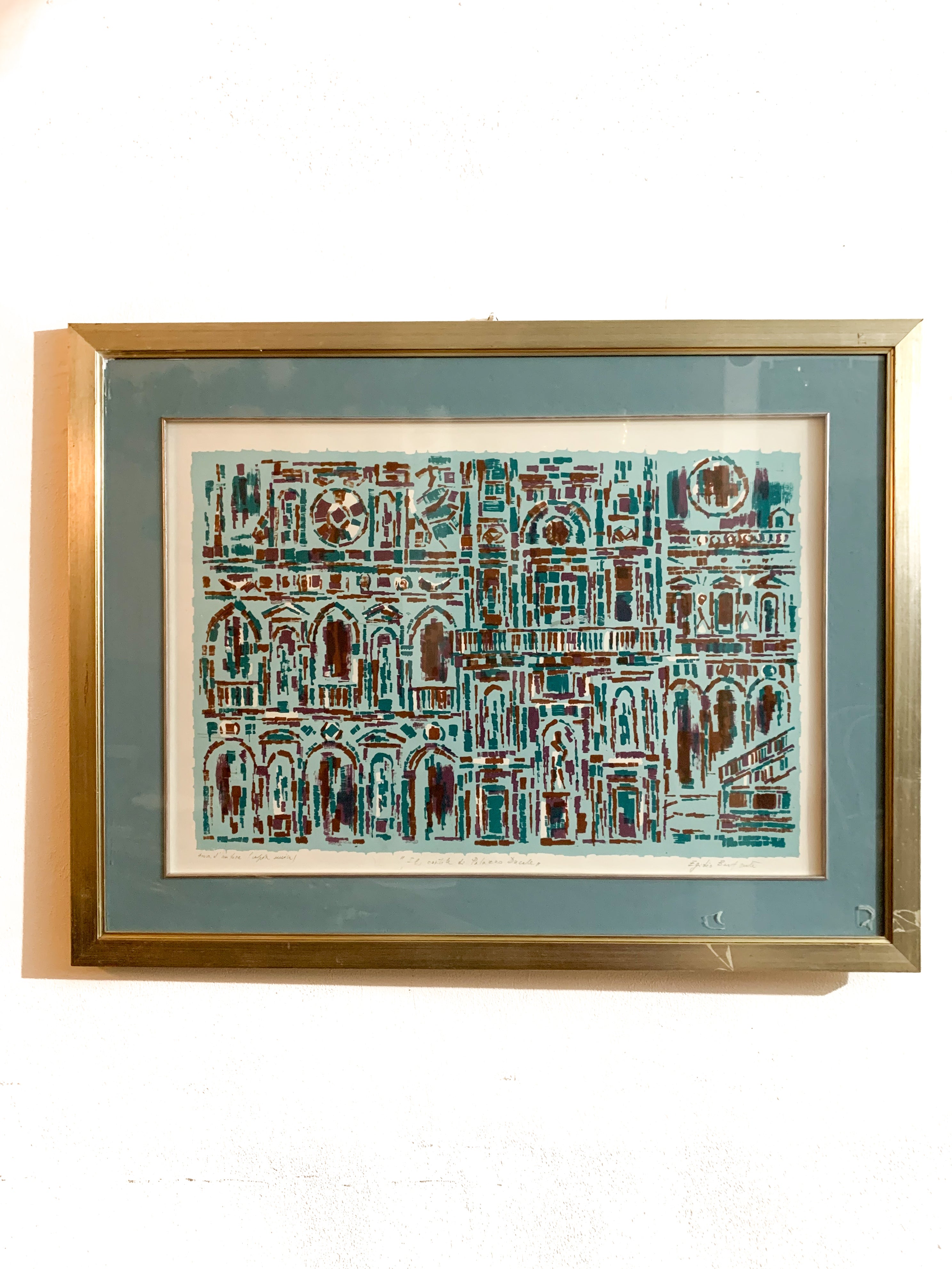 Litografia, copia d'autore di Egidio Bonfante intitolata 'Il Cortile di Palazzo Ducale"