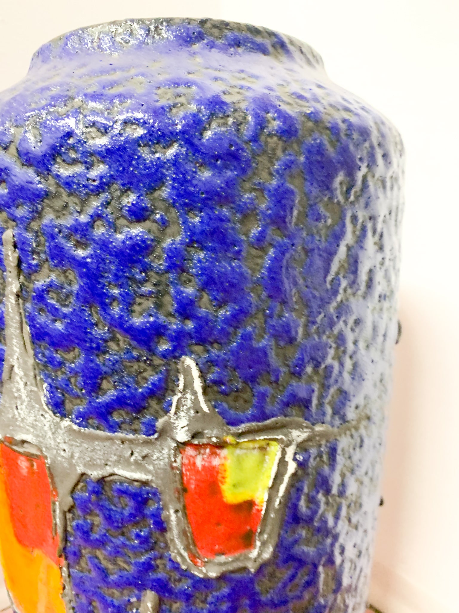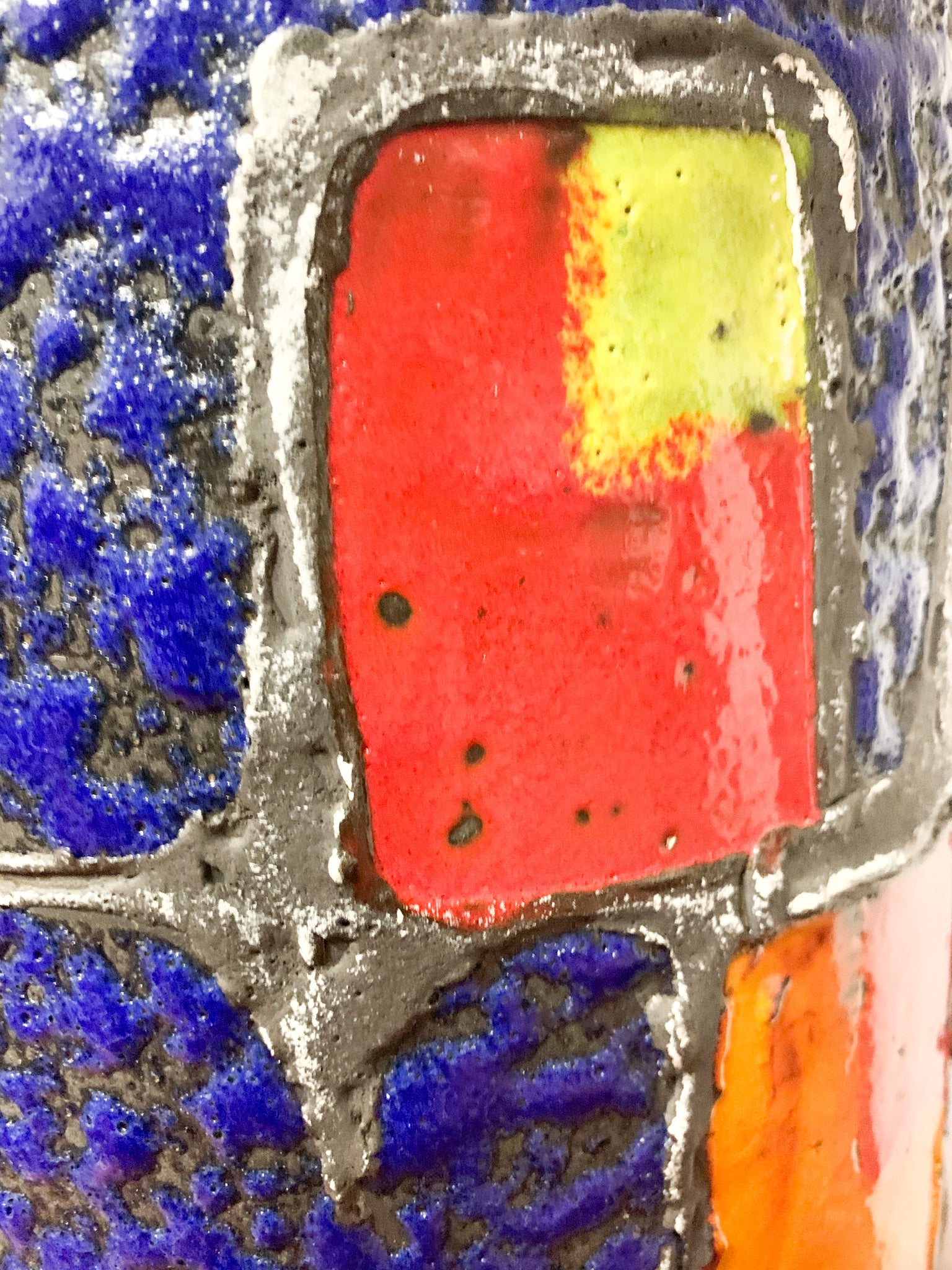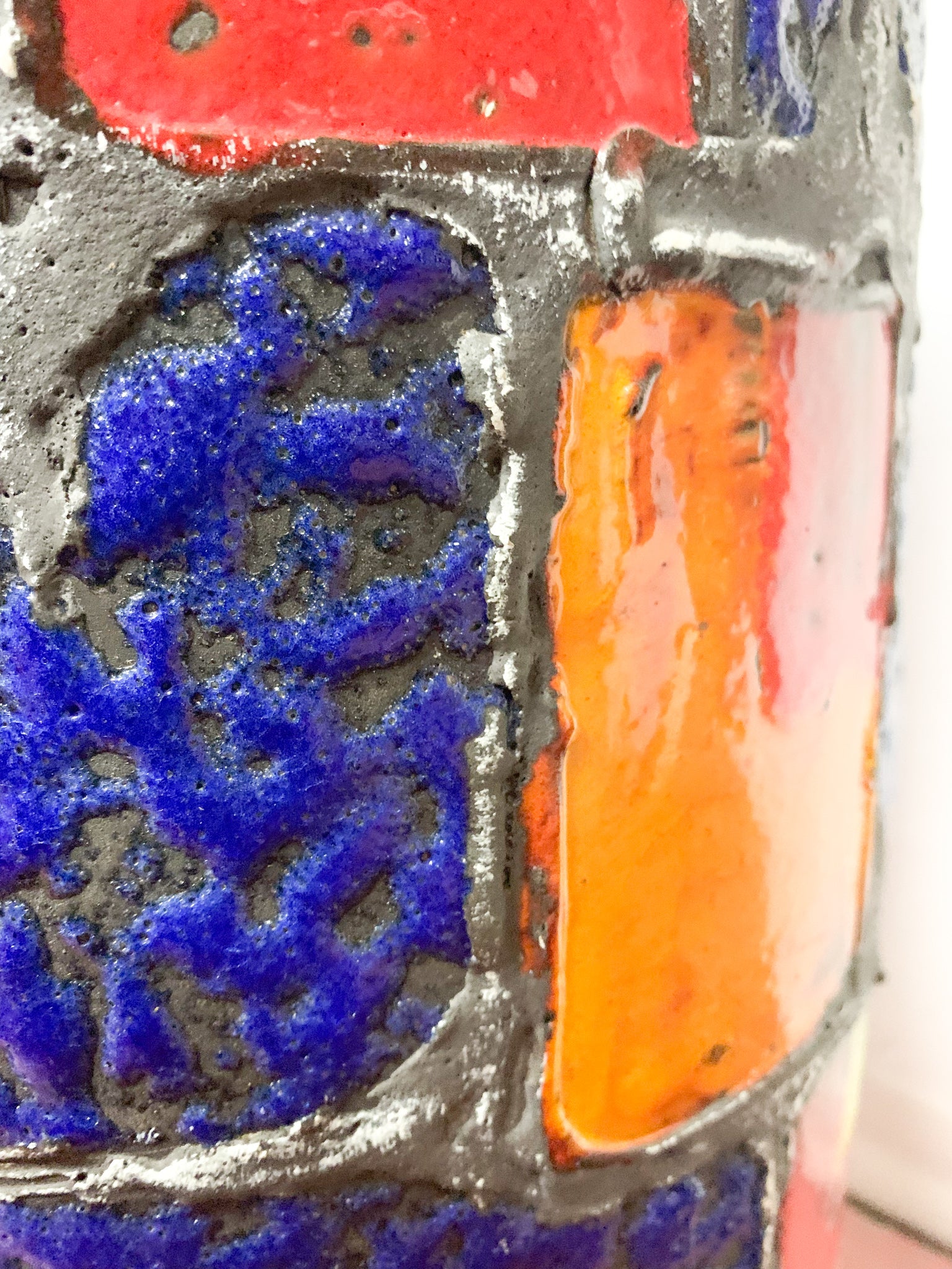 Portaombrelli o vaso da pavimento in ceramica di Albisola, dipinto a mano e realizzato negli anni 70, nei colori del blu, giallo e arancione.