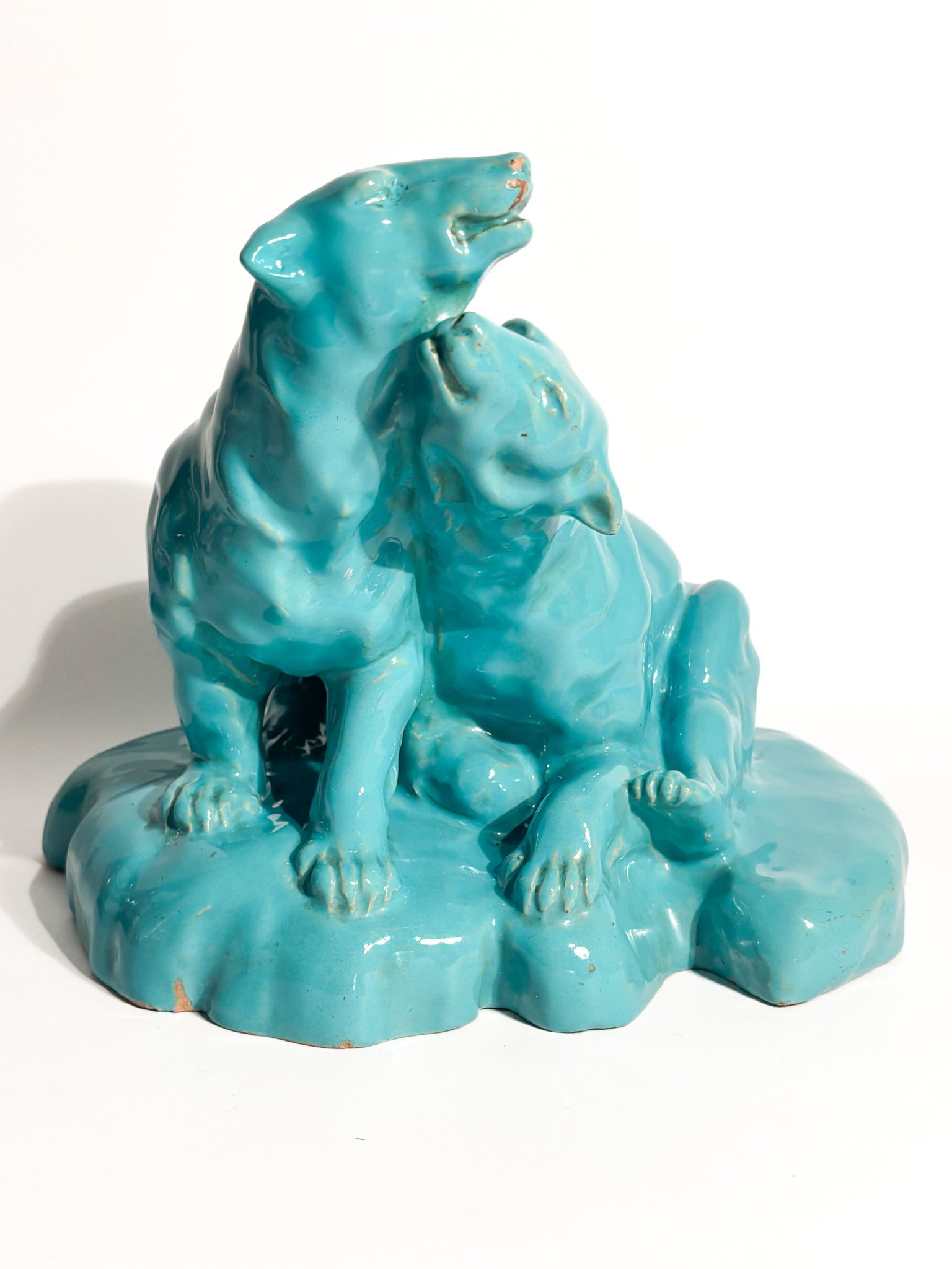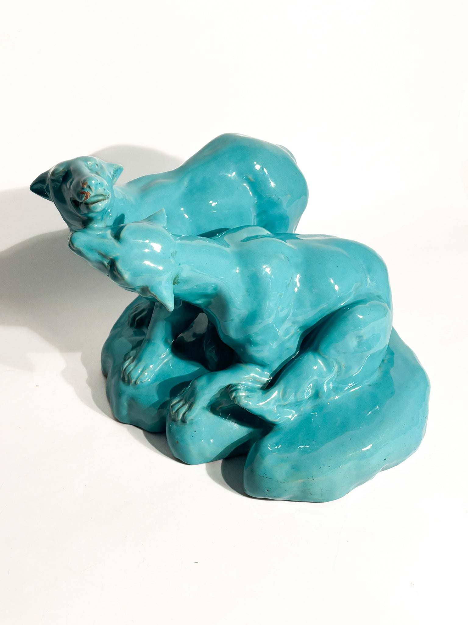 Scultura in Ceramica di Coppia di Orsi Attribuita alla Manifattura Veneta Anni 60