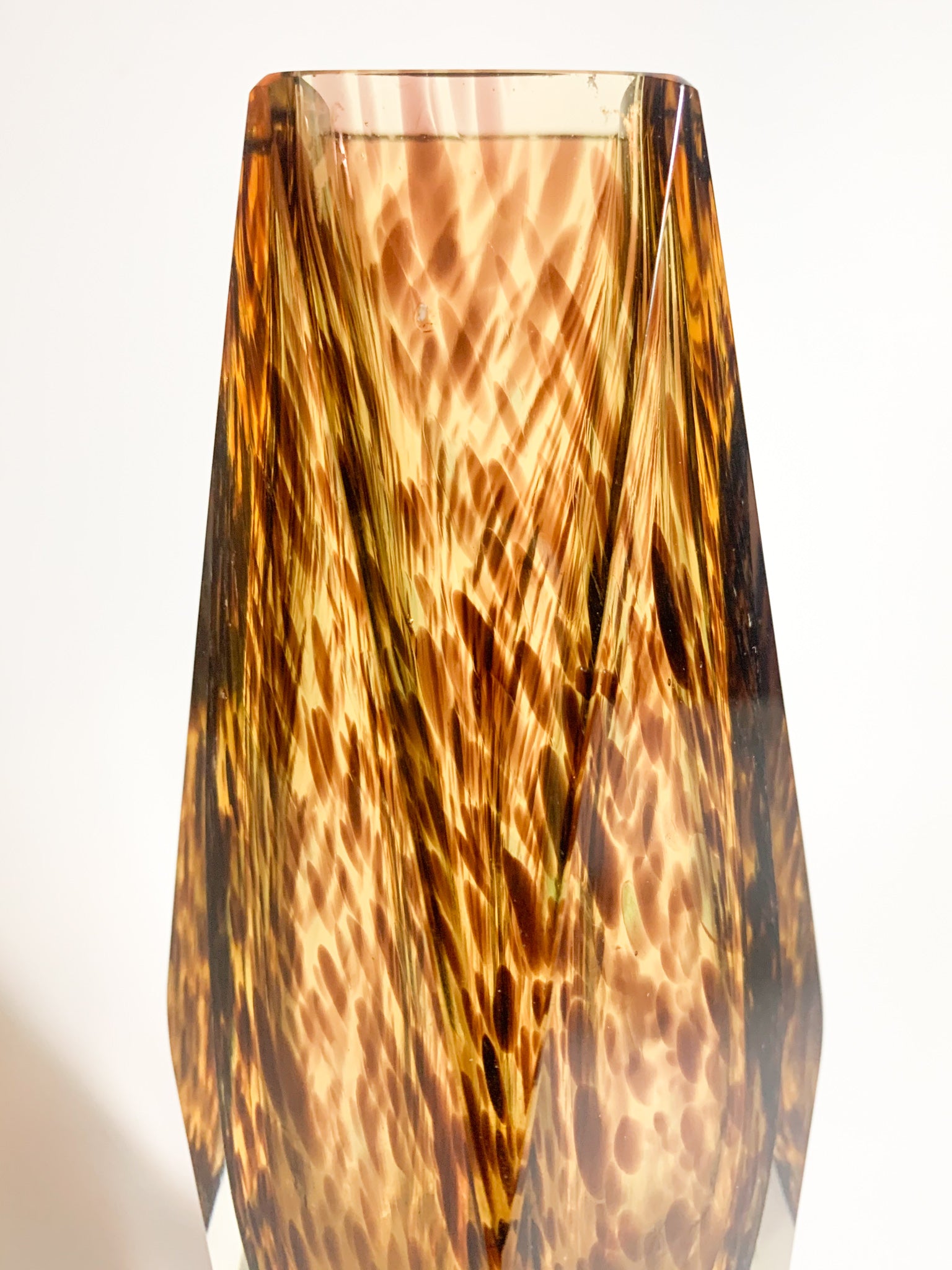 Vaso Geometrico in Vetro di Murano Maculato Attribuito a Flavio Poli Anni 60
