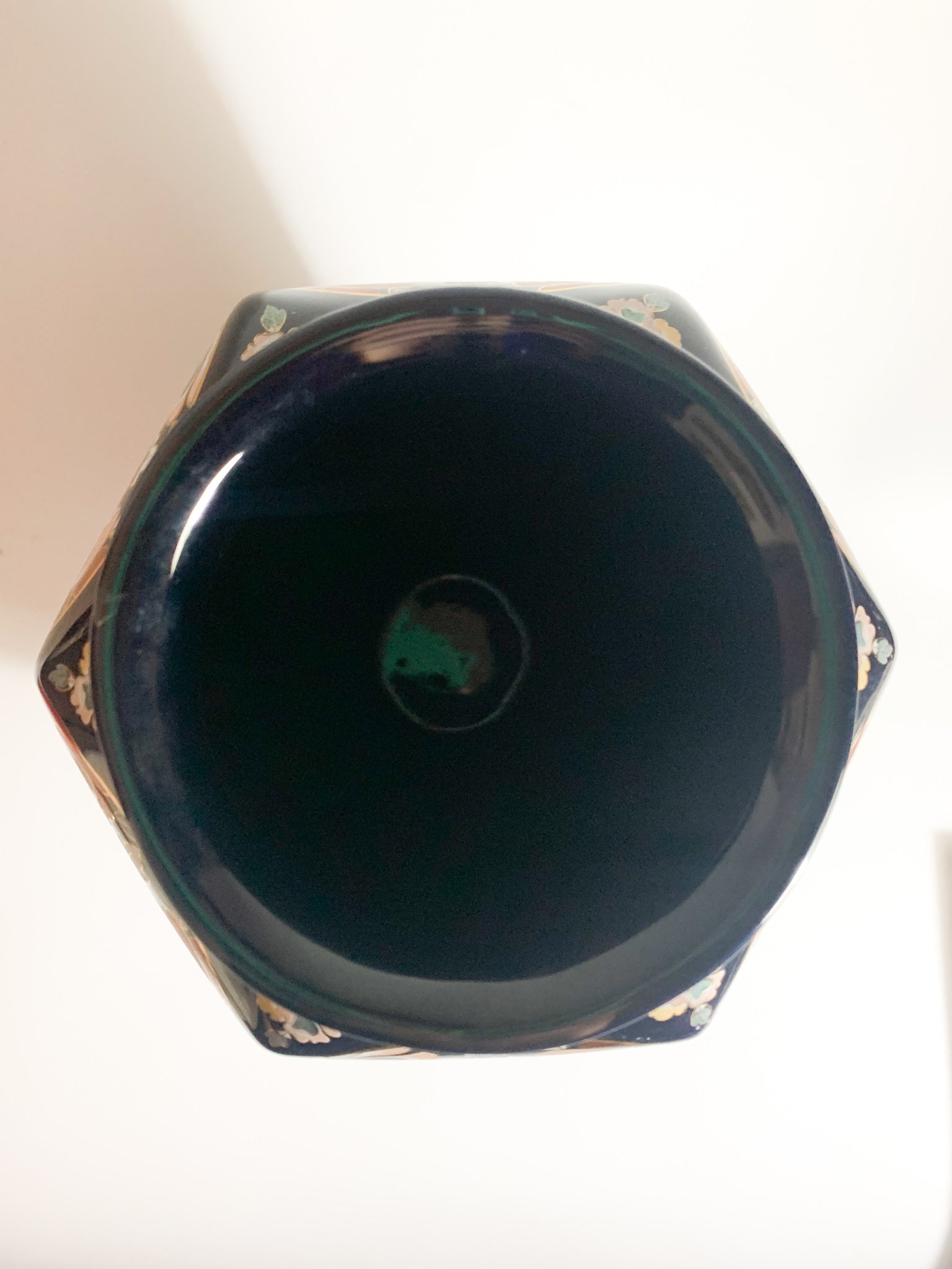 Vaso in ceramica Italiana di Dècor Exclusiv, blu e decorato in multicolore, realizzato negli anni '70
