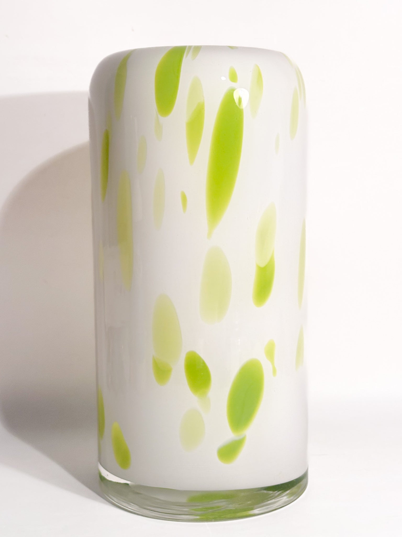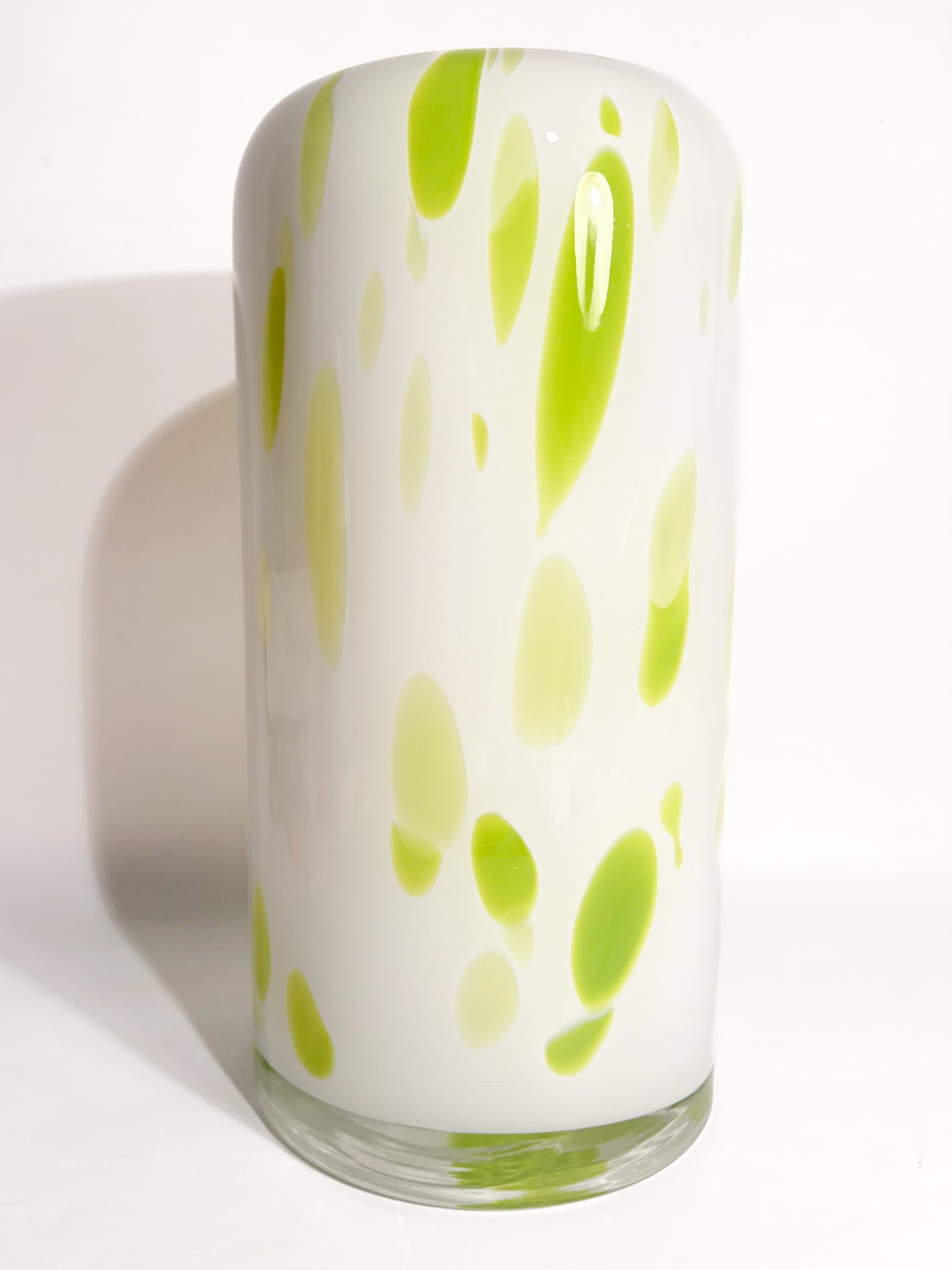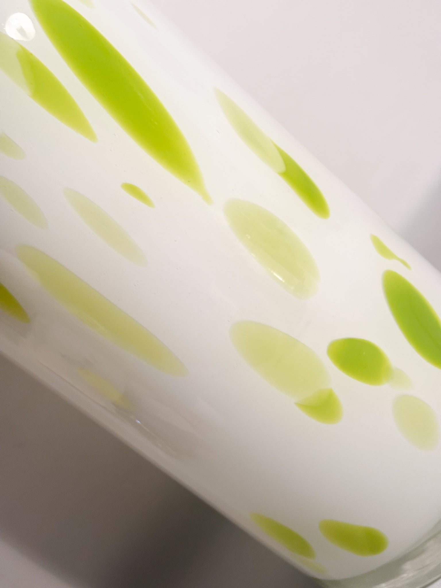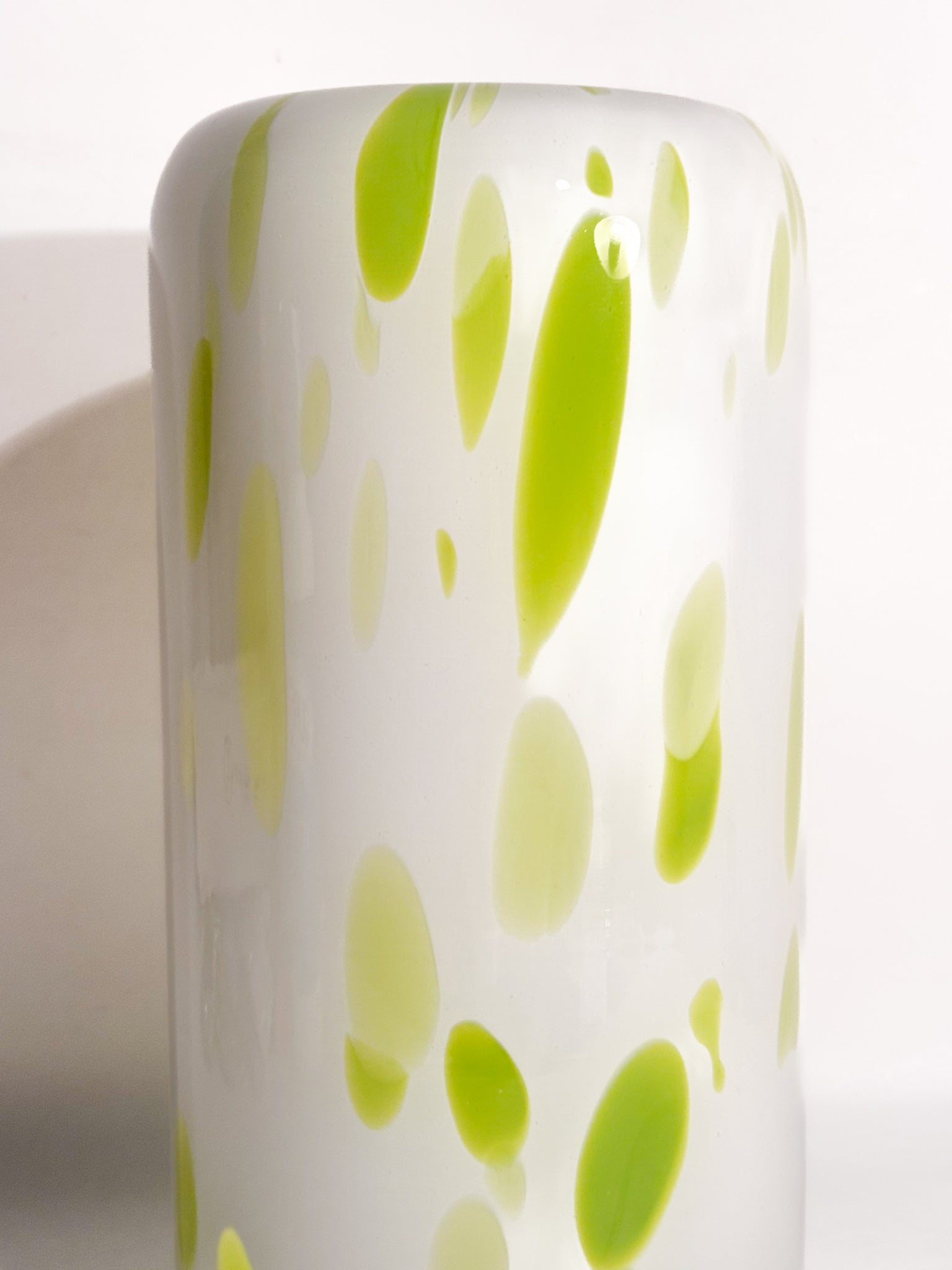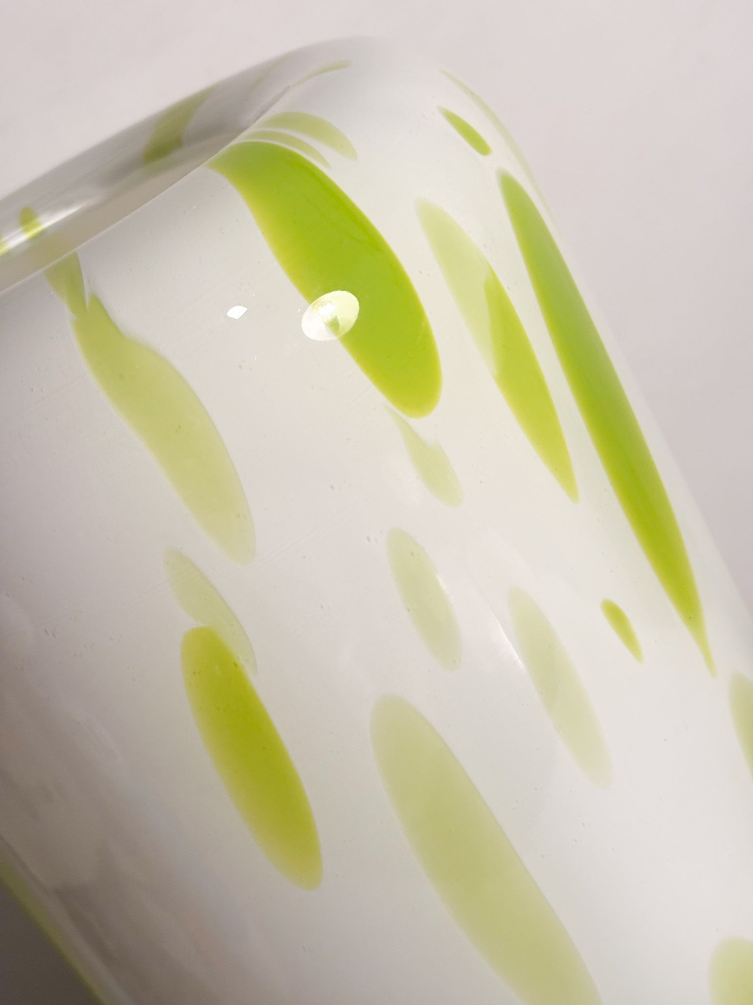 Vaso in Vetro di Murano bianco e macchie verde lime, realizzato negli anni '90