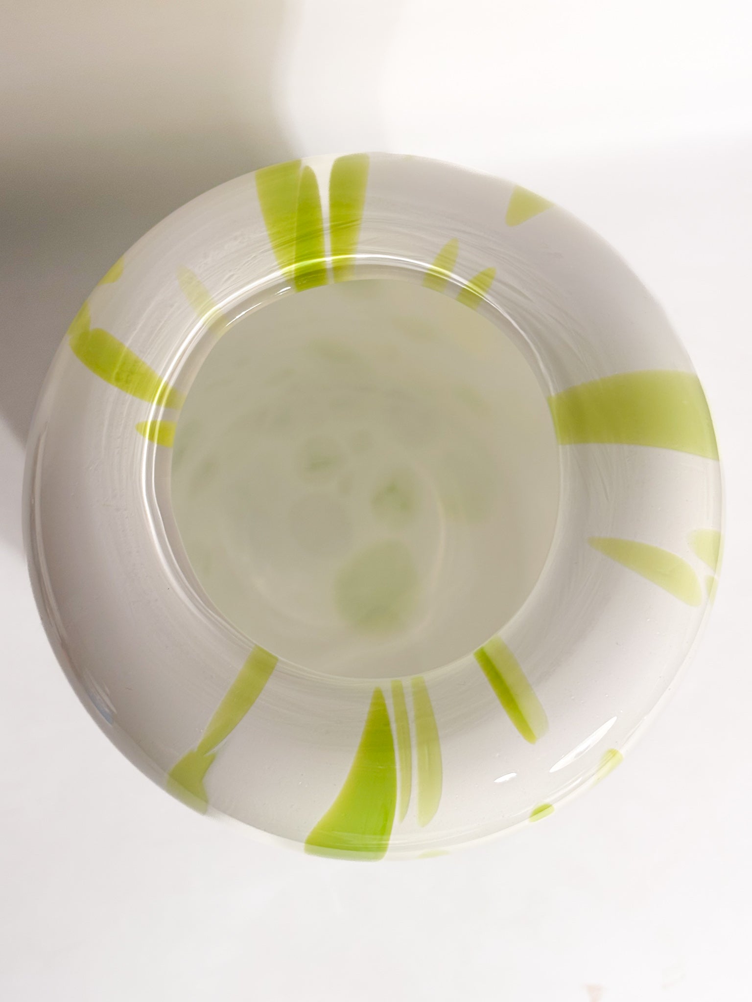 Vaso In Vetro di Murano Bianco e Verde Lime Anni 90